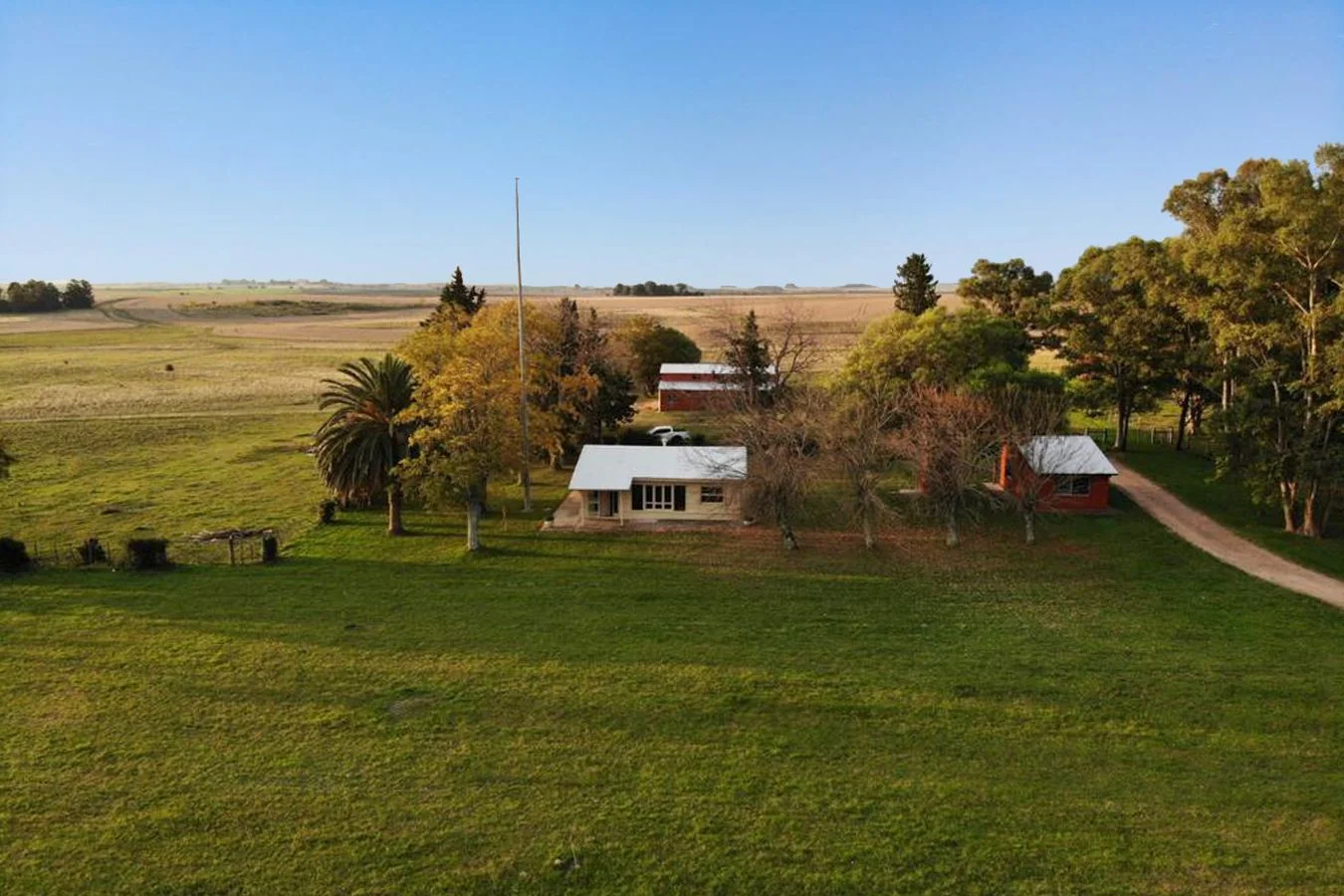 El establecimiento cuenta con casa principal de 90 m² (living, comedor, cocina, dos dormitorios y baño) más habitación independiente con baño, además de casa para caseros y comodidades para el personal.