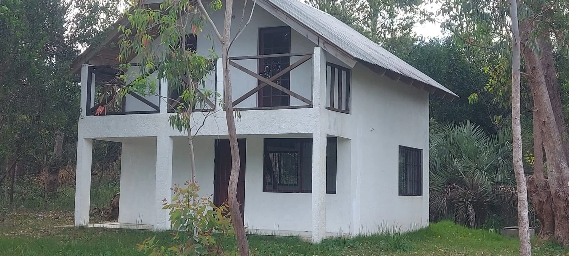 La edificación es una casa de dos pisos, con 30 m2 edificados cerrados en planta baja compuesta por living comedor, cocina y baño. Y en planta alta también 30 m2 cerrados formado por dos dormitorios. Posee unos 9 m2 abiertos, techados de porche en la planta baja y lo mismo en el segundo piso como terraza. Posee amplio terreno. Construcción sin uso, con rejas en todas las ventanas y puerta de ingreso de la planta inferior.