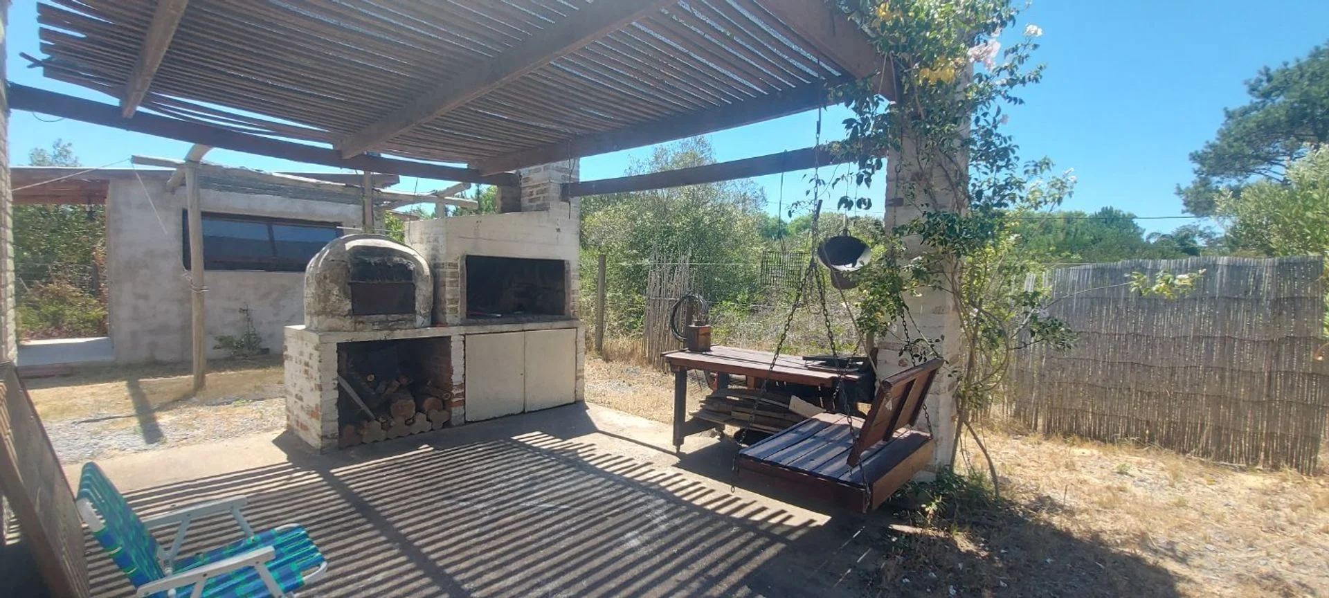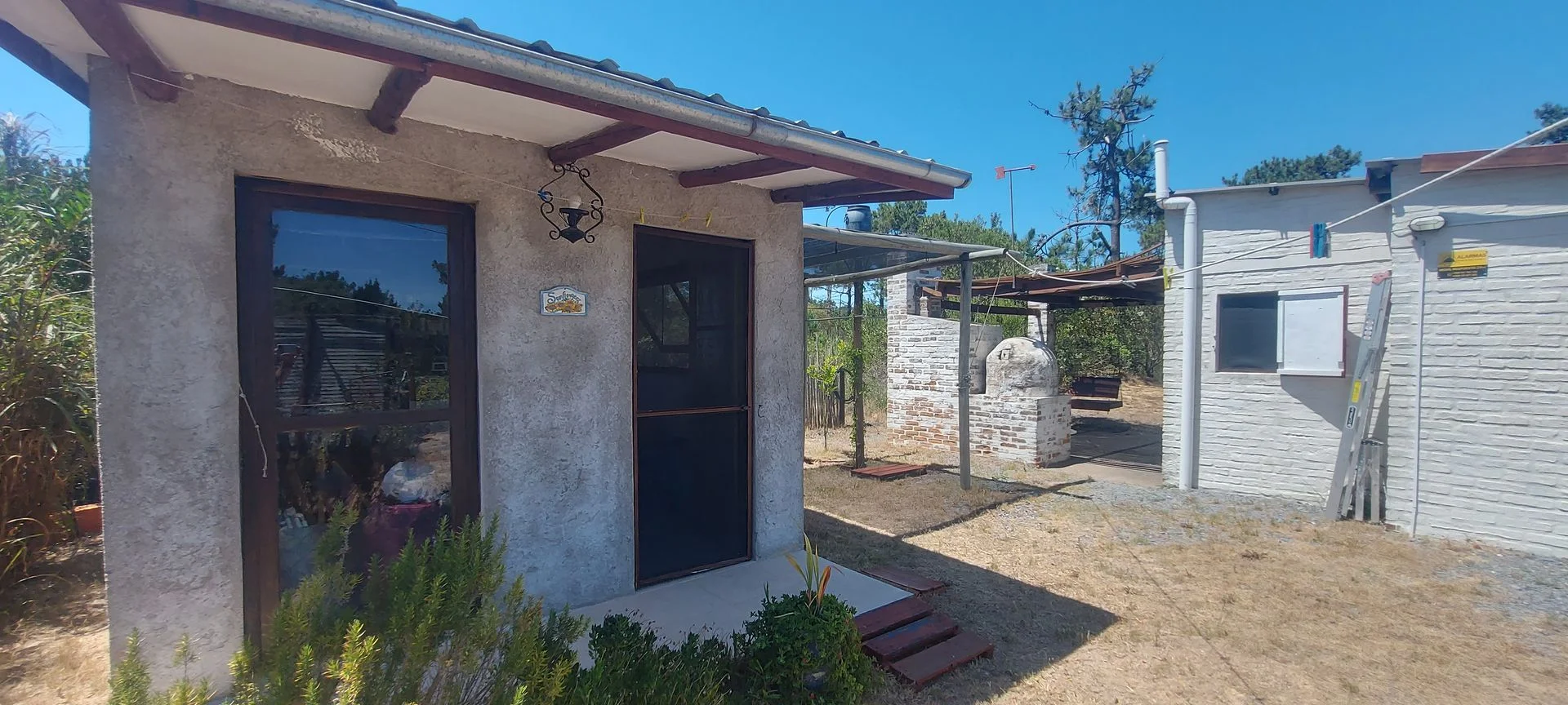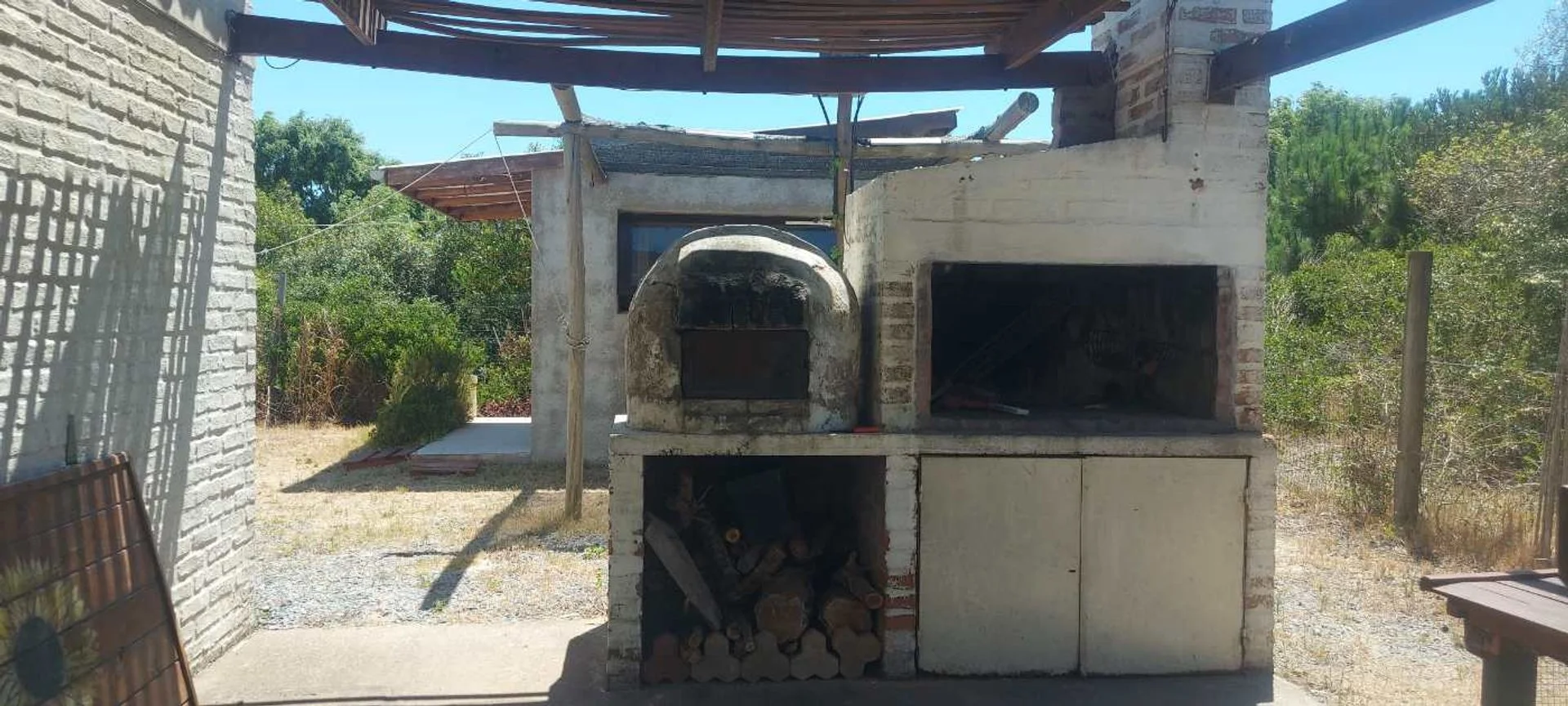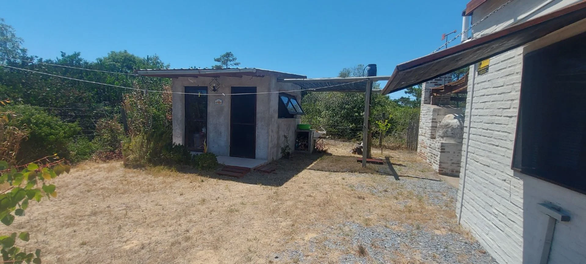 La casa posee unos 30 m2 edificados aproximadamente, la cual tiene su dormitorio conectado al living, sin paredes, una barra que oficia de comedor, estufa a leña de alto rendimiento, cocina y baño (se puede levantar un muro de Steel o Wood Flaming para separar el comedor del living si se desea más privacidad. Casa ideal para una pareja sola o con un hijo/a. Sobre el fondo posee un pequeño deposito de unos 10 m2 aproximadamente, para guardar todo tipo de herramientas y utensilios de la casa. También cuenta con parrillero y horno de barro, y un gran deck alrededor de toda la casa, él cual es semi techado y abierto, procurándose su uso para el parrillero y la cochera.