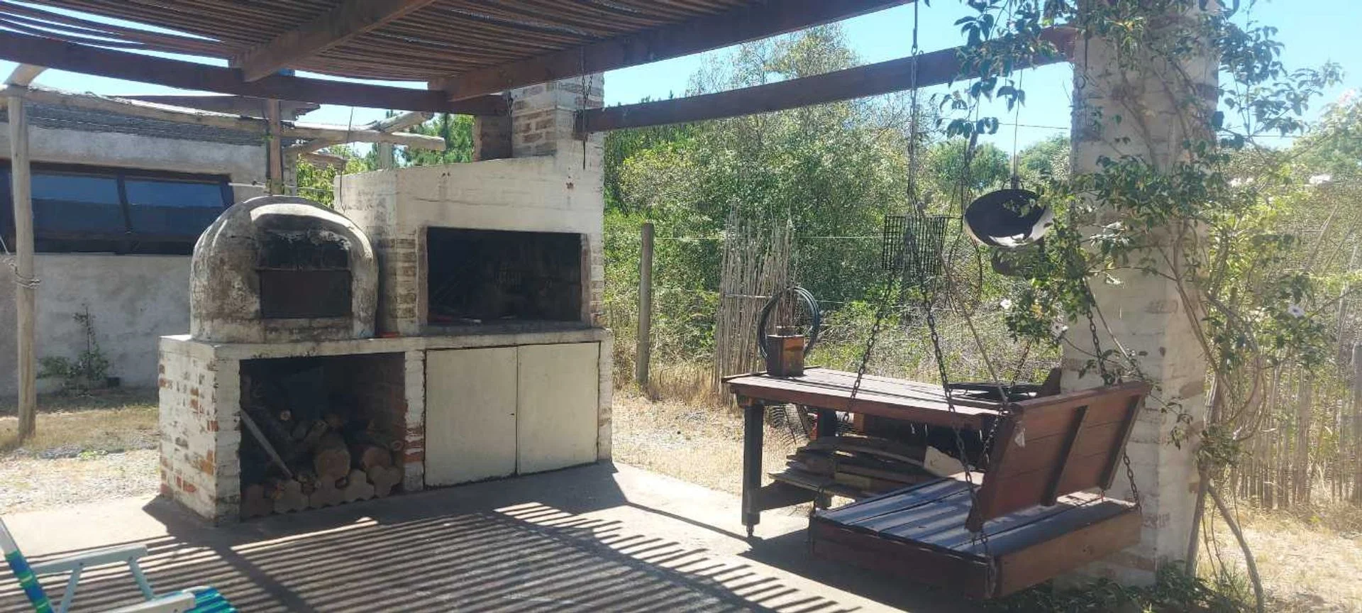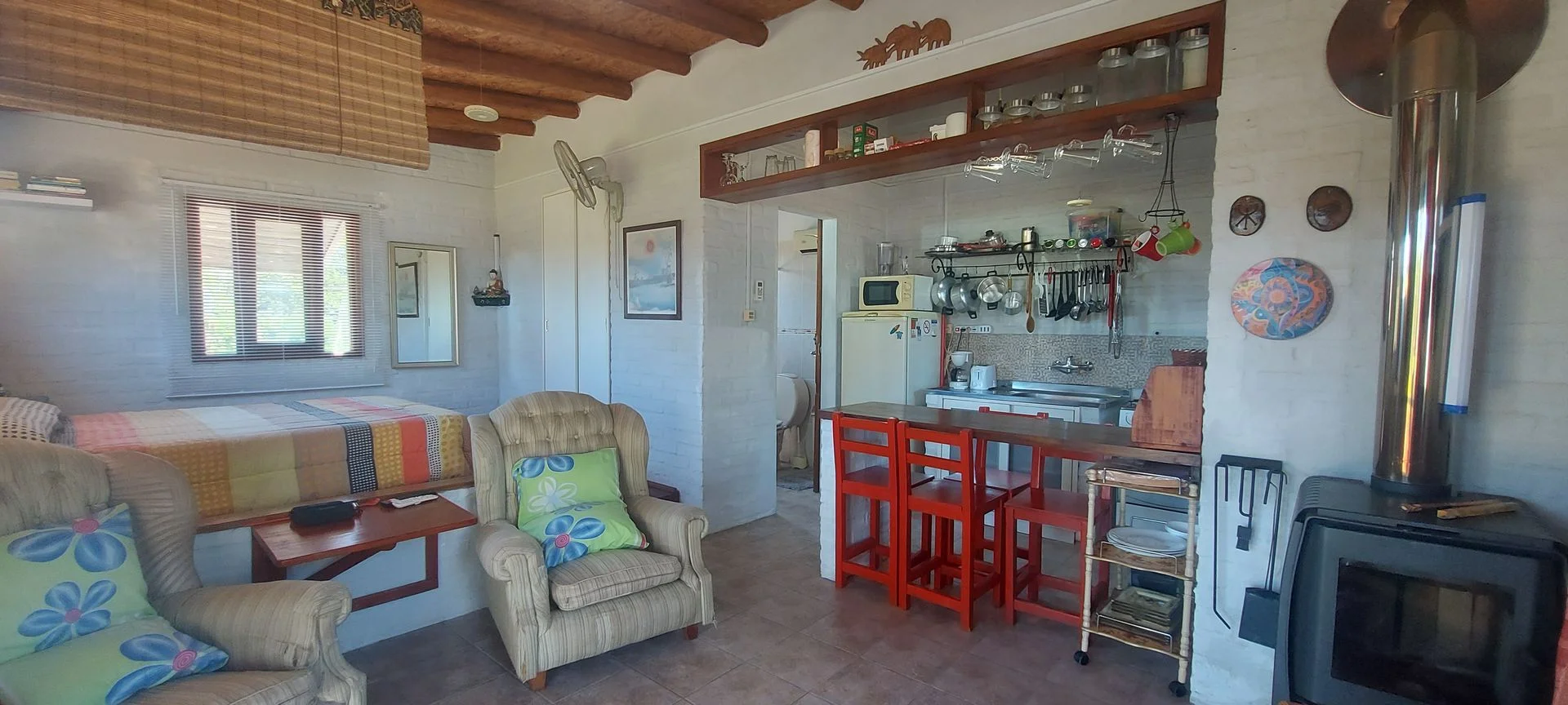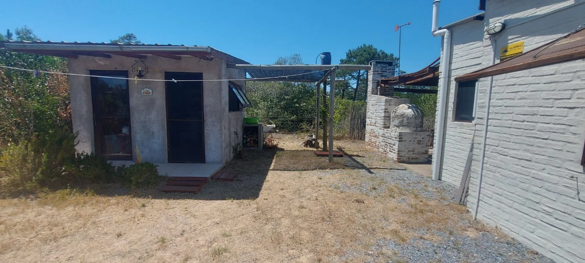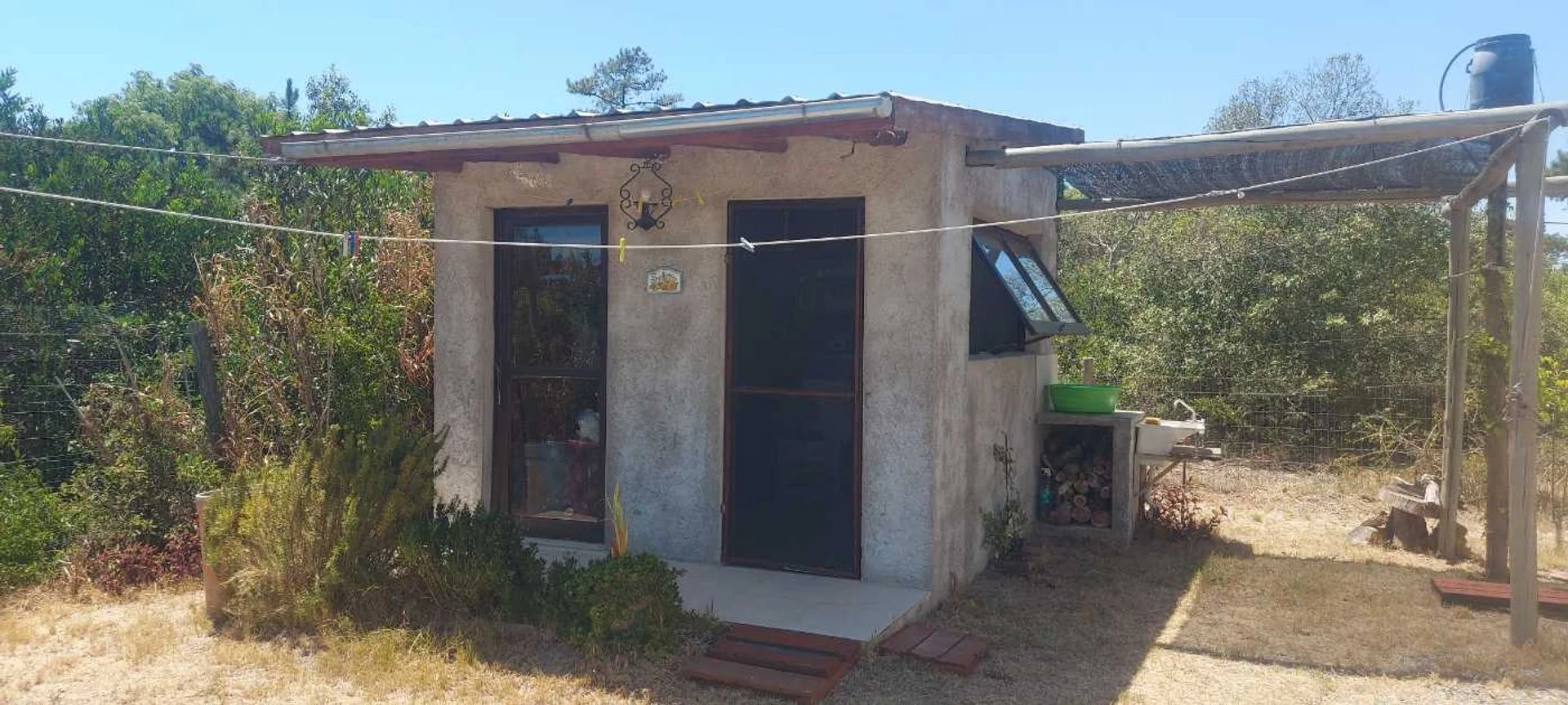 La casa posee unos 30 m2 edificados aproximadamente, la cual tiene su dormitorio conectado al living, sin paredes, una barra que oficia de comedor, estufa a leña de alto rendimiento, cocina y baño (se puede levantar un muro de Steel o Wood Flaming para separar el comedor del living si se desea más privacidad. Casa ideal para una pareja sola o con un hijo/a. Sobre el fondo posee un pequeño deposito de unos 10 m2 aproximadamente, para guardar todo tipo de herramientas y utensilios de la casa. También cuenta con parrillero y horno de barro, y un gran deck alrededor de toda la casa, él cual es semi techado y abierto, procurándose su uso para el parrillero y la cochera.