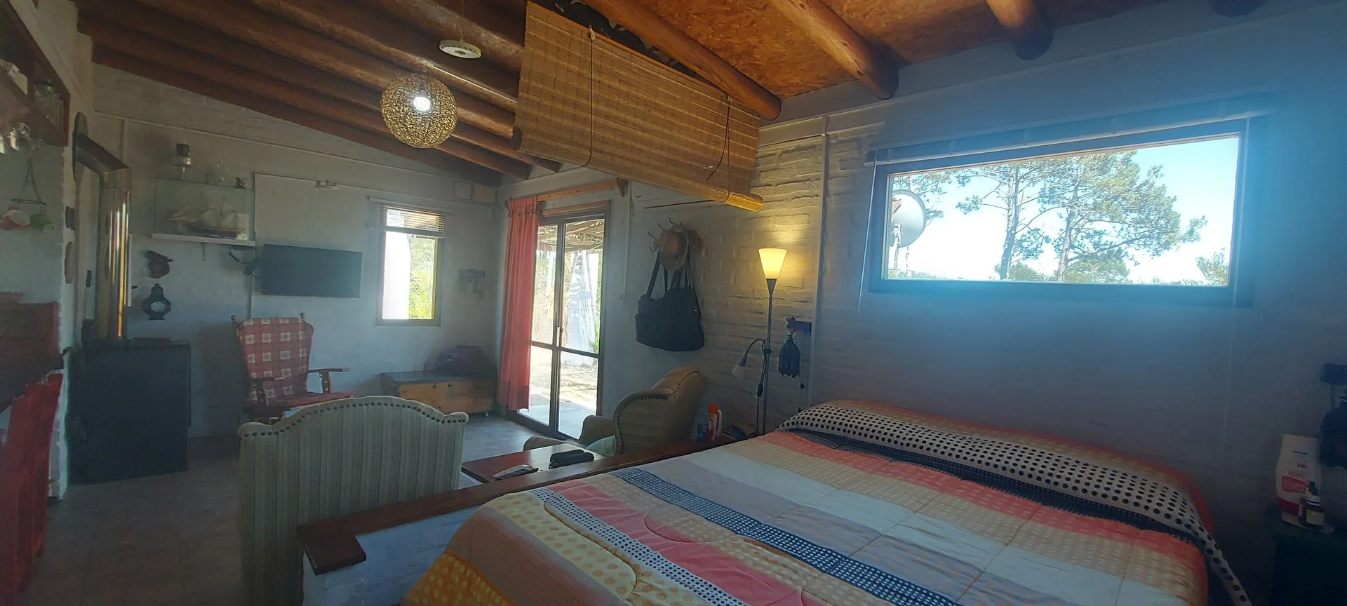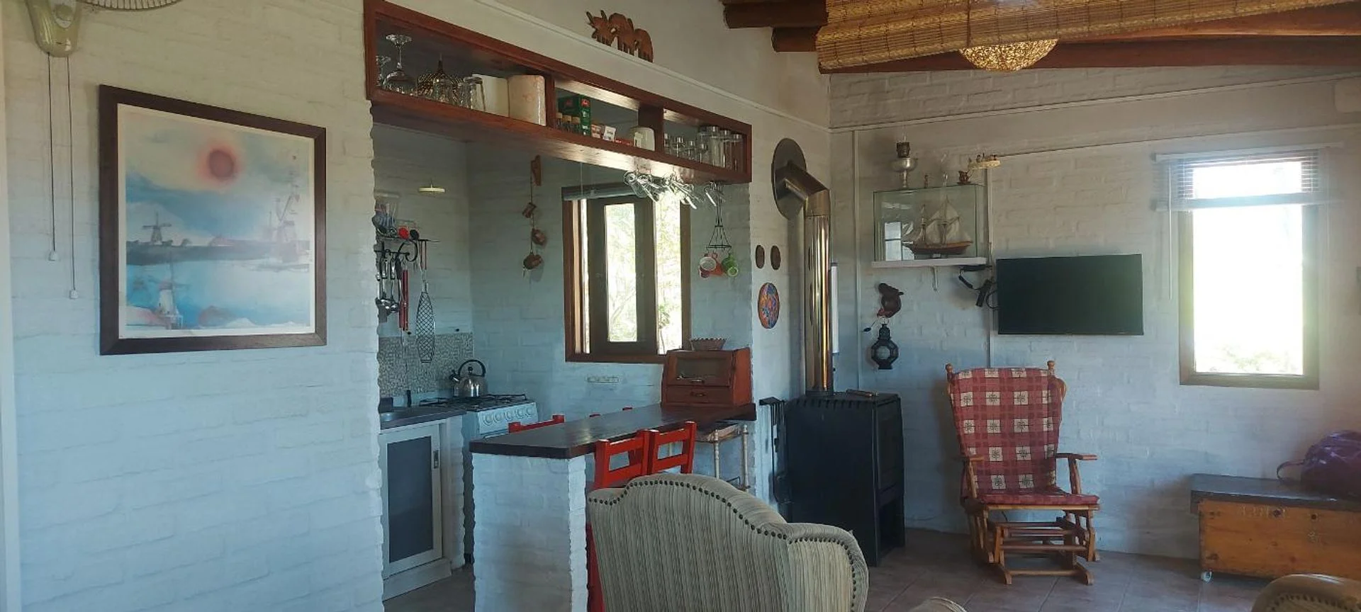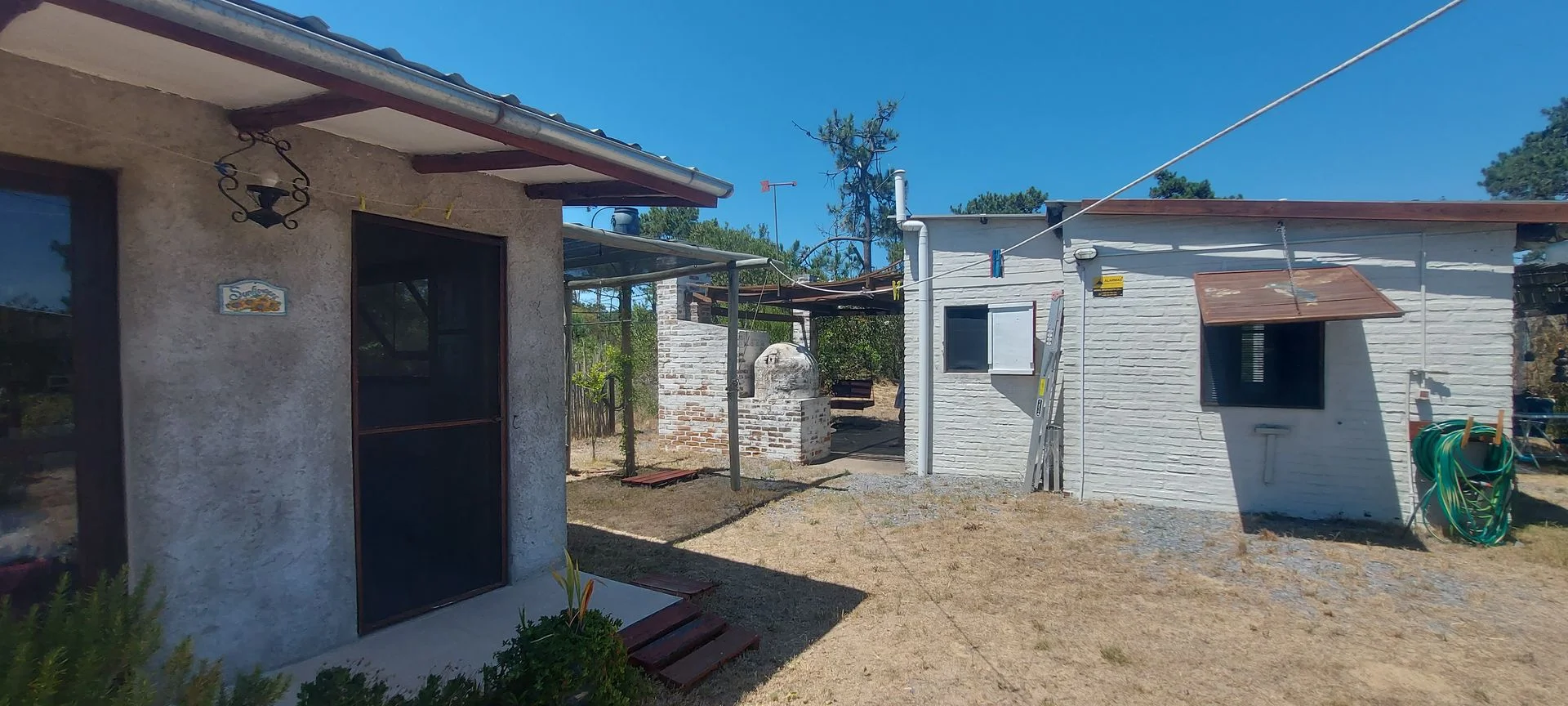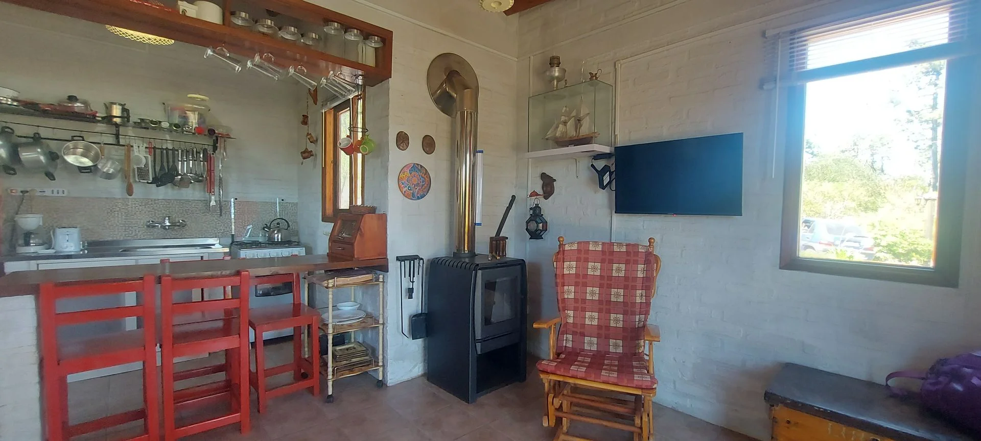 La casa posee unos 30 m2 edificados aproximadamente, la cual tiene su dormitorio conectado al living, sin paredes, una barra que oficia de comedor, estufa a leña de alto rendimiento, cocina y baño (se puede levantar un muro de Steel o Wood Flaming para separar el comedor del living si se desea más privacidad. Casa ideal para una pareja sola o con un hijo/a. Sobre el fondo posee un pequeño deposito de unos 10 m2 aproximadamente, para guardar todo tipo de herramientas y utensilios de la casa. También cuenta con parrillero y horno de barro, y un gran deck alrededor de toda la casa, él cual es semi techado y abierto, procurándose su uso para el parrillero y la cochera.