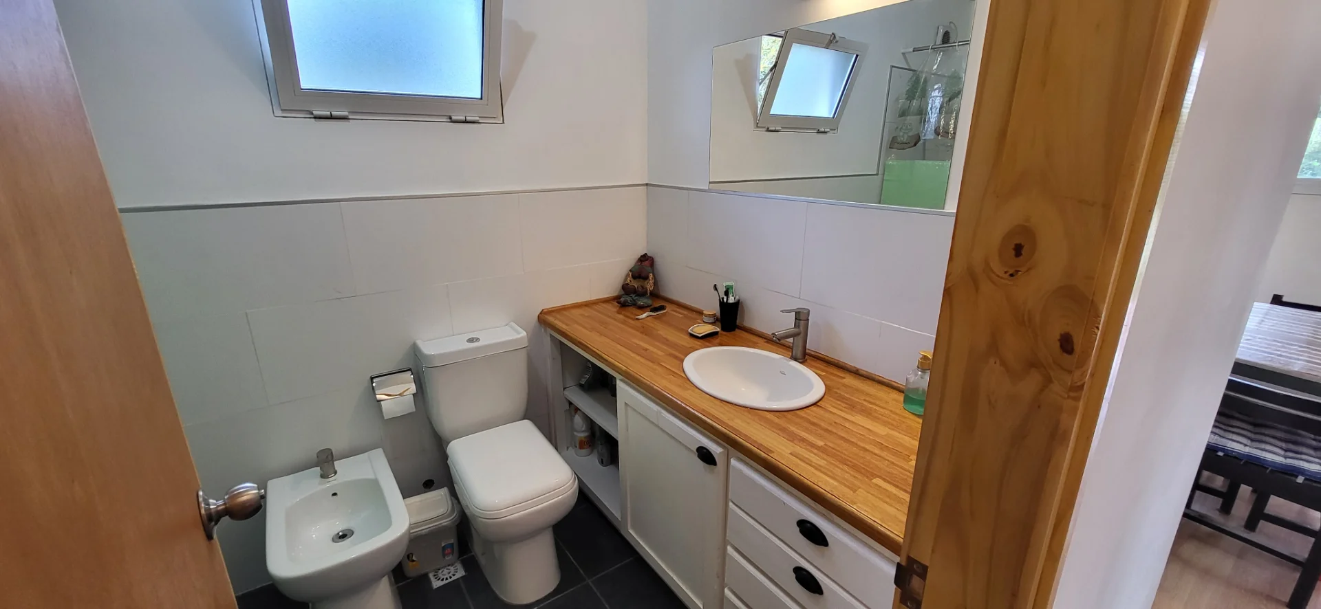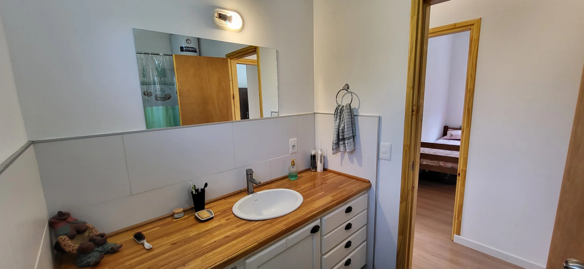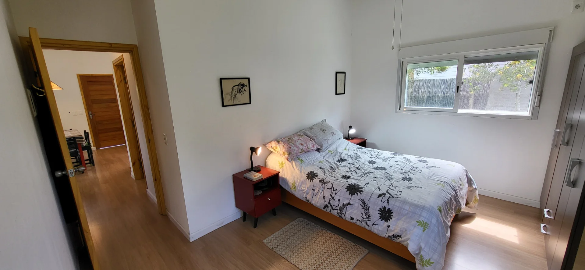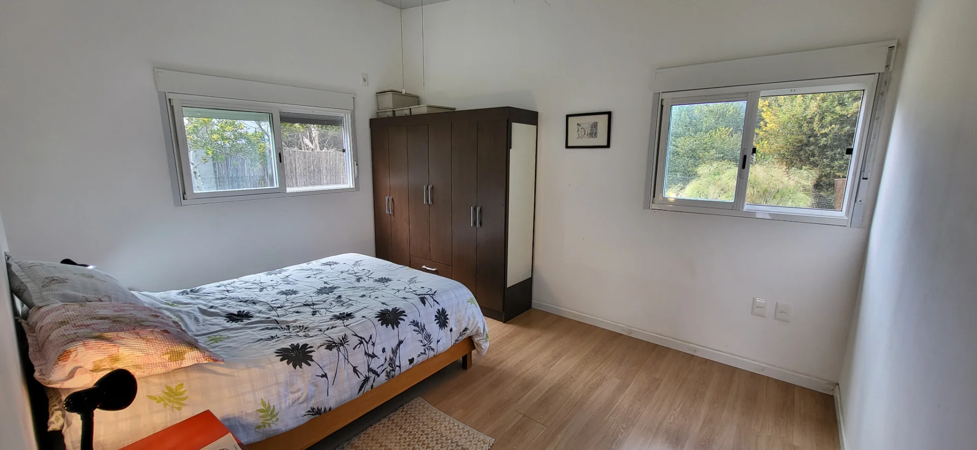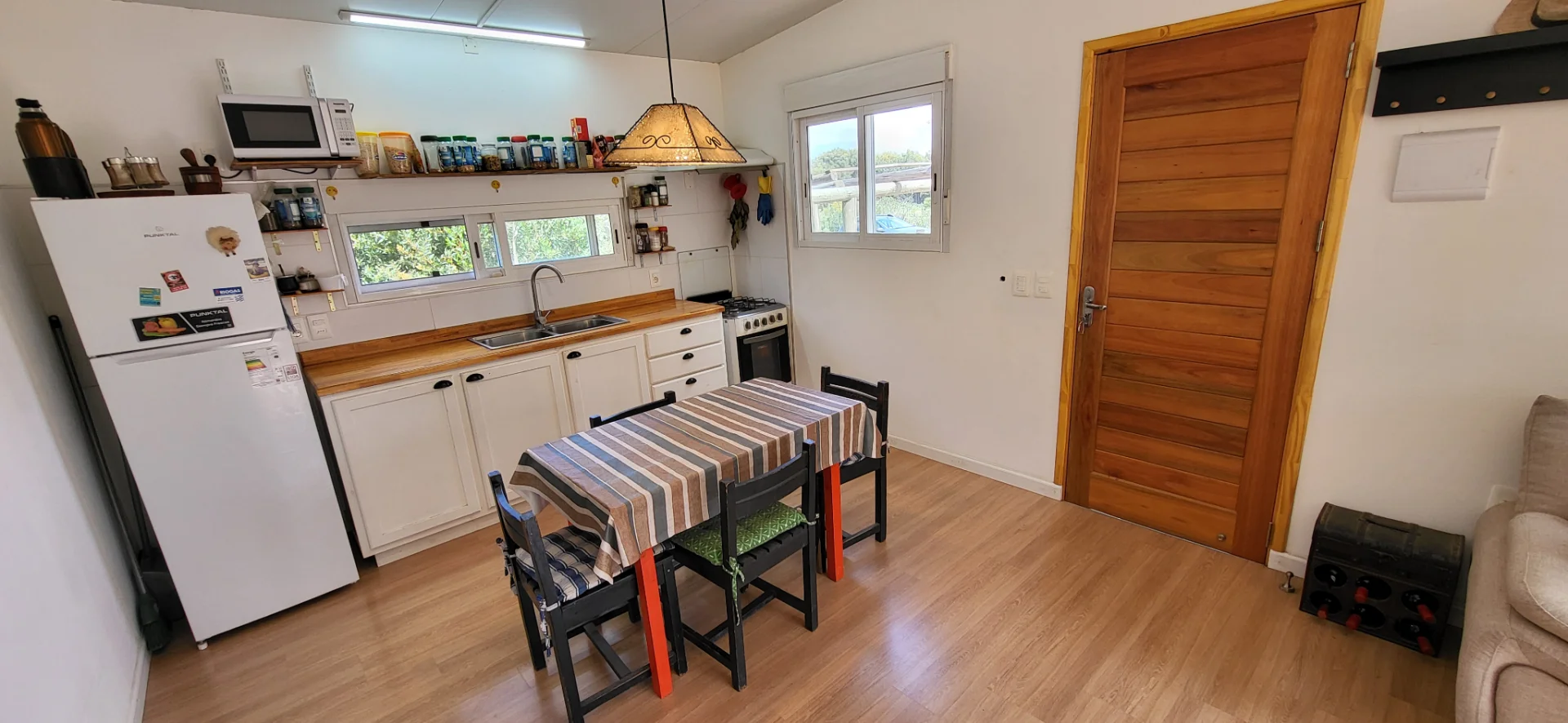Sus comodidades son living con hogar a leña, cocina-comedor, dos dormitorios y un baño social completo. Tanto al frente como sobre su lateral, tiene un sólido y amplio deck techado.