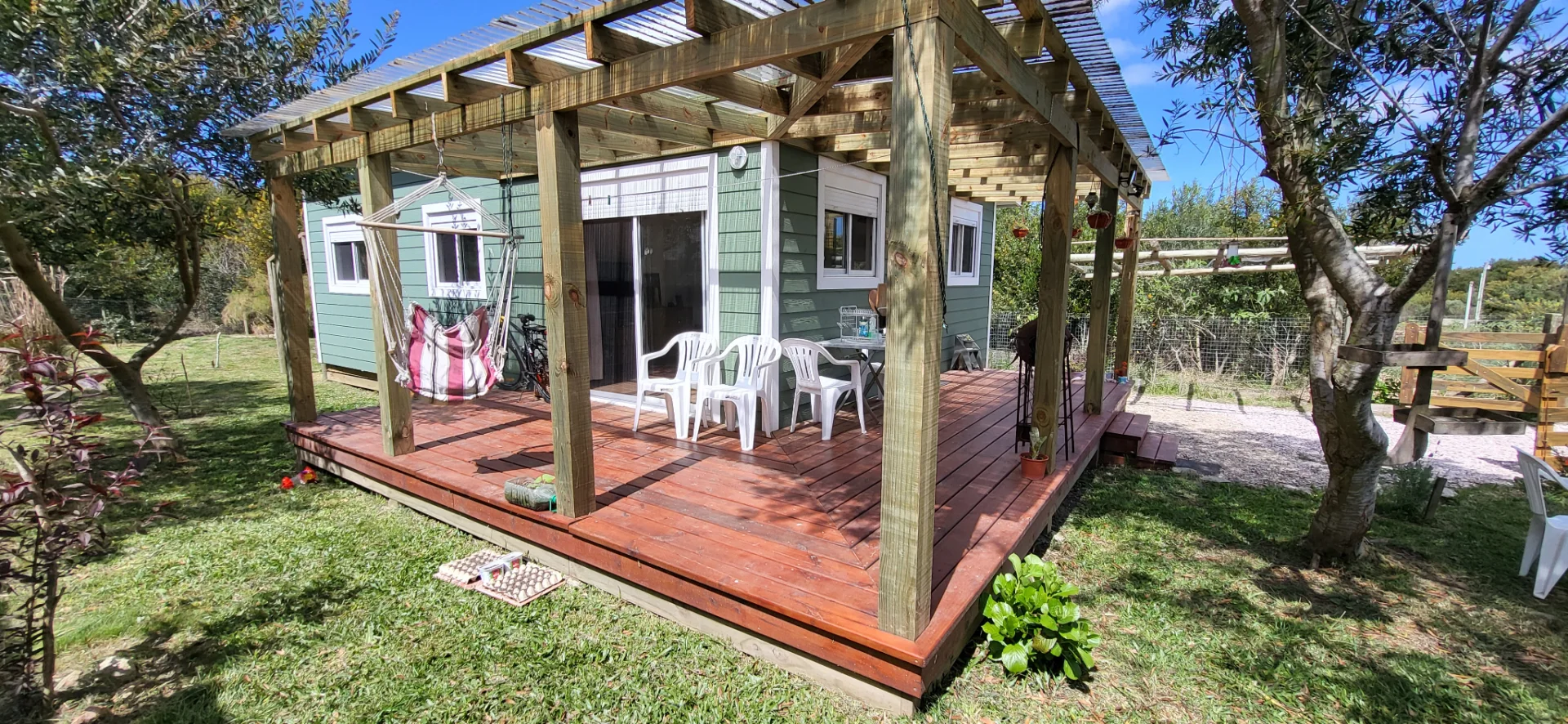Construcción nueva, de obra seca, del año 2024, que consta de 56m2 de vivienda más 6m2 de deck y techos, desarrollados en una sola planta.