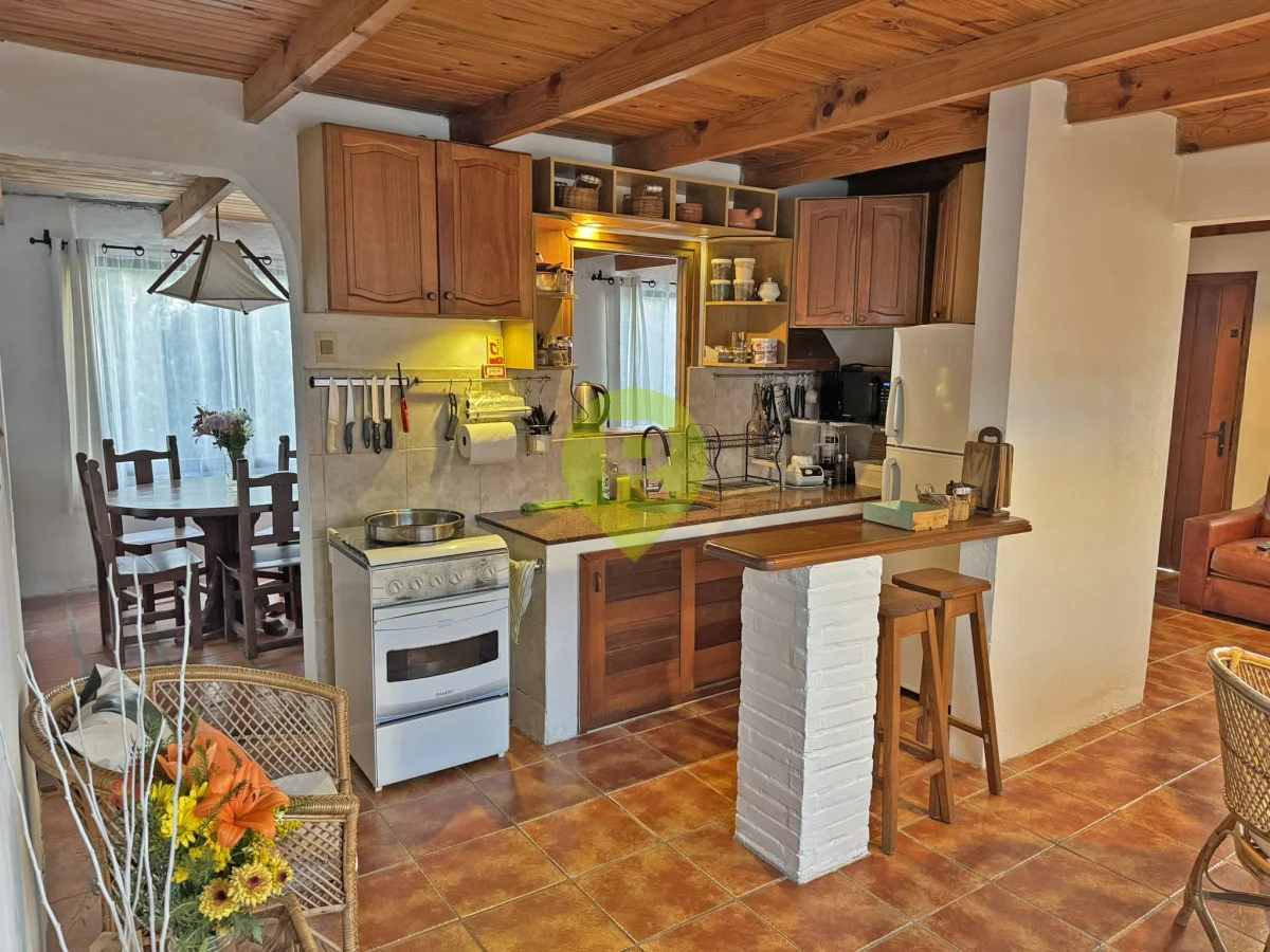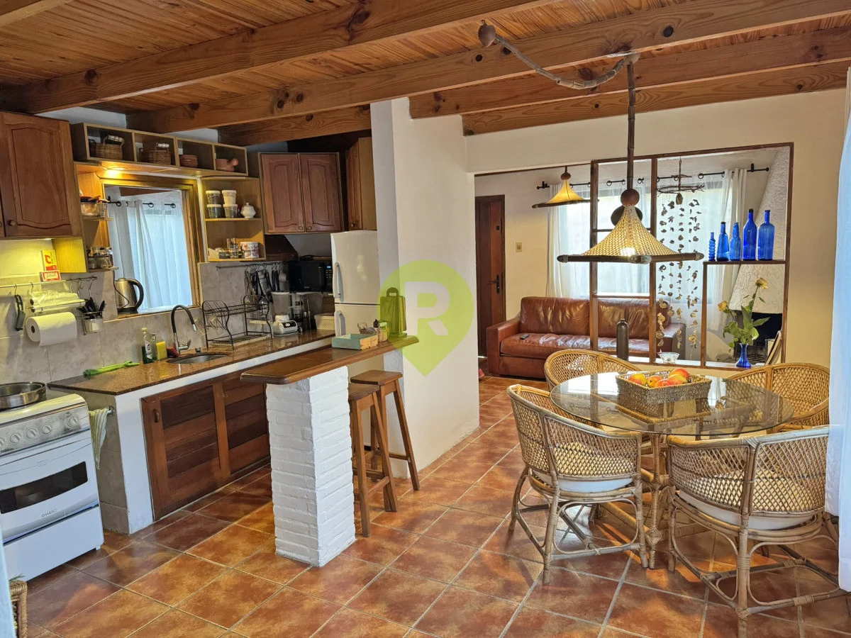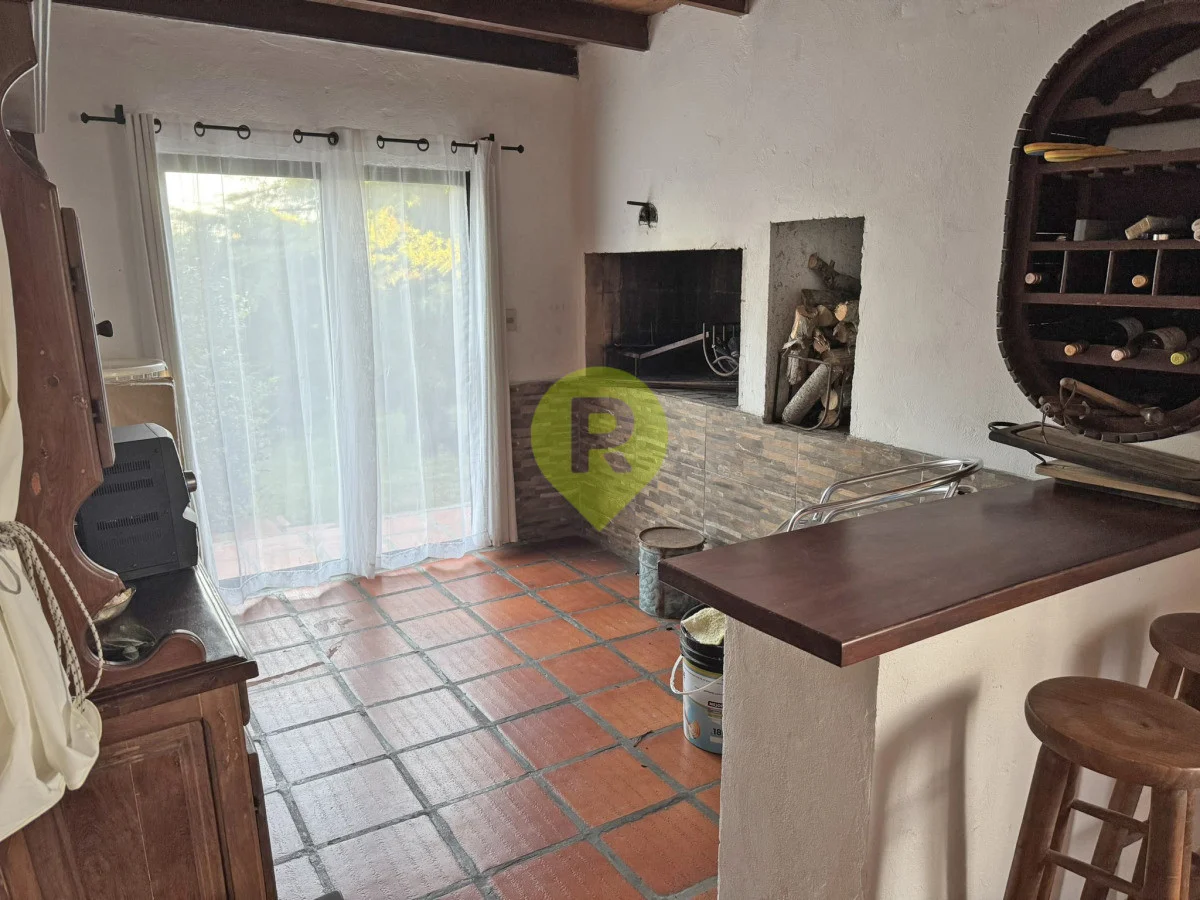 En planta baja dispone de un dormitorio, living con estufa a leña, comedor integrado a la cocina, un baño y un parrillero techado con amplio espacio que incluso permite guardar un auto.