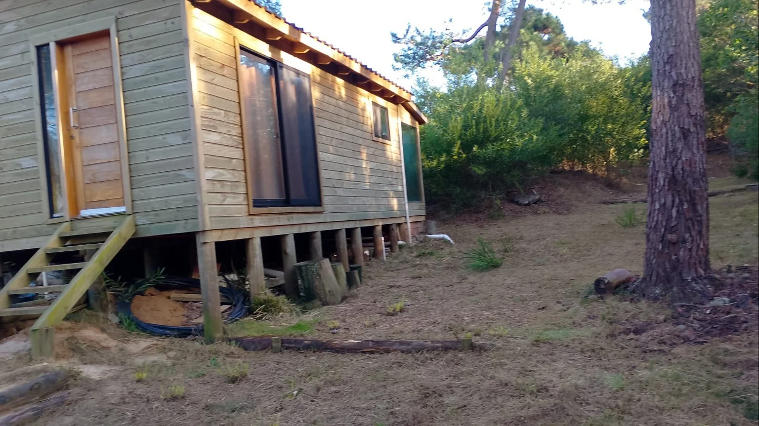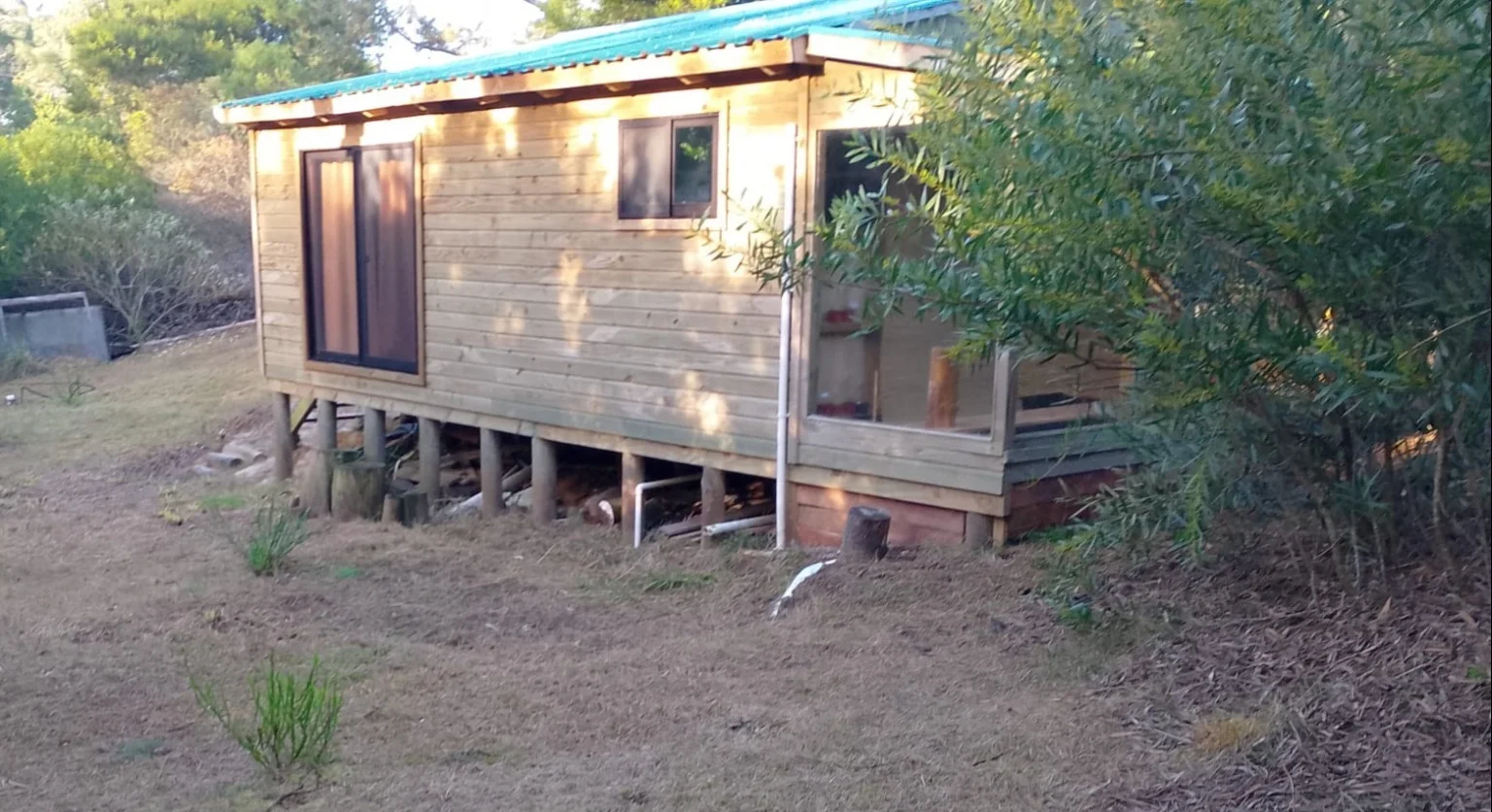 Cabaña en balneario Oceanía del Polonio. Casa autónoma en agua y energía solar. Con huerta orgánica. Terreno de 1200 mts2, a 600 metros de la playa. Construcción del 2021. Cocina, living-comedor, 2 dormitorios, bano. Fue realizada con postes de eucalipto curado y asfalkote. Estructura y paredes exteriores totalmente de madera curada CCA (alfajias y tirantes) Interior: paredes y techo de fenolicos. Aislante techo: 10 cm de lana de vidrio y película de aluminio, marca St Gobain. Aislante paredes: lana de vidrio. Aislante piso: espumaplast. Piso: pino. Carpintería: ventanas y ventanal de aluminio y doble vidrio, de marca L’Hermétique. Todos equipados de mosquiteros.