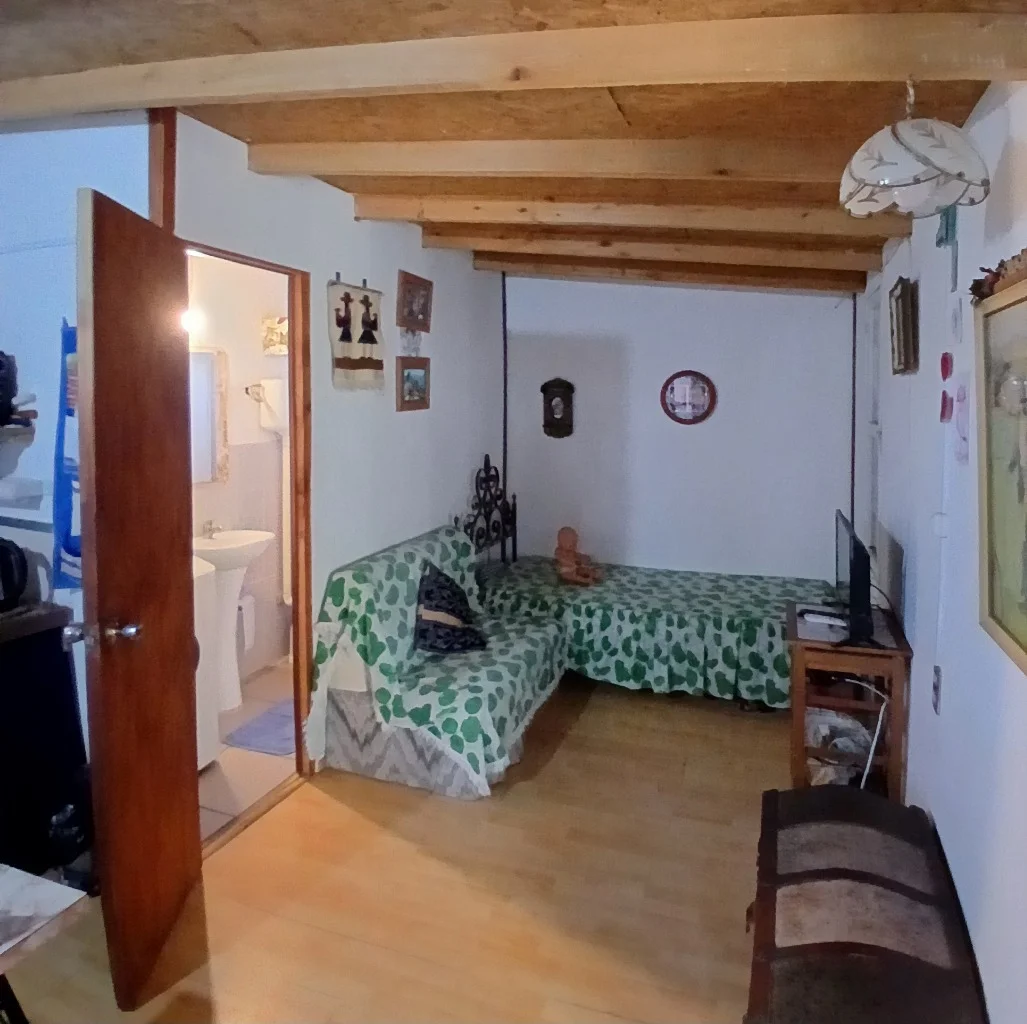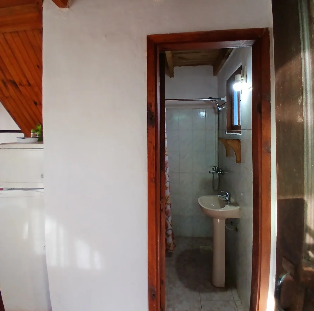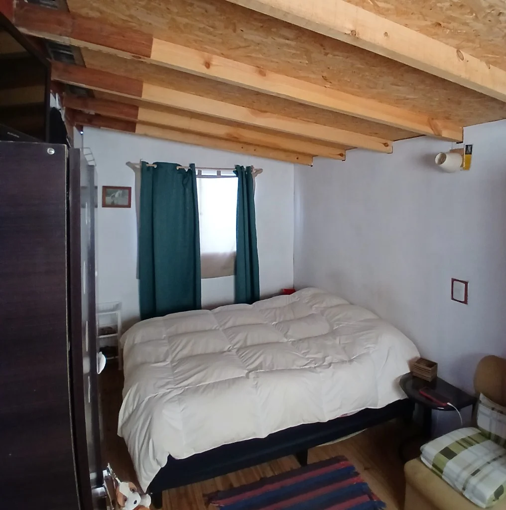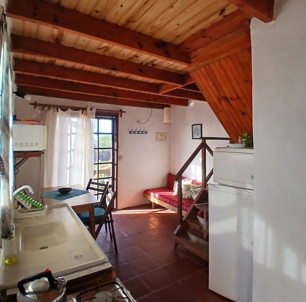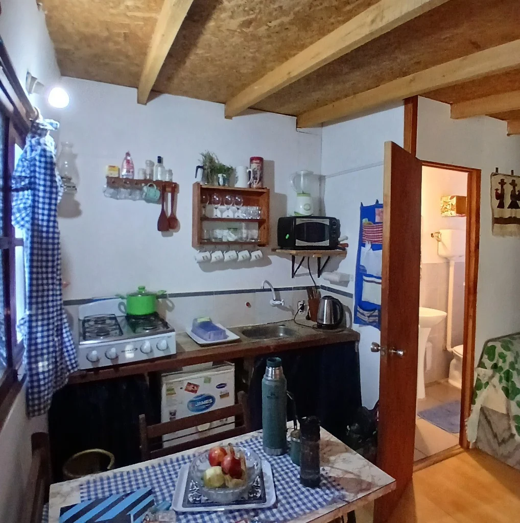 Casa 3, tipo apartamento. Esta casita al fondo tiene 30mts cuadrados aprox, construido con madera y revestimiento interior de yeso. Tiene un dormitorio amplio, cocina-comedor-living integrado con baño.