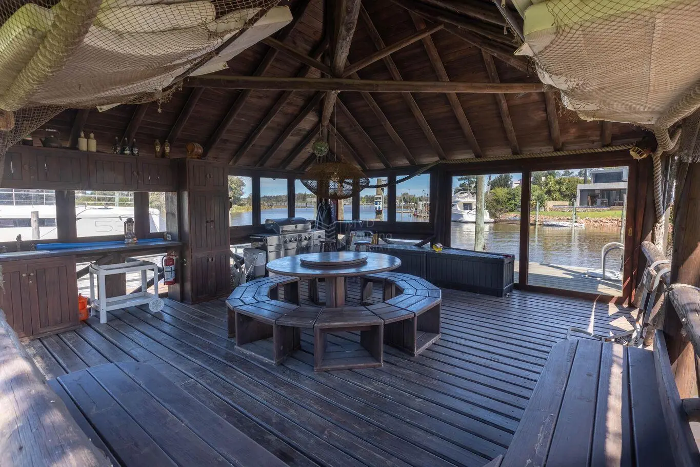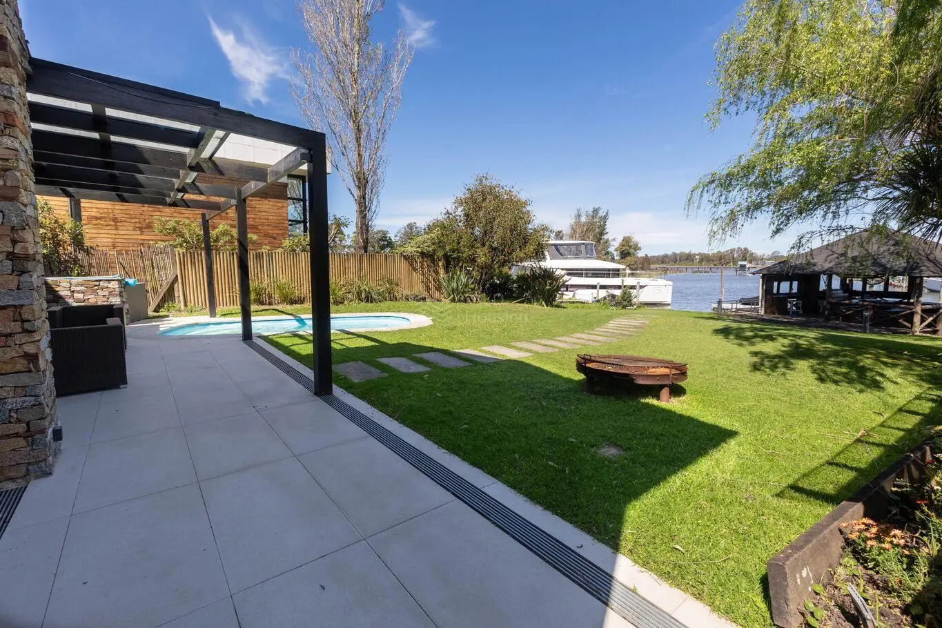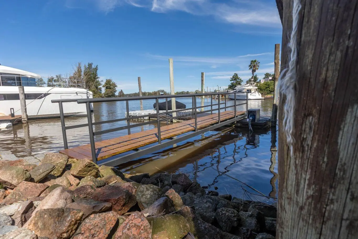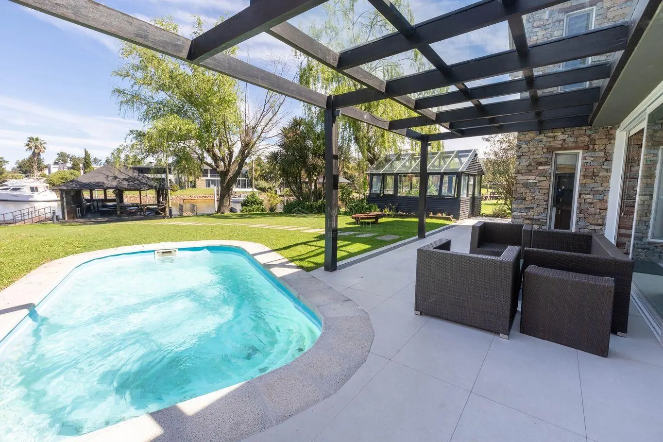 El parque enjardinado se abre hacia el río, donde una glorieta invita a disfrutar de almuerzos y atardeceres únicos, equipada con mobiliario y vajilla completa. El muelle, tanto fijo como flotante, ofrece la comodidad de amarre privado. Como complemento, un vivero tipo invernáculo de vidrio permite el cultivo de hierbas, flores o vegetales durante todo el año.