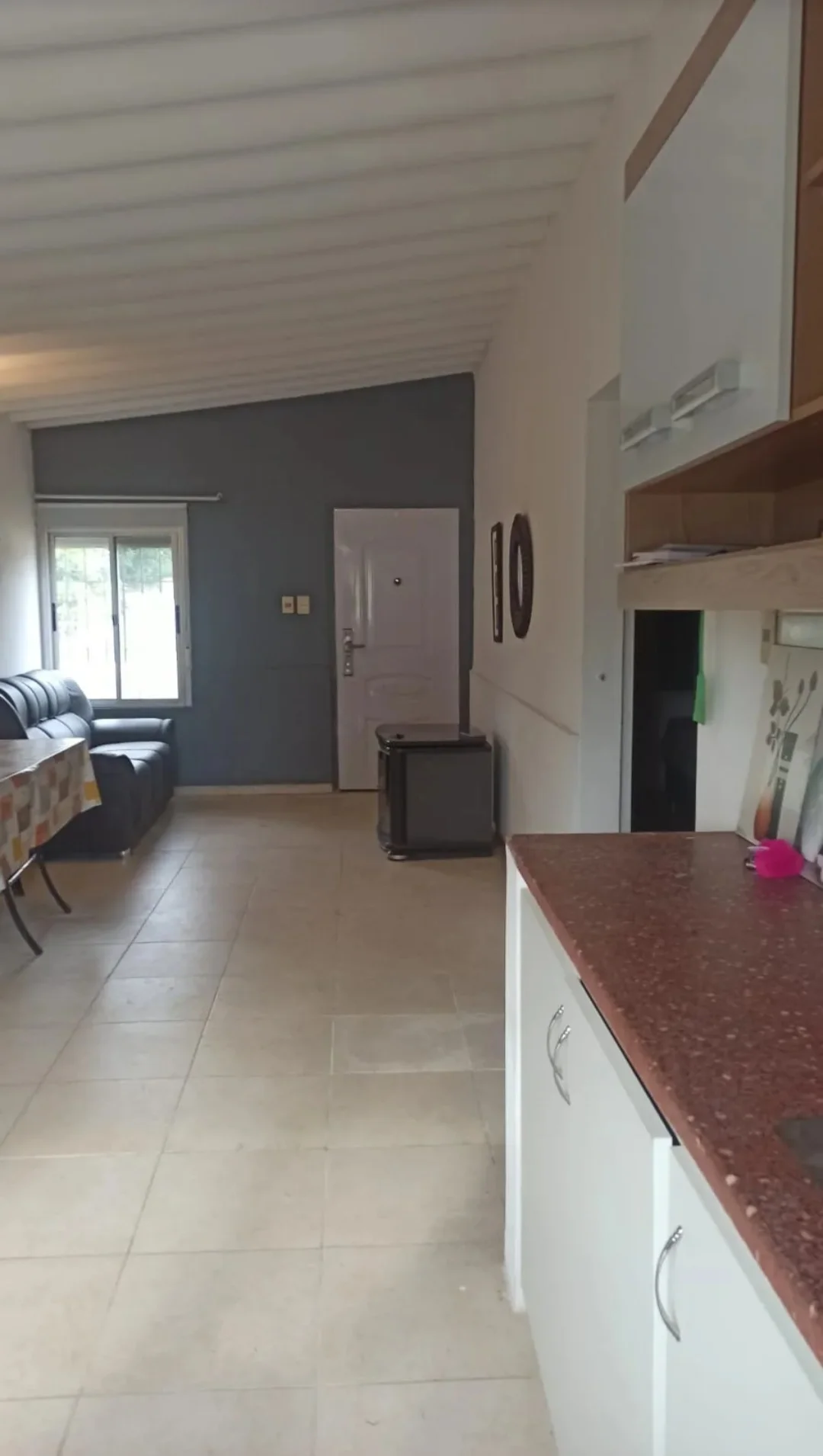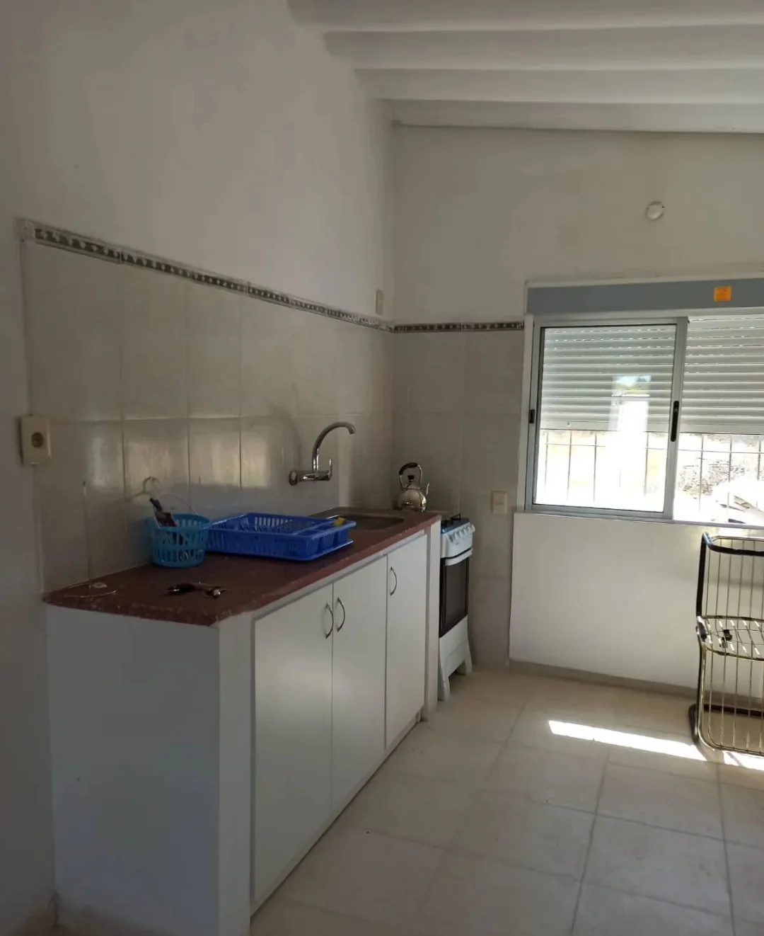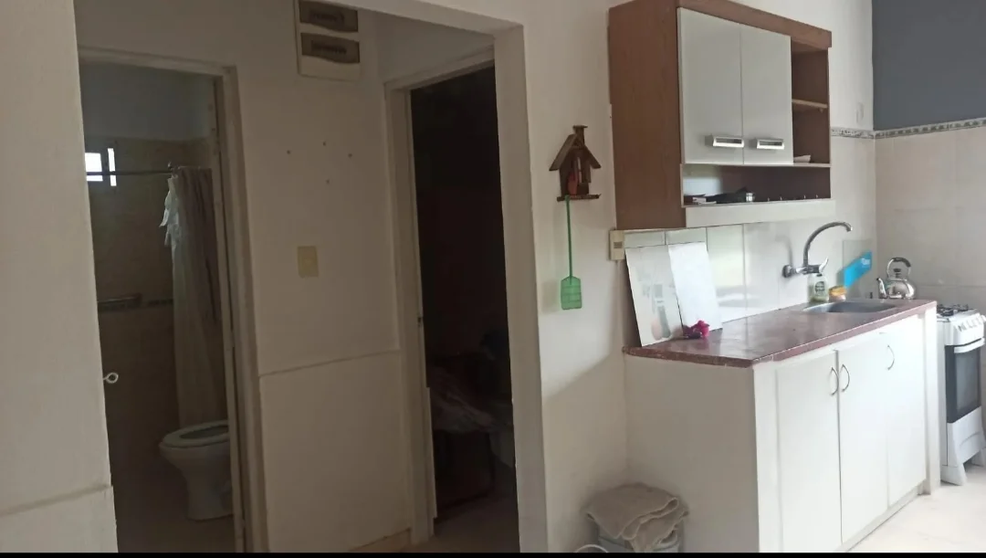 Cuenta con amplio living comedor, cocina integrada con muebles aéreos y bajo, y salida al patio trasero.