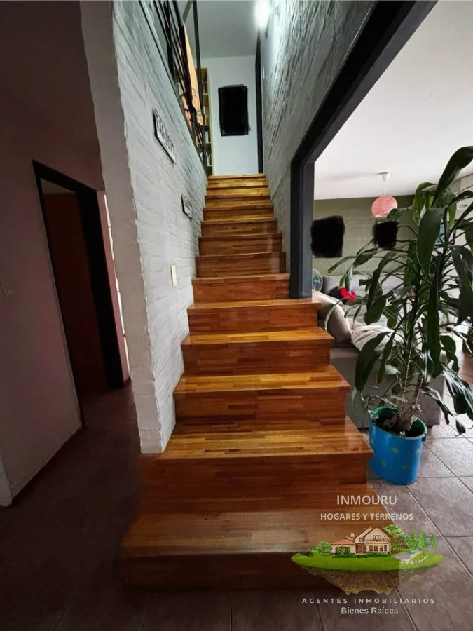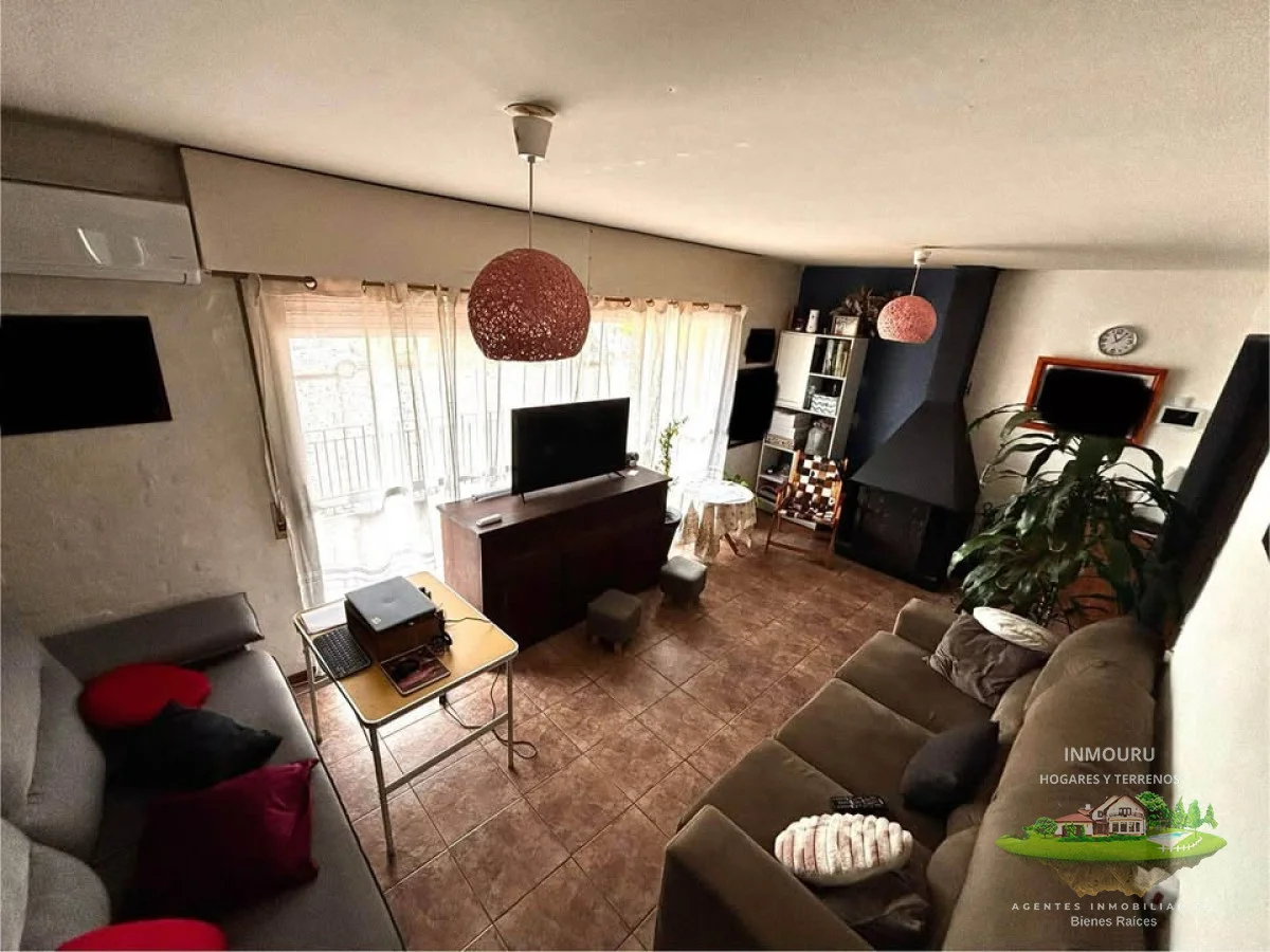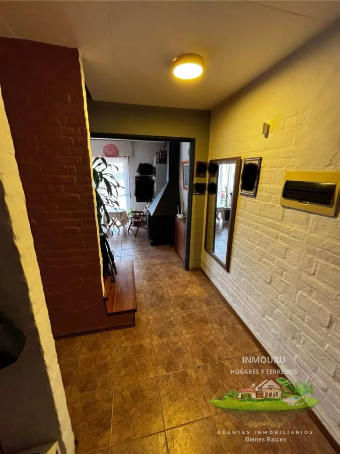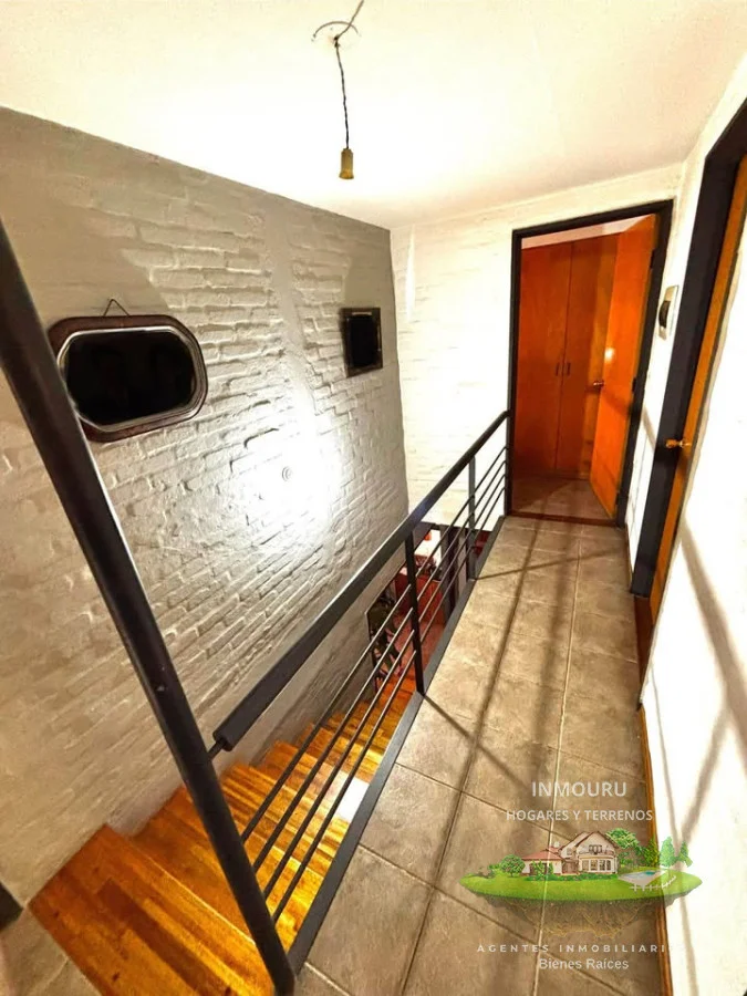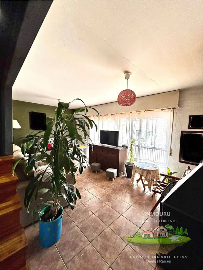El apartamento se distribuye en 3 dormitorios, dos de los mismos cuentan con aire acondicionado, 2 baños, uno en primer piso y otro en segundo piso, living-comedor con aire acondicionado, estufa a leña y amplio ventanal, cocina definida. Patio y cochera techada.