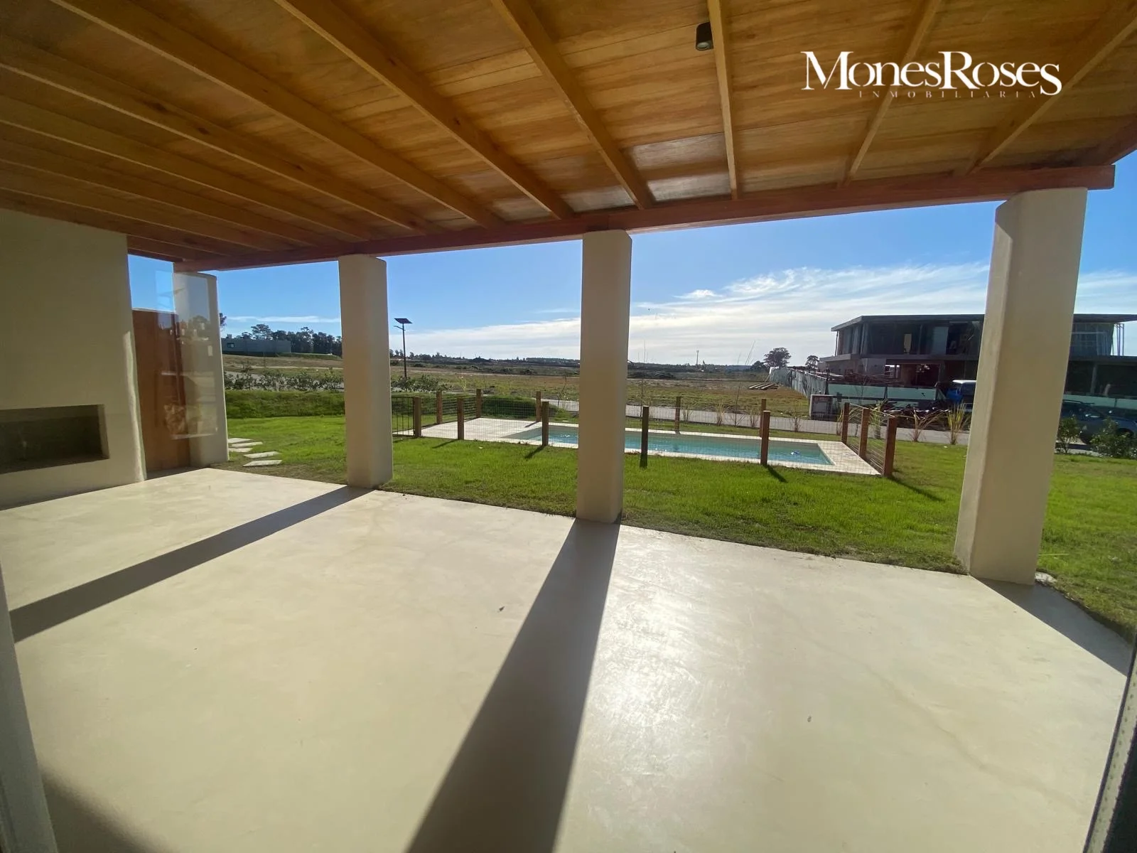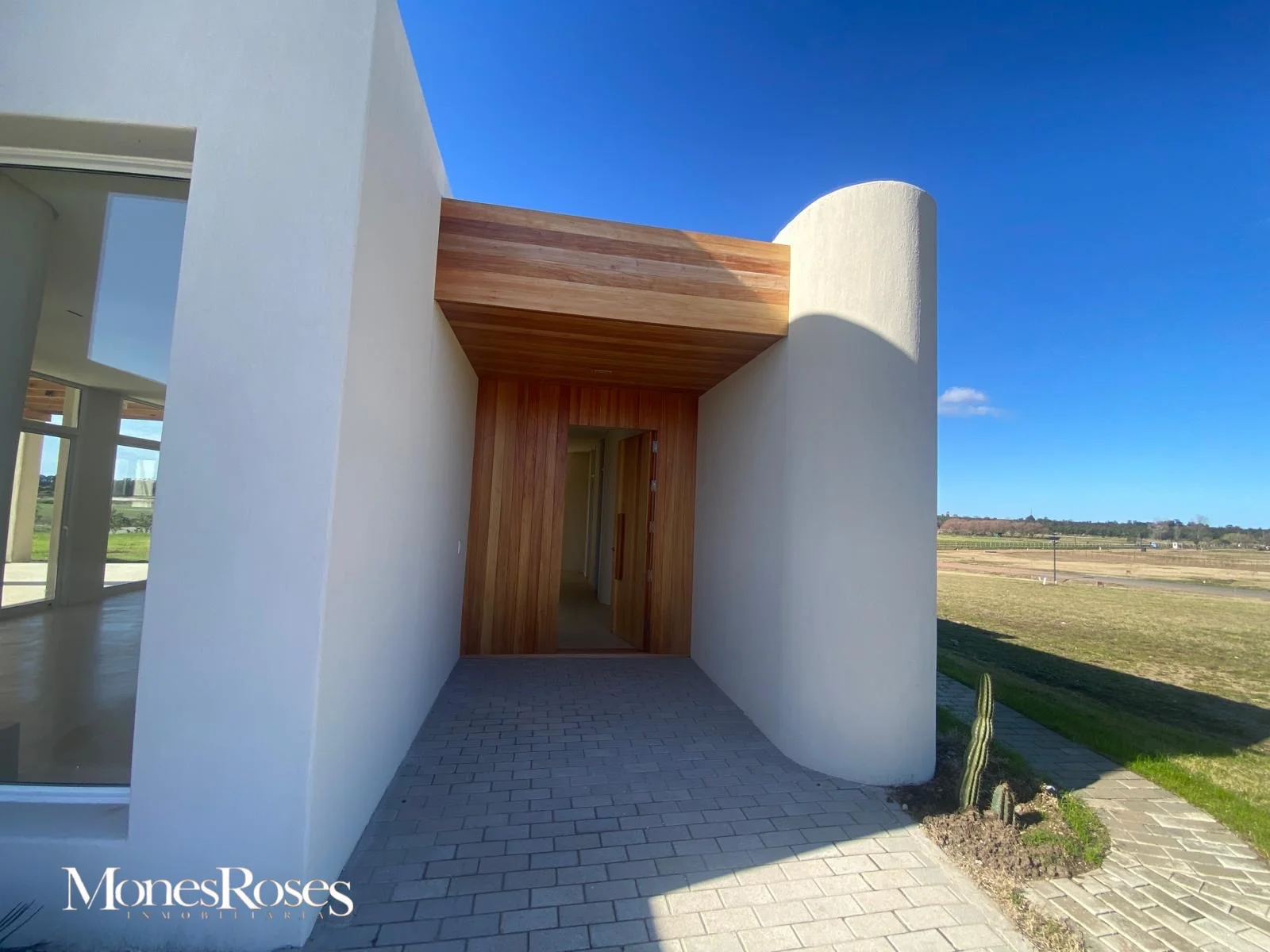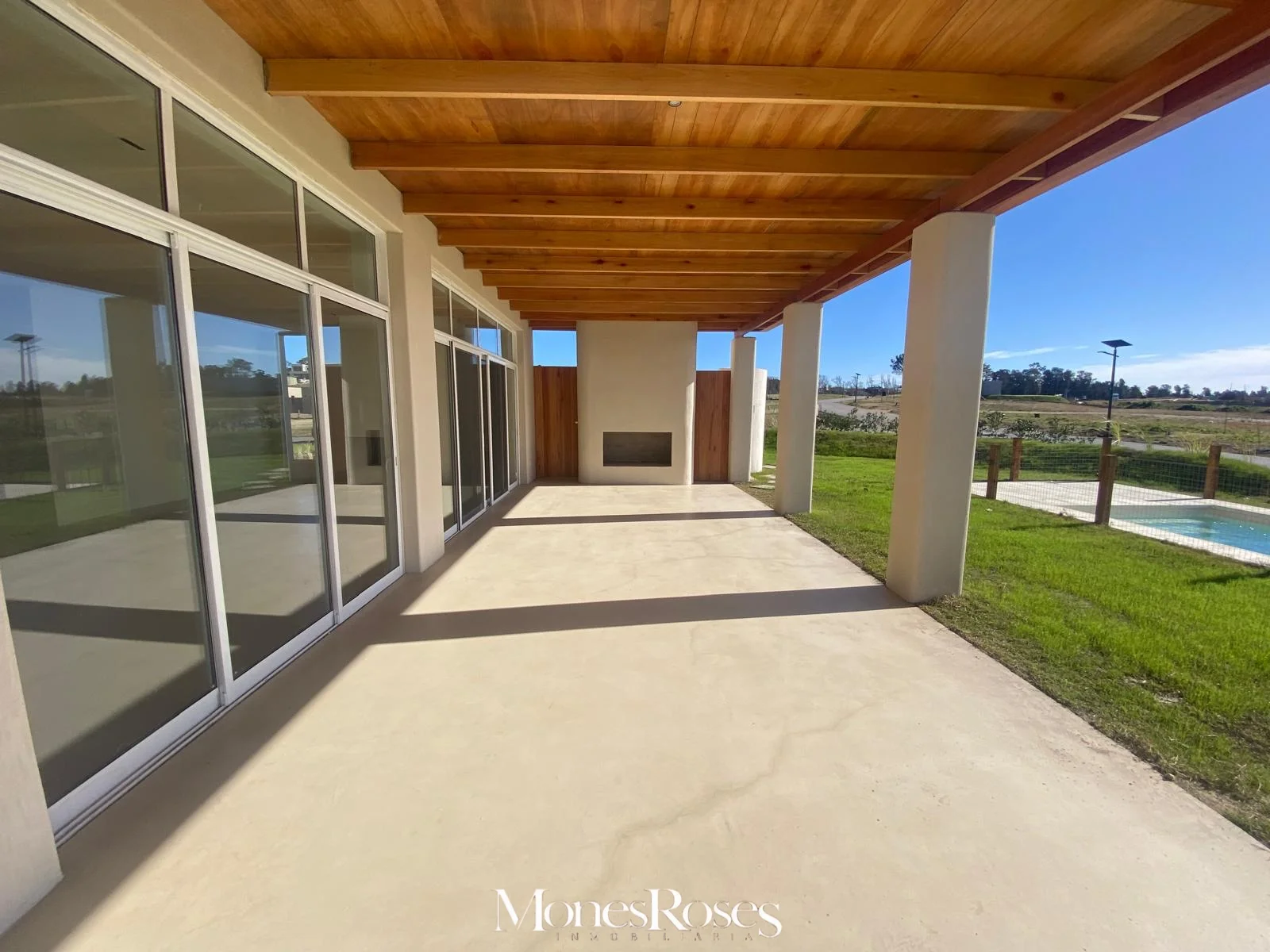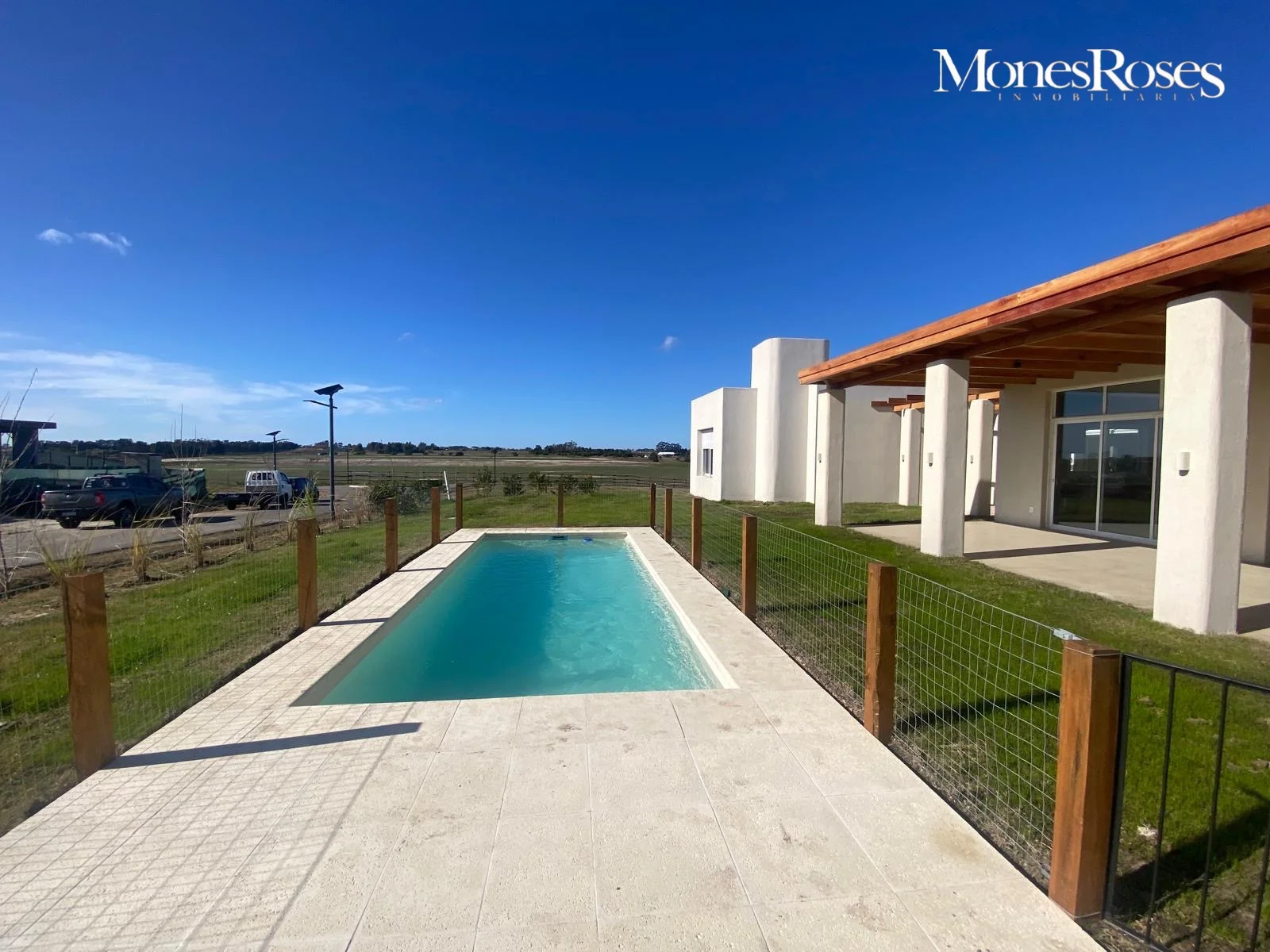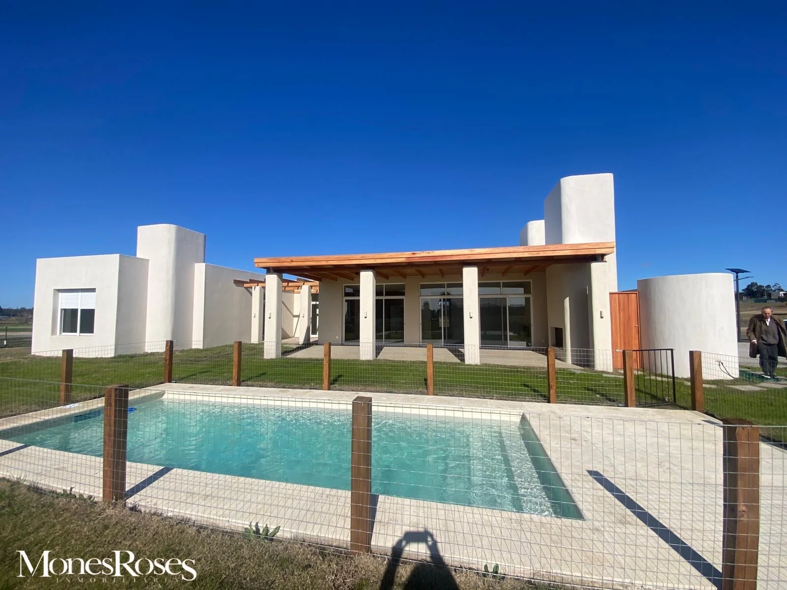 Excelente casa En CAVAS de la Tahona, Barrio con Seguridad. Divina casa a Estrenar, toda en 1 planta. Construcción moderna con gran luminosidad. Excelentes vistas a la cancha de Polo. Pallier de entrada. Living comedor amplio, estufa de leña, cocina integrada. Ambientes con salida a galeria techada, con parrillero, y con vistas al jardin y a la piscina. Toilette. Estar/escritorio. 3 dormitorios lindísimos, 2 baños, suite con vestidor. Lavadero y patio. Sistema de Calefacción con Bomba de calor, para la losa radiante, y agua caliente.- Aires Acondicionados. Riego. Gastos Comunes $ 10.500.- El Barrio cuenta con Club House muy disfrutable, y áreas sociales, piscina, cancha padel, etc. Vale la pena visitarla, pronta para vivir!!