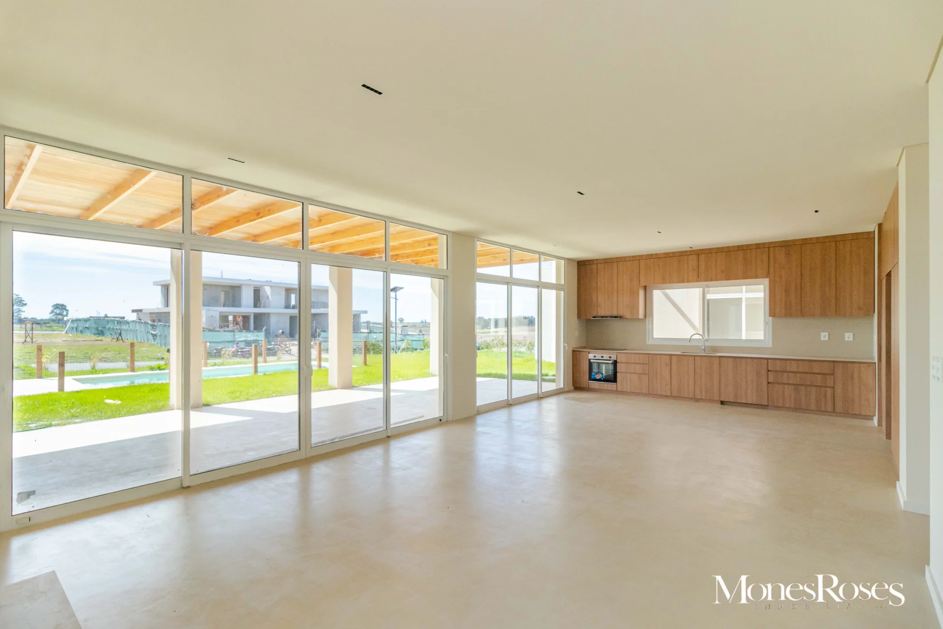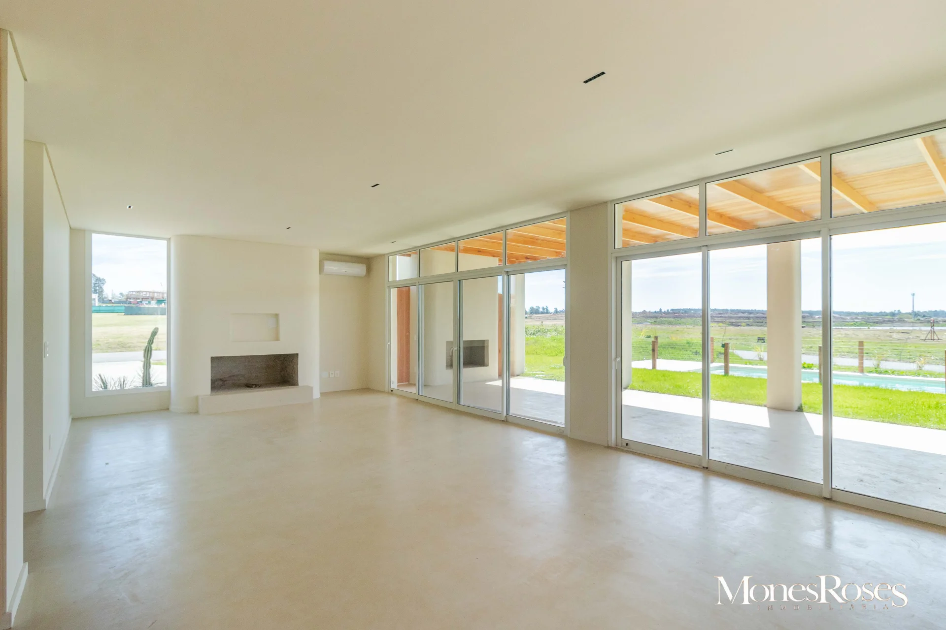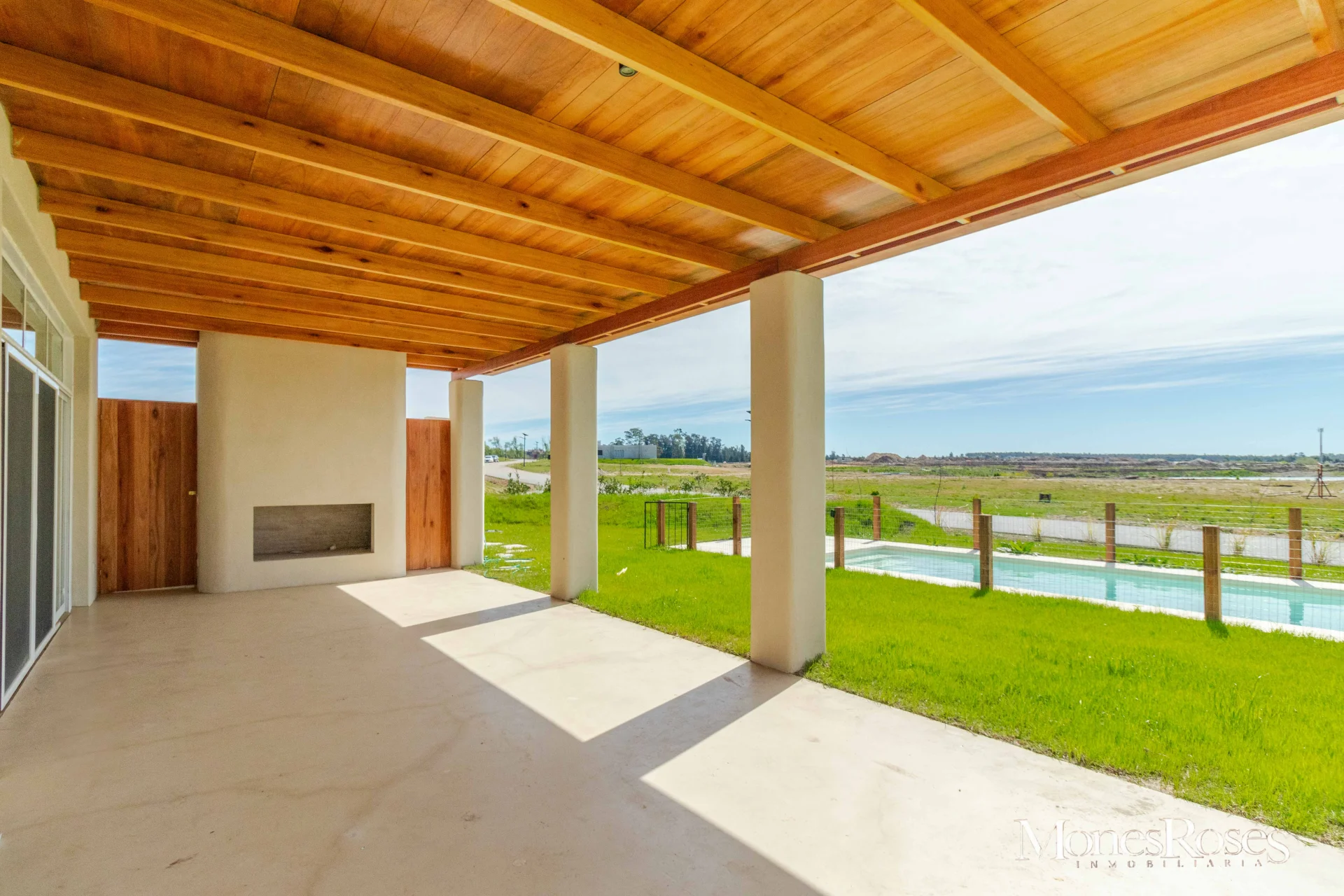 Excelente casa En CAVAS de la Tahona, Barrio con Seguridad. Divina casa a Estrenar, toda en 1 planta. Construcción moderna con gran luminosidad. Excelentes vistas a la cancha de Polo. Pallier de entrada. Living comedor amplio, estufa de leña, cocina integrada. Ambientes con salida a galeria techada, con parrillero, y con vistas al jardin y a la piscina. Toilette. Estar/escritorio. 3 dormitorios lindísimos, 2 baños, suite con vestidor. Lavadero y patio. Sistema de Calefacción con Bomba de calor, para la losa radiante, y agua caliente.- Aires Acondicionados. Riego. Gastos Comunes $ 10.500.- El Barrio cuenta con Club House muy disfrutable, y áreas sociales, piscina, cancha padel, etc. Vale la pena visitarla, pronta para vivir!!