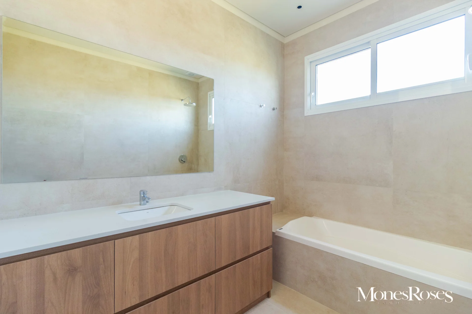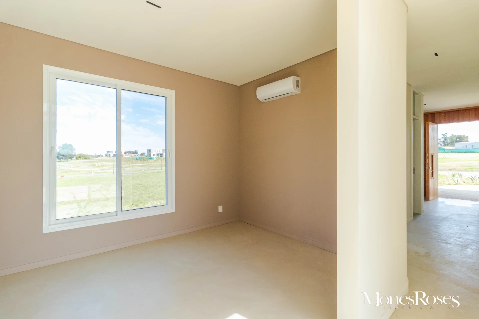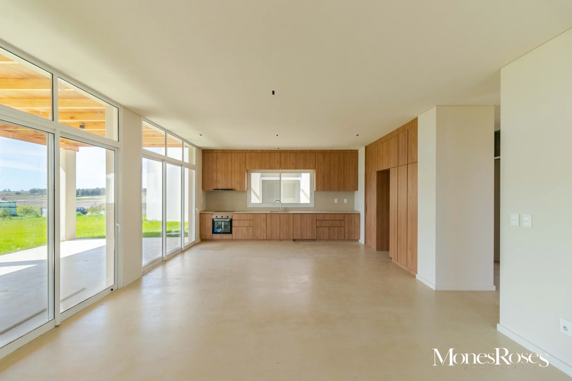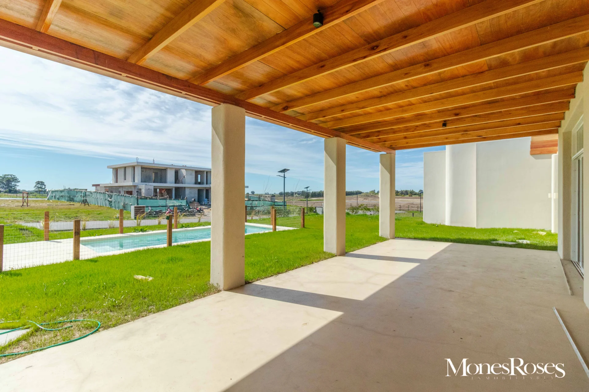 Excelente casa En CAVAS de la Tahona, Barrio con Seguridad. Divina casa a Estrenar, toda en 1 planta. Construcción moderna con gran luminosidad. Excelentes vistas a la cancha de Polo. Pallier de entrada. Living comedor amplio, estufa de leña, cocina integrada. Ambientes con salida a galeria techada, con parrillero, y con vistas al jardin y a la piscina. Toilette. Estar/escritorio. 3 dormitorios lindísimos, 2 baños, suite con vestidor. Lavadero y patio. Sistema de Calefacción con Bomba de calor, para la losa radiante, y agua caliente.- Aires Acondicionados. Riego. Gastos Comunes $ 10.500.- El Barrio cuenta con Club House muy disfrutable, y áreas sociales, piscina, cancha padel, etc. Vale la pena visitarla, pronta para vivir!!