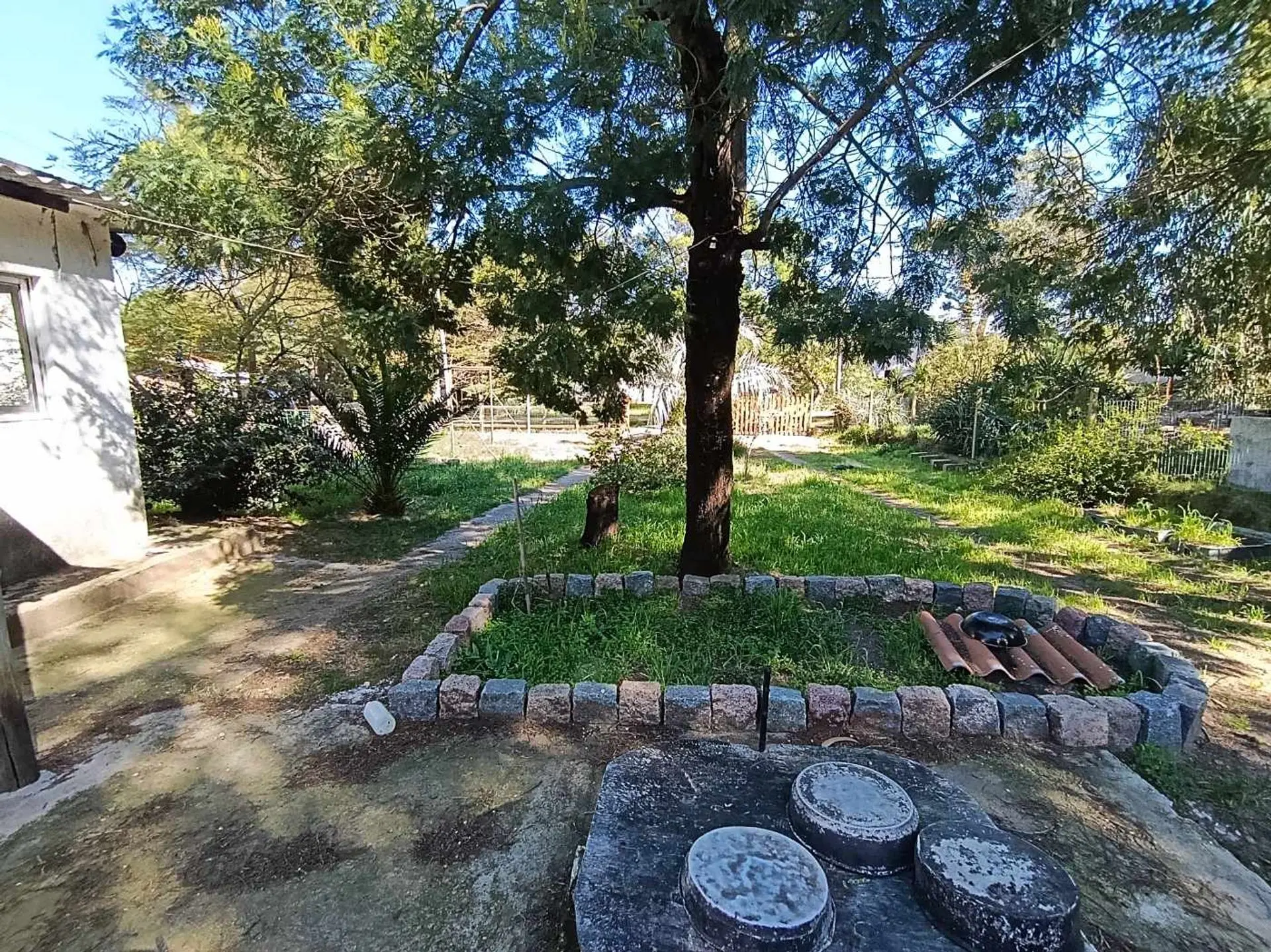 La vivienda cuenta con dos dormitorios amplios, living comedor con estufa a leña, cocina definida, y baño completo. Al frente se destaca un gran espacio abierto, ideal para disfrutar al aire libre, junto a una barbacoa cerrada y garage techado.