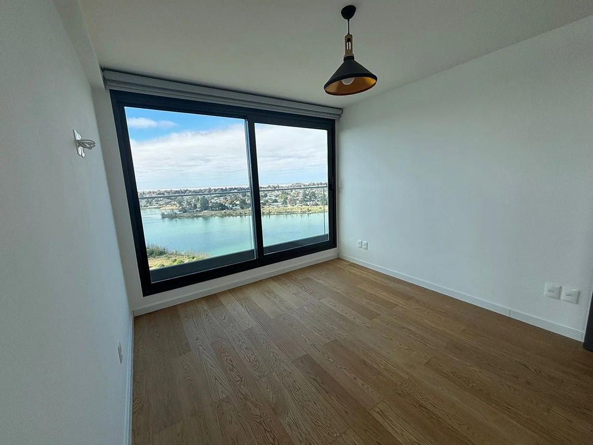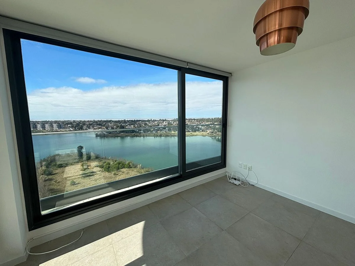 Living comedor muy luminoso con ventanales de piso a techo que le otorgan una hermosa vista al lago y acceso a amplia terraza. Cocina integrada al living comedor equipada con anafe, horno y campana. Terraza lavadero con lavarropa y secarropa. Baño social. Sala de estar o posibilidad de un tercer dormitorio. 2 dormitorios amplios, principal en suite con vestidor. Dos plazas de garaje, cada uno con box.