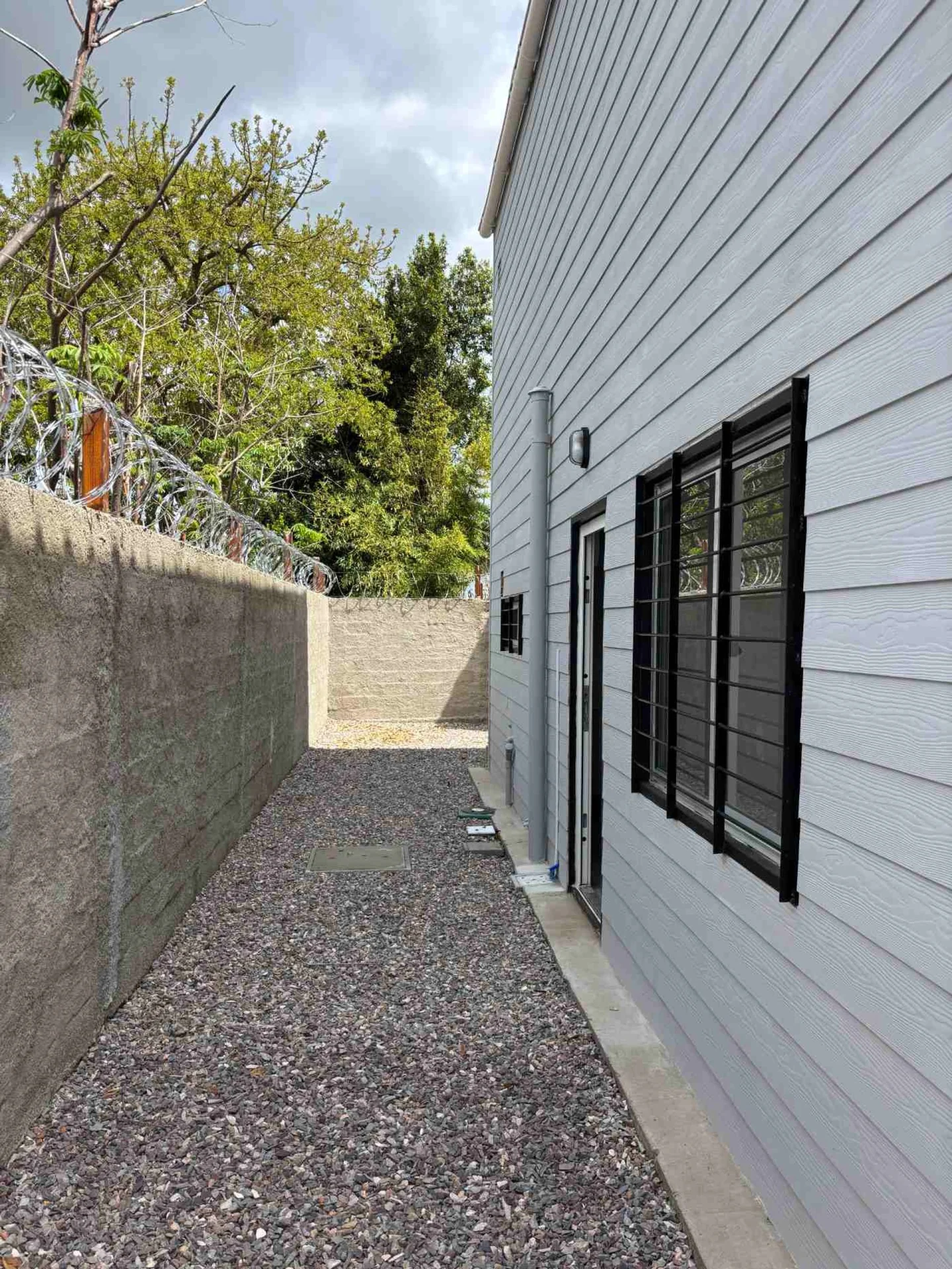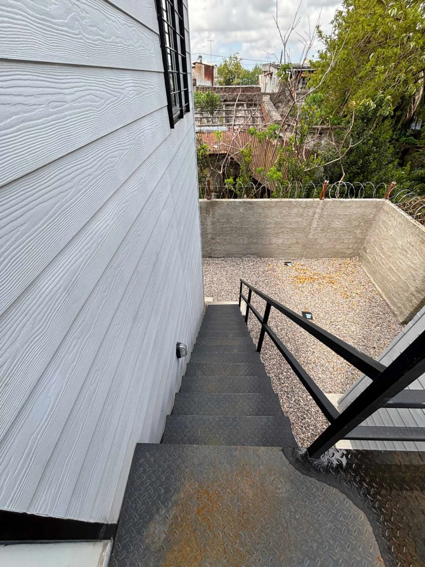 La entrada vehicular es compartida, al igual que el acceso peatonal. Todo el predio está cercado.