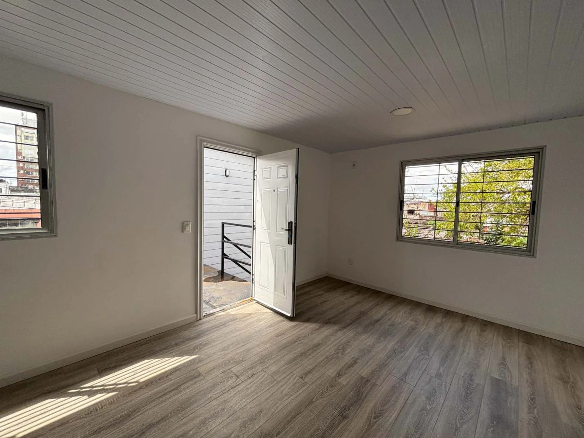La propiedad se encuentra en planta alta (primer piso por escalera), al ingresar posee una cocina integrada, living/comedor muy luminoso. Además, tiene una puerta ventana que da acceso a un patio privado con parrillero y lugar asignado con instalación para el lavarropas. Esto permite una excelente entrada de luz natural.