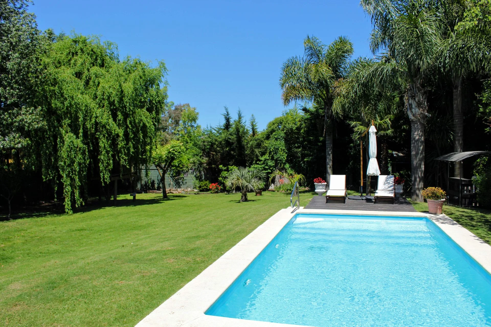 Al fondo del terreno encontramos un amplio jardín, con piscina de muy buenas dimensiones, diversos espacios que pueden ser utilizados para varios propósitos, actualmente se utilizan como depósito y taller.