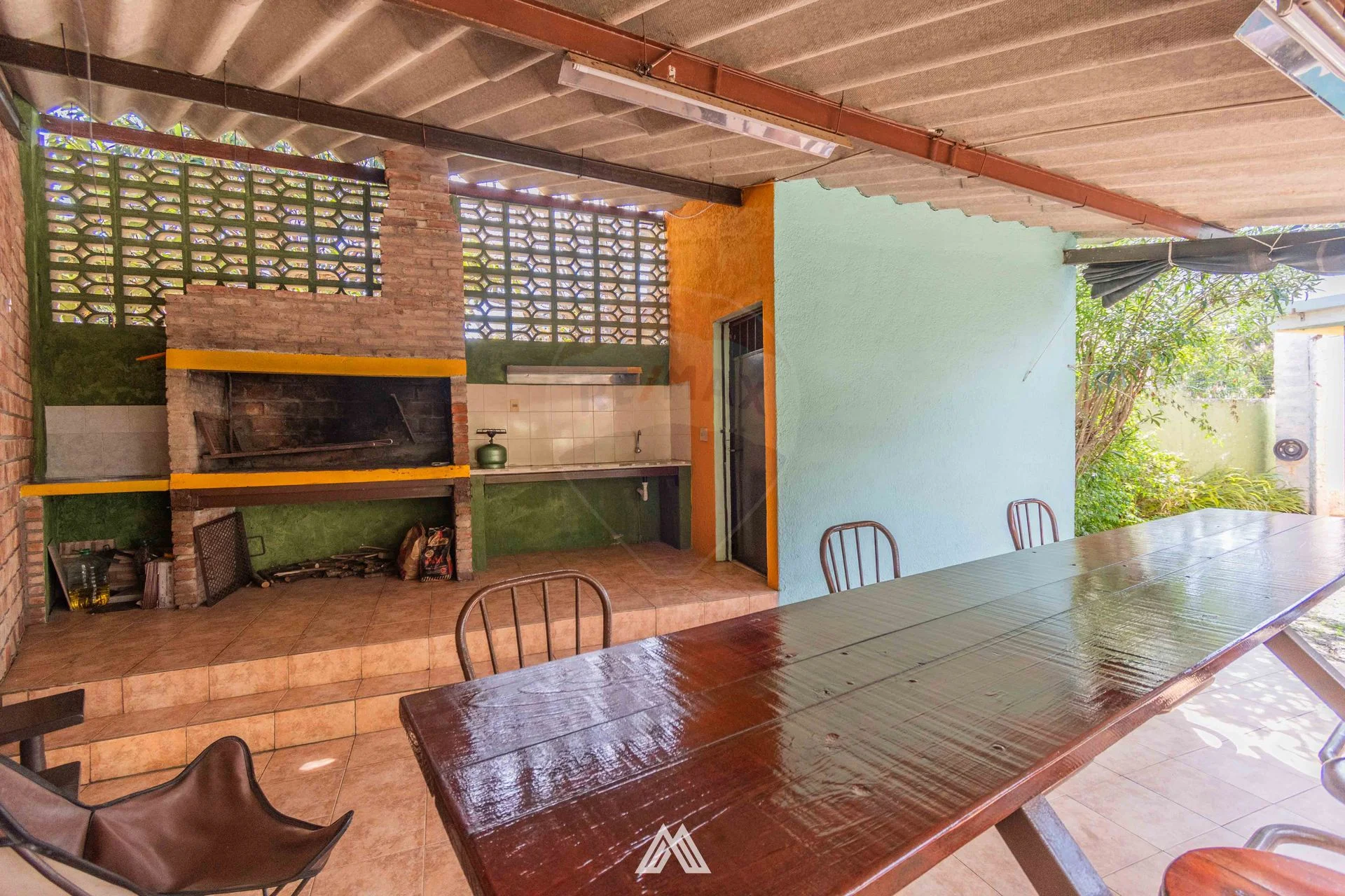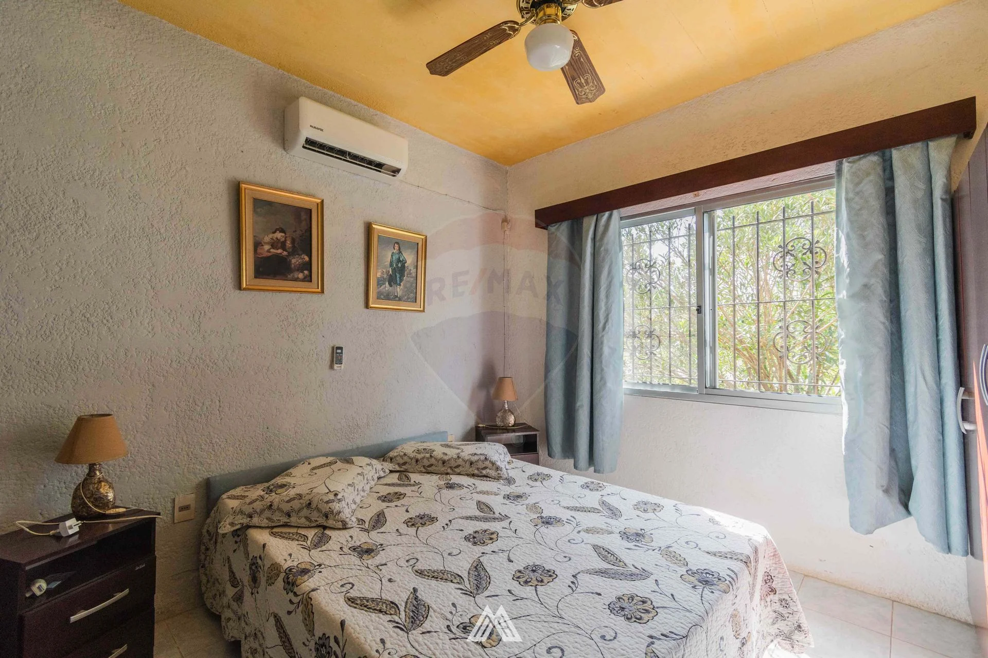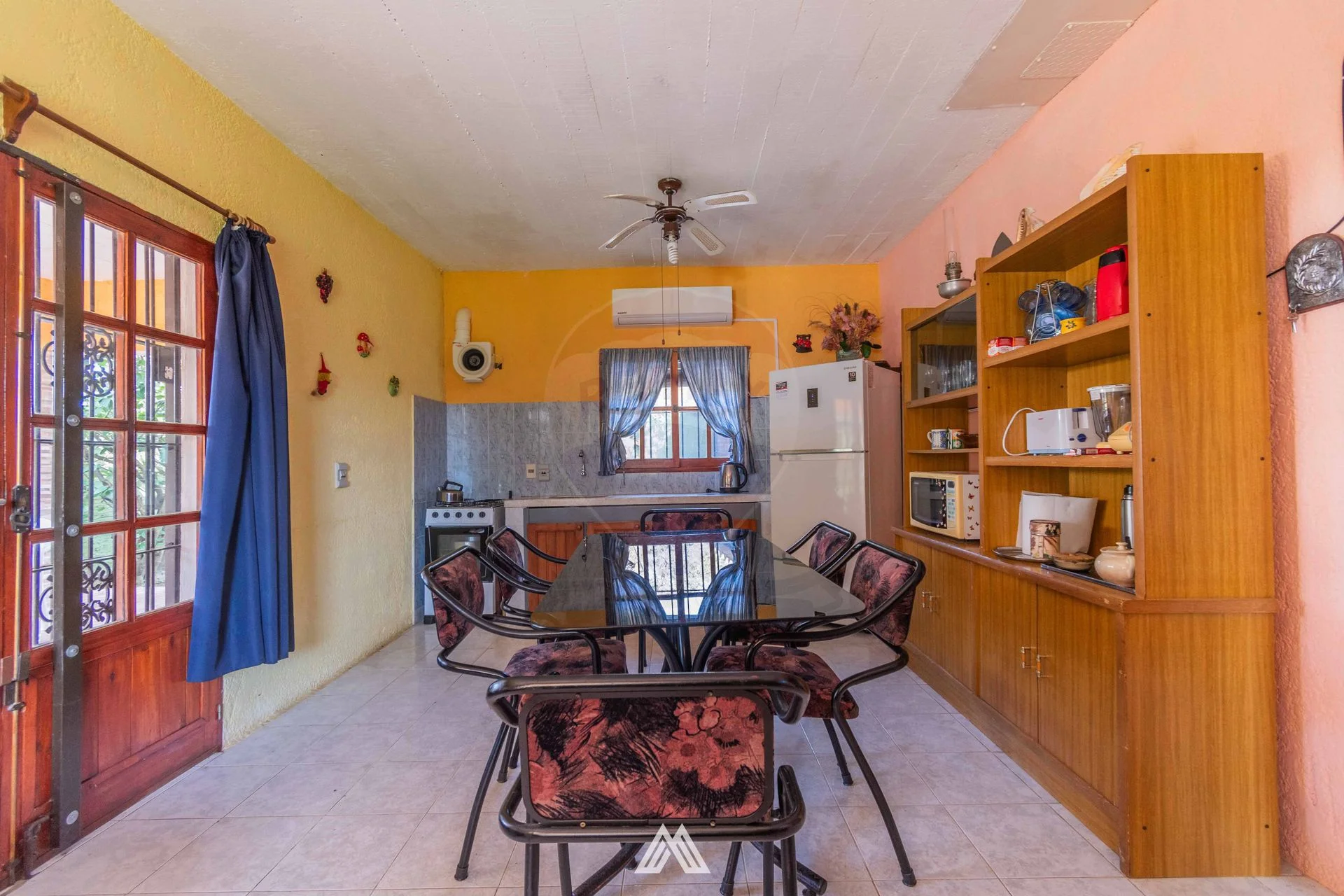 Cuenta con dos dormitorios con aire acondicionado, cocina comedor, todas las ventanas con mosquiteros y rejas al igual que las puertas, baño completo y cochera; al fondo muy cómodo y disfrutable parrillero techado, amplia mesada, habitación con baño y lavadero. Ducha exterior. Amplio jardín al frente.