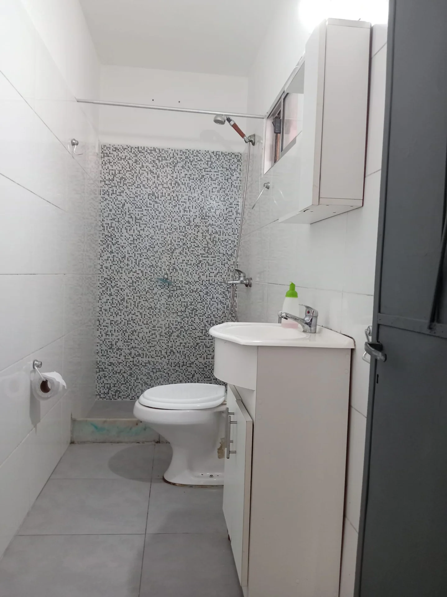 El baño completo cuenta con revestimientos en cerámica moderna, de fácil mantenimiento, y los elementos en buen estado: lavamanos, inodoro y ducha.