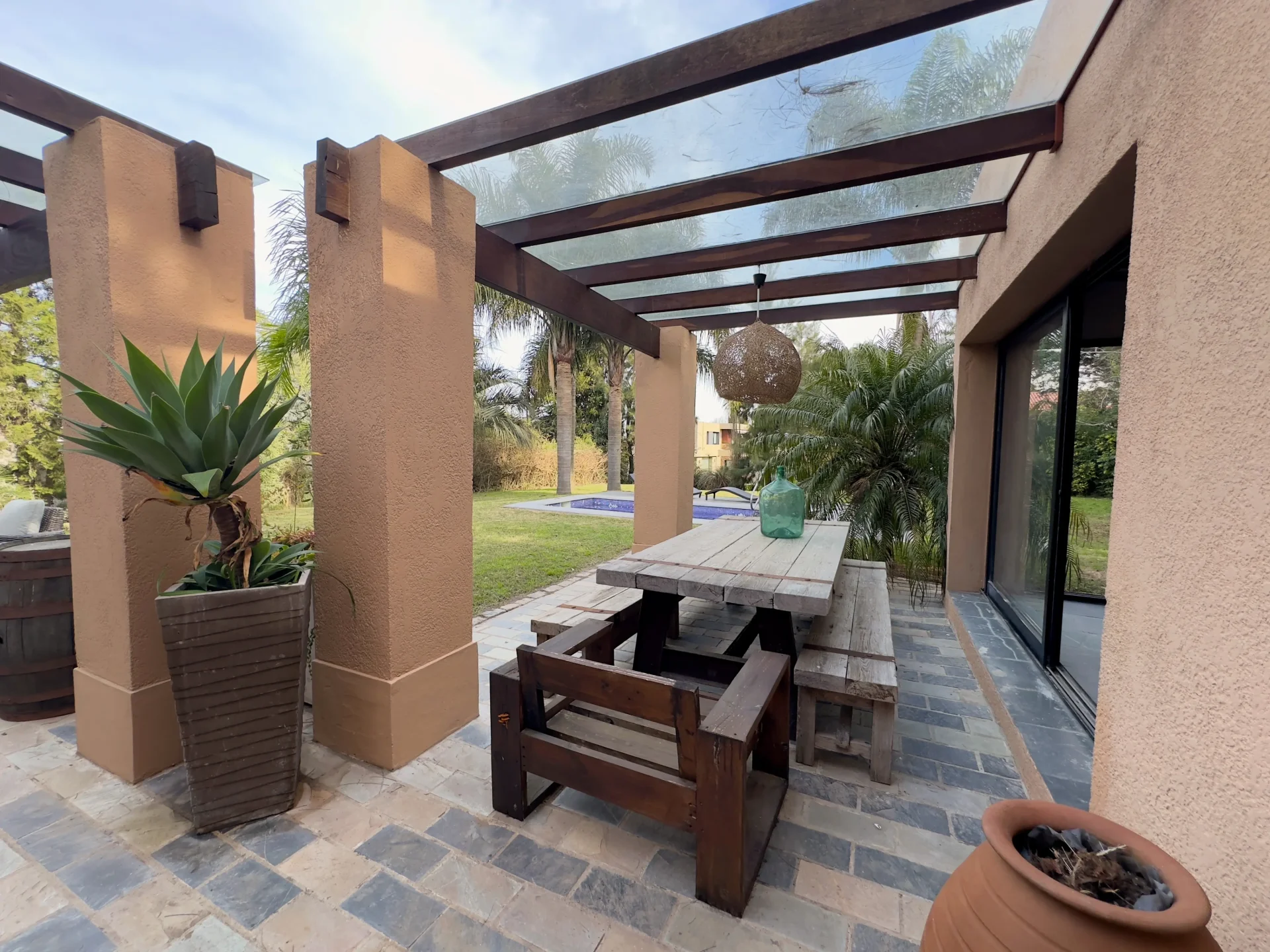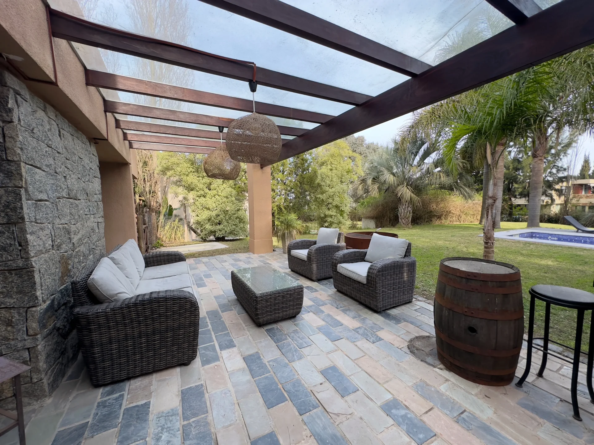 Esta elegante propiedad en alquiler se encuentra en Altos de La Tahona, Canelones, y ofrece una exclusiva combinación de comodidades y lujo. Con 3 dormitorios y 2 baños, esta casa de 235m2 cuenta con una impresionante piscina, aire acondicionado, calefacción por losa radiante y estufa a leña para su confort en todas las estaciones. Además, su moderno diseño incluye un amplio vestidor y acceso a un gimnasio privado. Con seguridad las 24 horas y una ubicación privilegiada, esta propiedad amueblada en excelente estado es ideal para quienes buscan un estilo de vida sofisticado.
