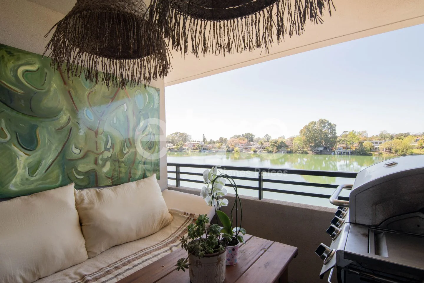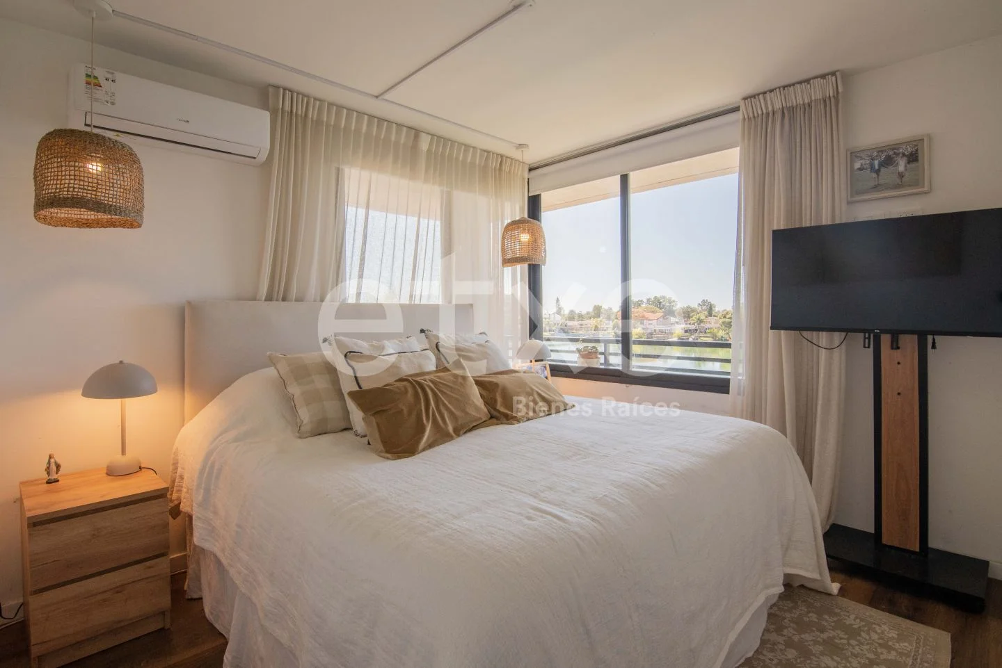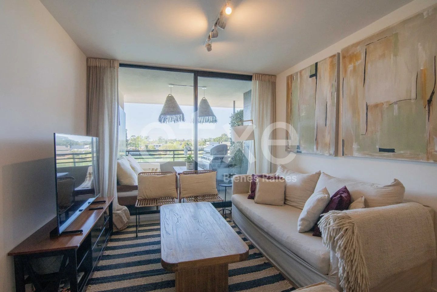 Apartamento con preciosa vista hacia el lago. Cuenta con living comedor y salida a amplia terraza. Cocina definida con terraza de servicio. Dos dormitorios, con con salida a balcón y un baño completo.