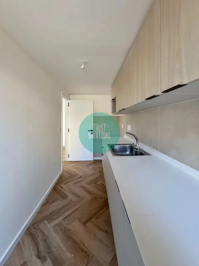 El apartamento en alquiler a estrenar cuenta con 2 dormitorios, orientado hacia el Oeste, cuenta con living-comedor, terraza, cocina integrada, con mobiliario bajo mesada y aéreos. Equipado con horno, anafe y campana. Baño equipado con accesorios y mampara. Previsión para lavarropas.