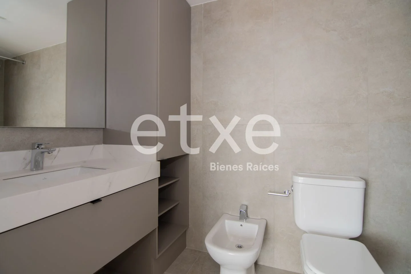 El baño incluye mampara fija en la ducha y calefón de 60L.