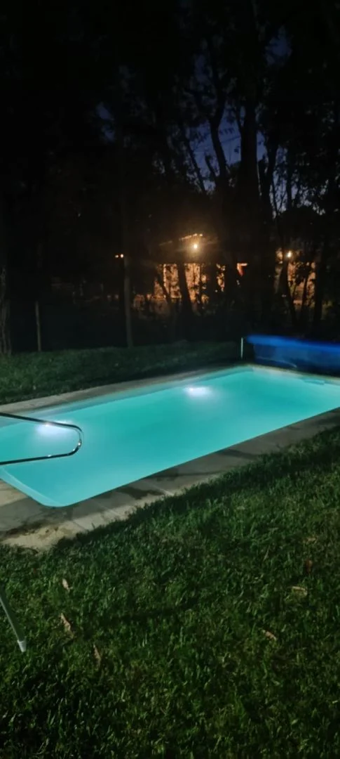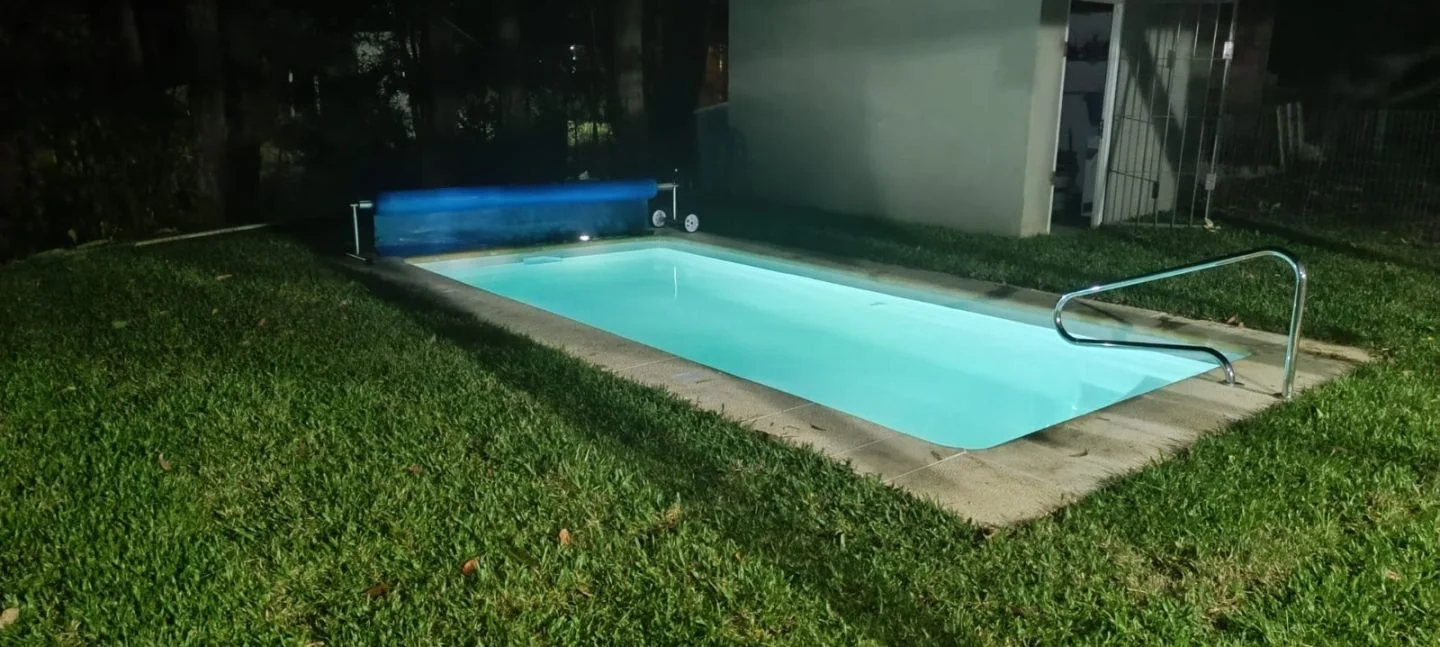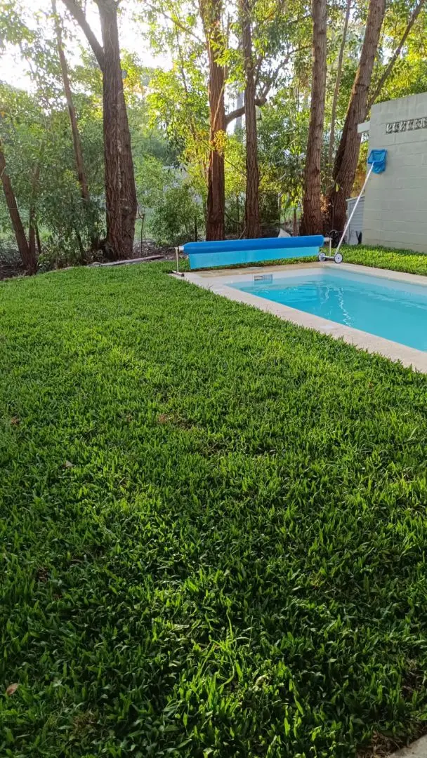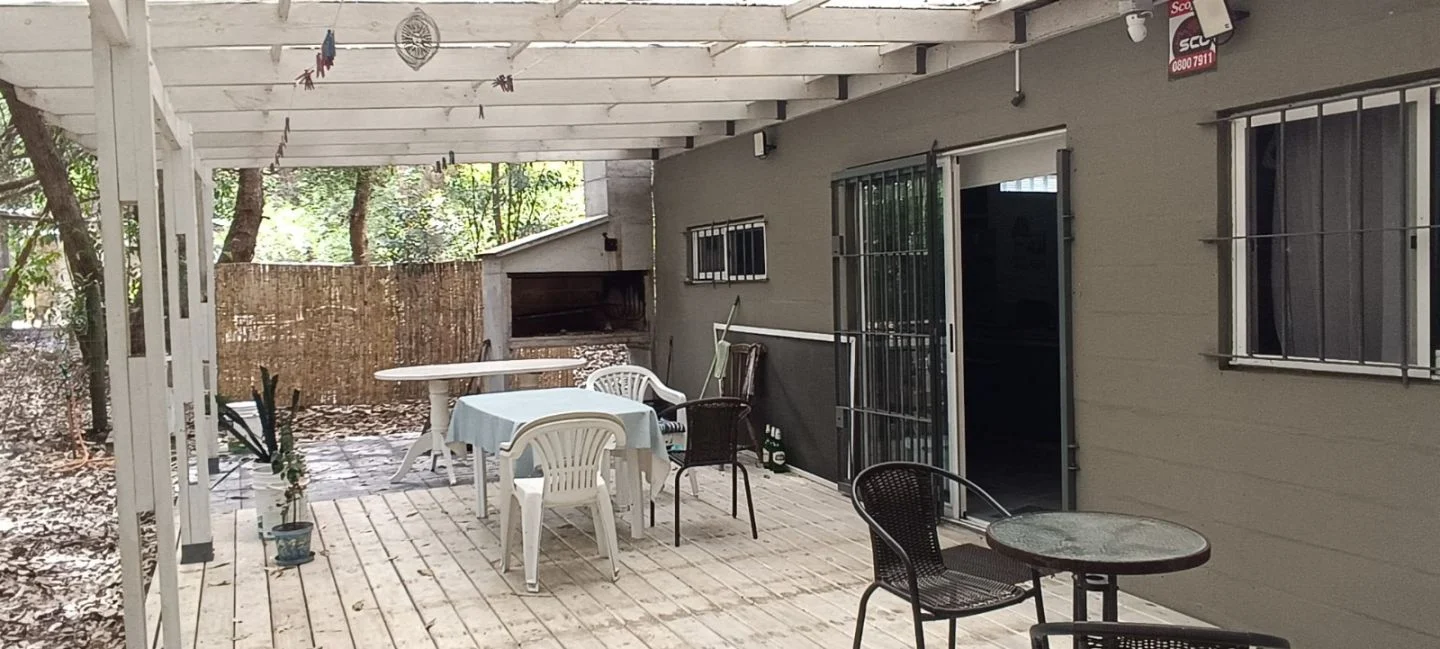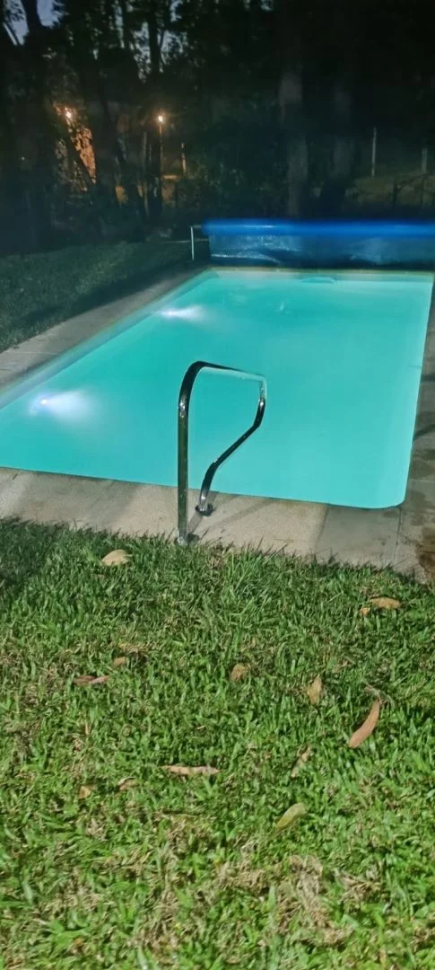 Se alquila temporalmente casa de 2 dormitorios, hasta para 7 personas, y piscina climatizada, totalmente equipada con muebles, electrodomésticos y vajilla, a 150 metros de la playa en Guazuvirá, Canelones, en una zona muy tranquila de muchos árboles y verde. A 100 mts de la calle principal y a 100 mts del Emprendimiento El Descubrimiento.