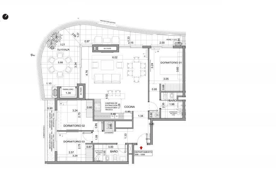 Living comedor con amplia terraza de 35 m2 en \"L\" con parrillero, cocina integrada con placares, 3 dormitorios al frente con placares y salida a terraza, 1 en suite, 2 baños completos.
