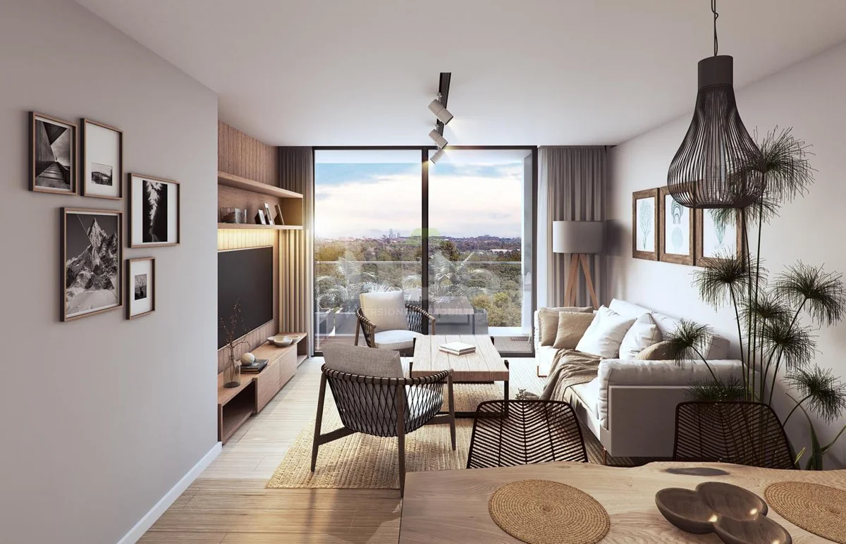Living-comedor ocn cocina integrada mediante barra, baño y dormitorio.