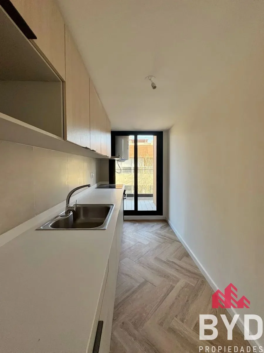 El apartamento en alquiler a estrenar cuenta con 2 dormitorios, orientado hacia el Oeste, cuenta con living-comedor, terraza, cocina integrada, con mobiliario bajo mesada y aéreos. Equipado con horno, anafe y campana. Baño equipado con accesorios y mampara. Previsión para lavarropas.