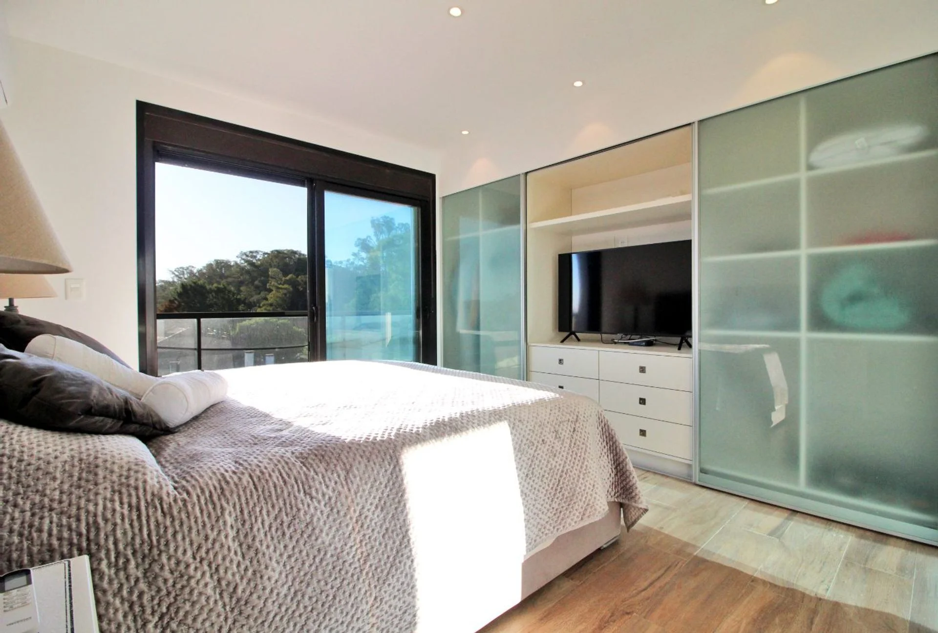Los dormitorios tienen placares empotrados, y el principal suma placares con puertas de vidrio esmerilado.