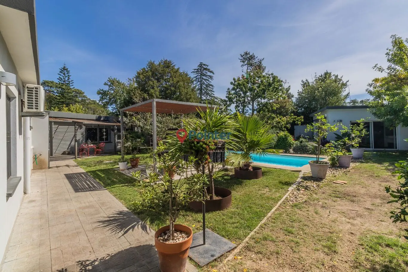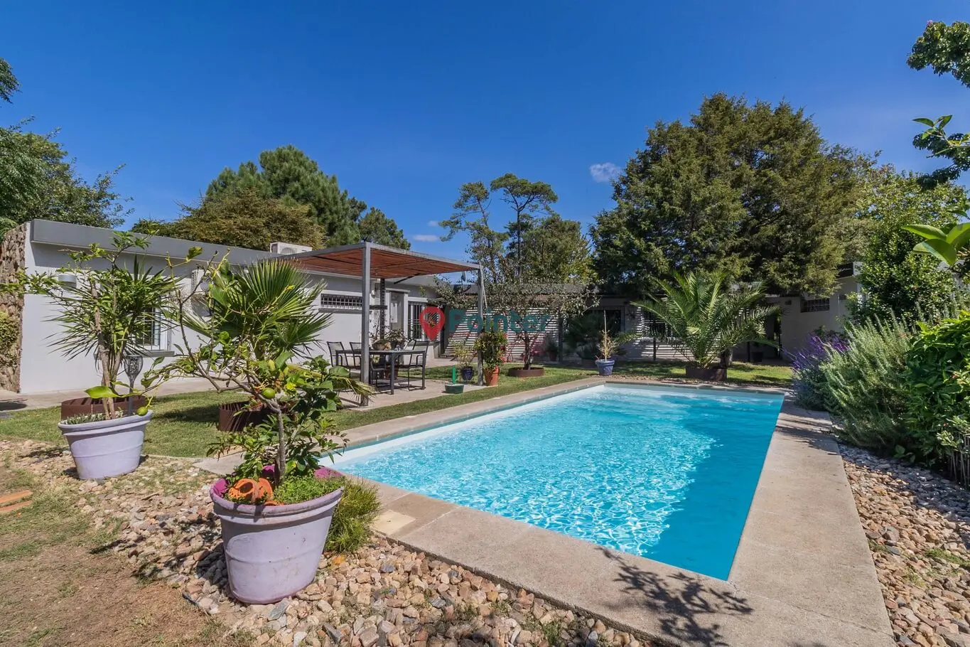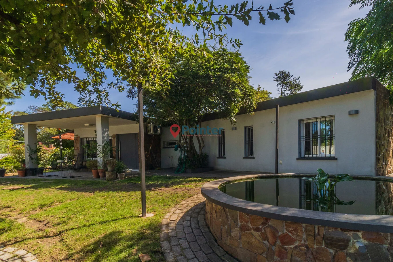 El extenso jardín, con riego automatizado, piscina, árboles frutales, olivos, huerta y un espectacular estanque circular con peces carpas, es un regalo visual para los amantes de la naturaleza