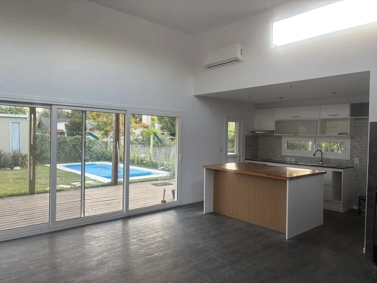 Cuenta con tres dormitorios de muy buen tamaño, uno de ellos en suite, dos baños completos y ambientes amplios que permiten una excelente circulación. La cocina, de estilo americano, es moderna, funcional y se integra perfectamente al living comedor, ofreciendo una vista directa al patio y a la piscina, lo que aporta una sensación de amplitud y conexión con el exterior.