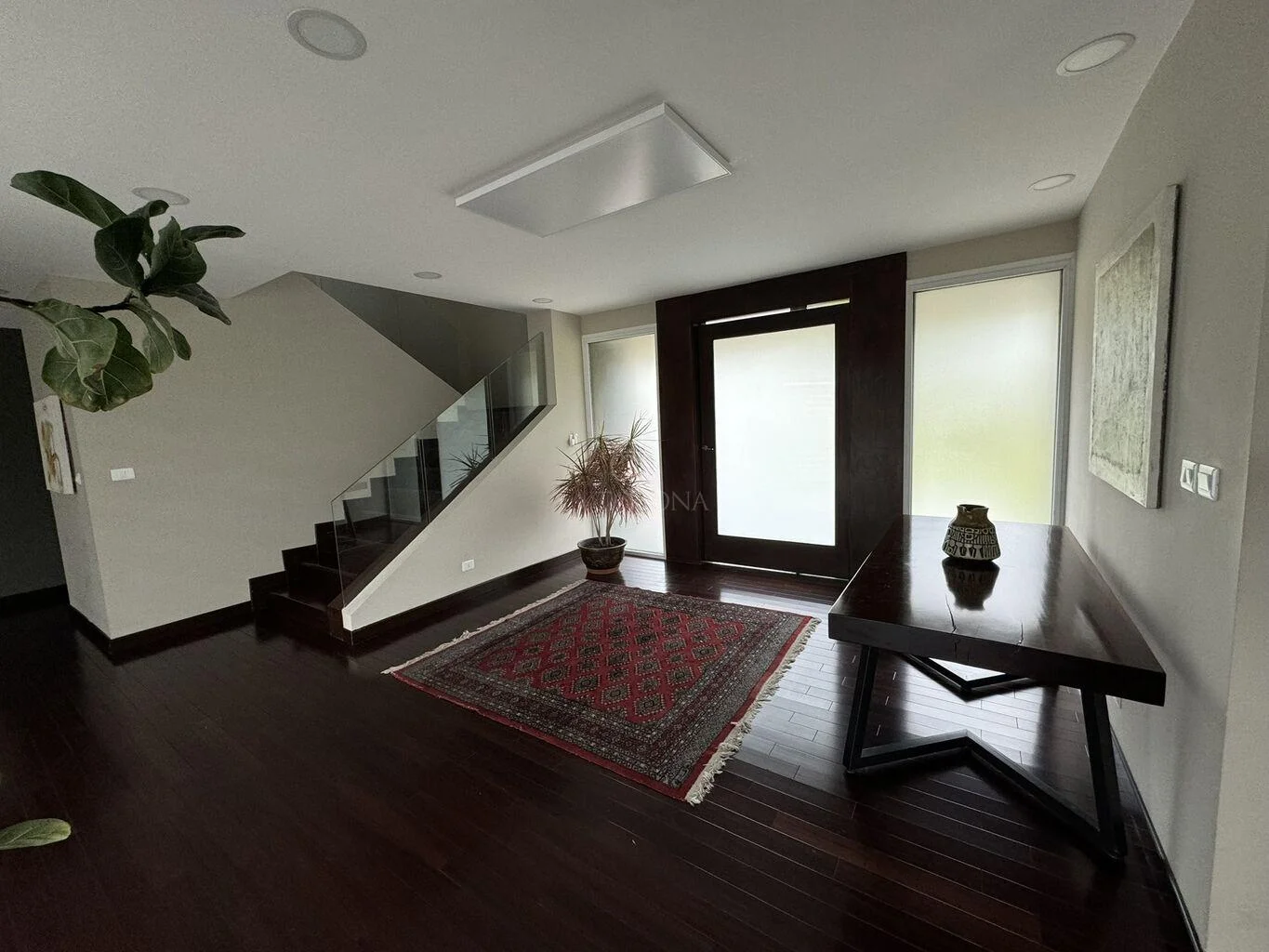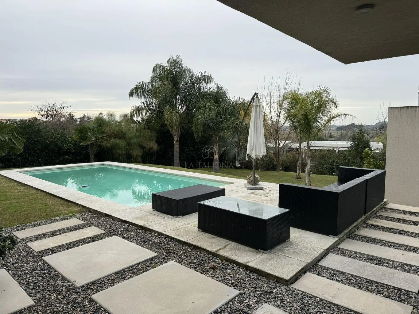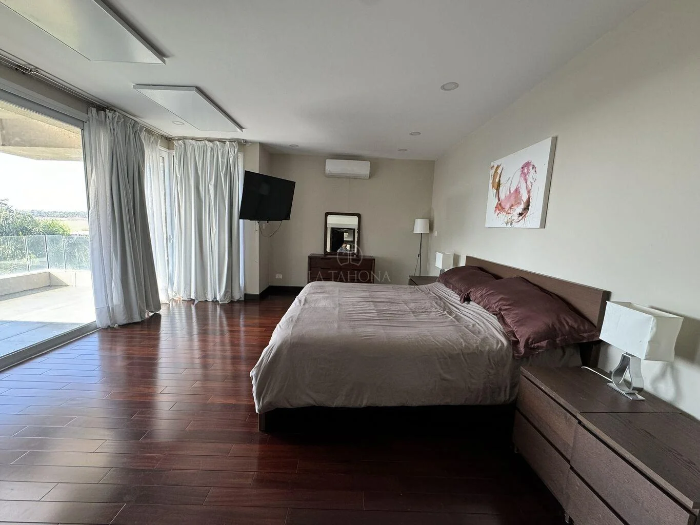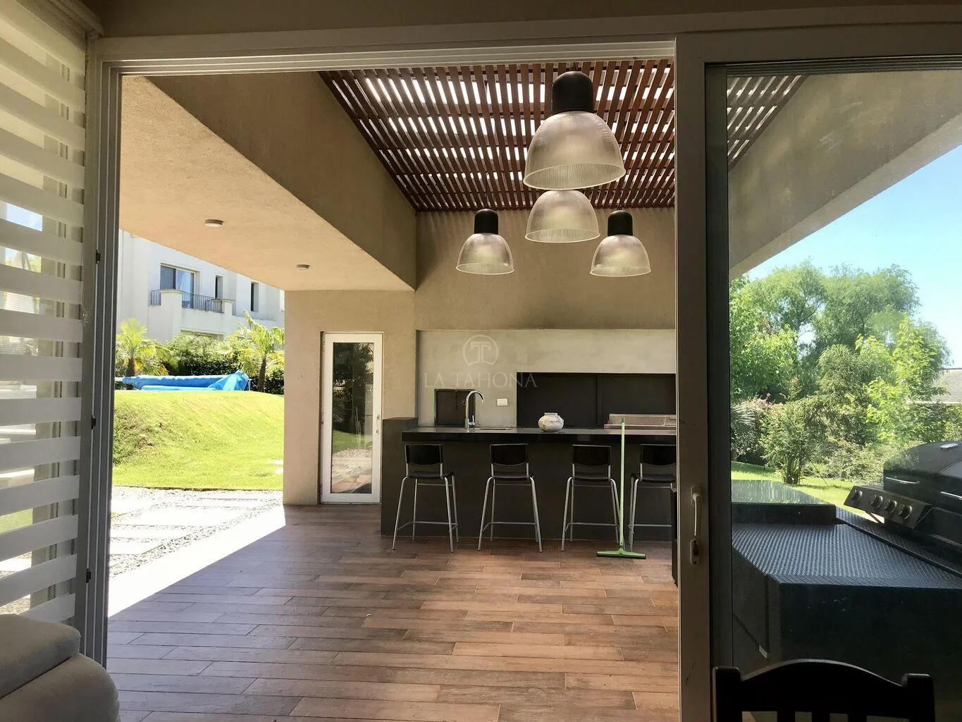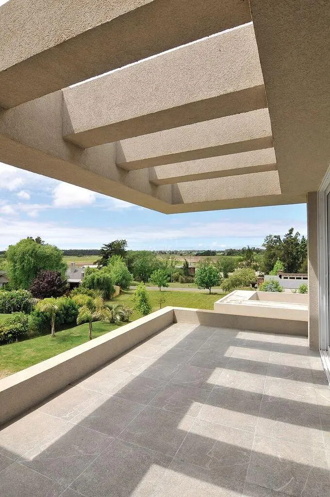 • Terraza exterior techada con barandas de vidrio con vistas a la piscina y con área para ubicar reposeras.