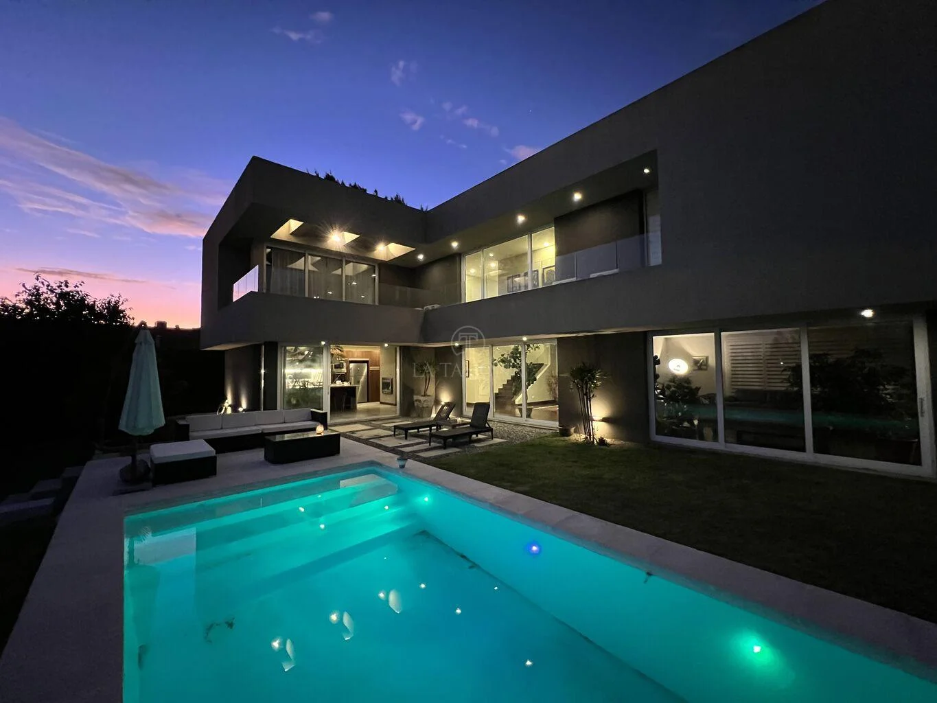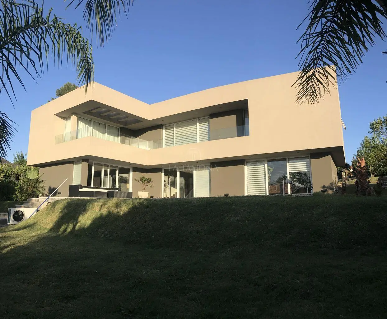 La casa se desarrolla en dos plantas, el área del terreno es de 1.250 m² y de construcción es de 438 m².