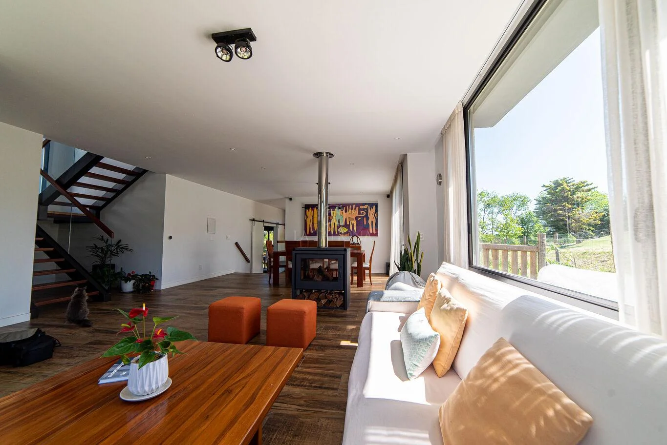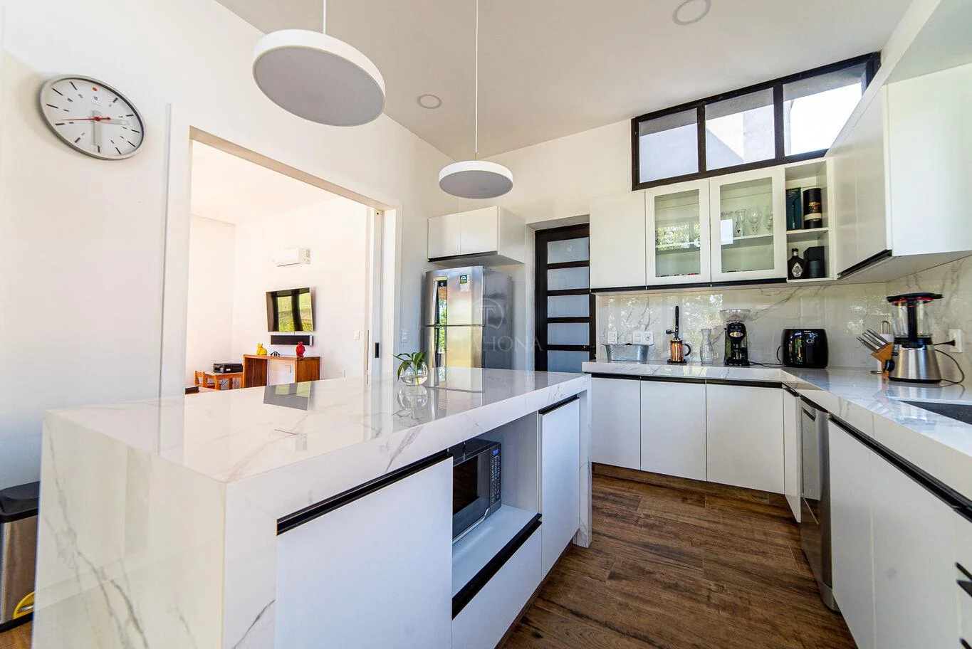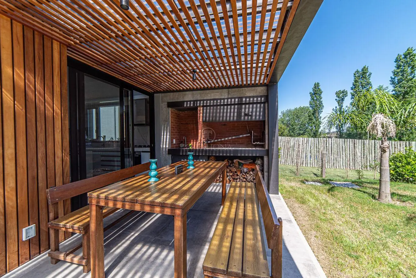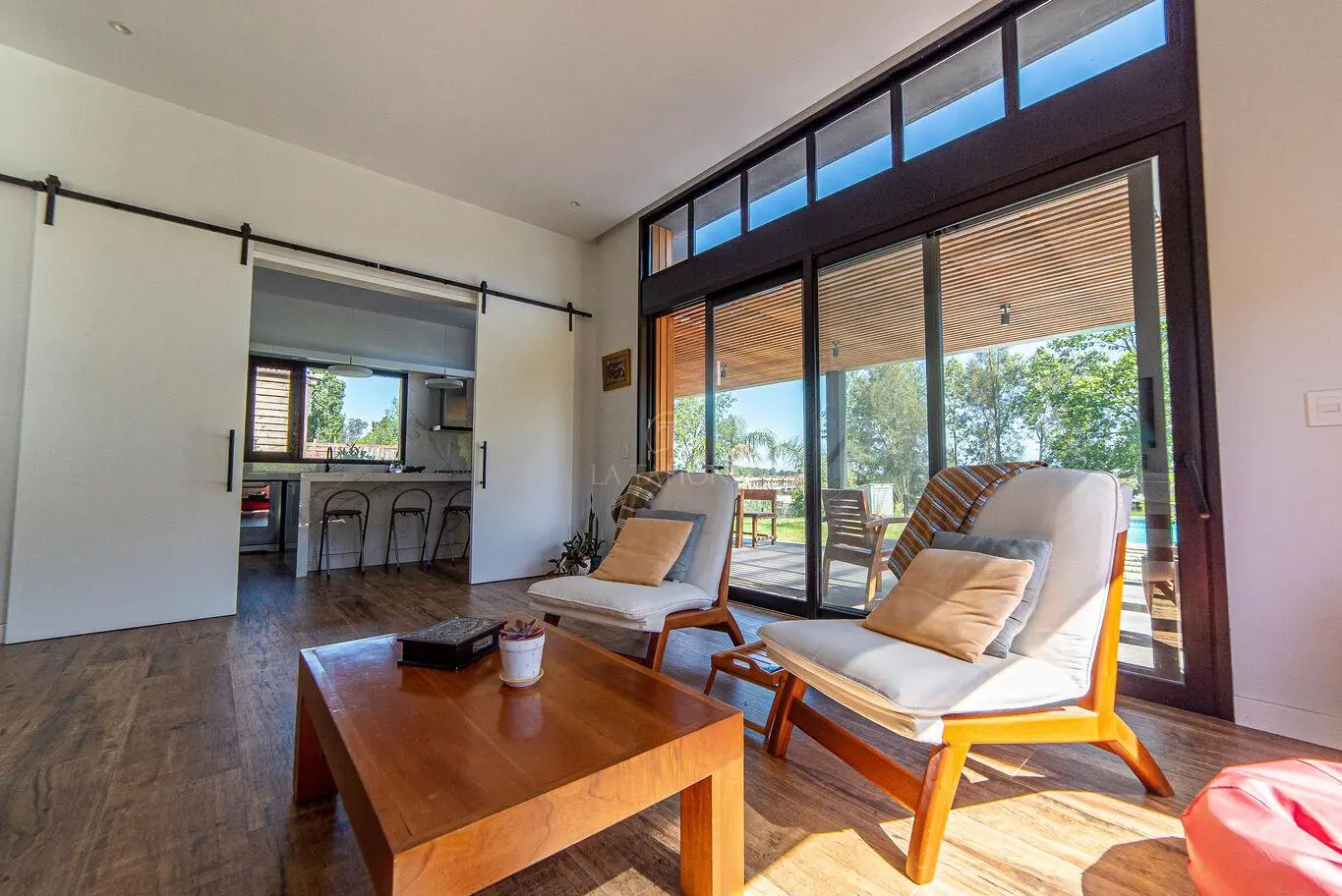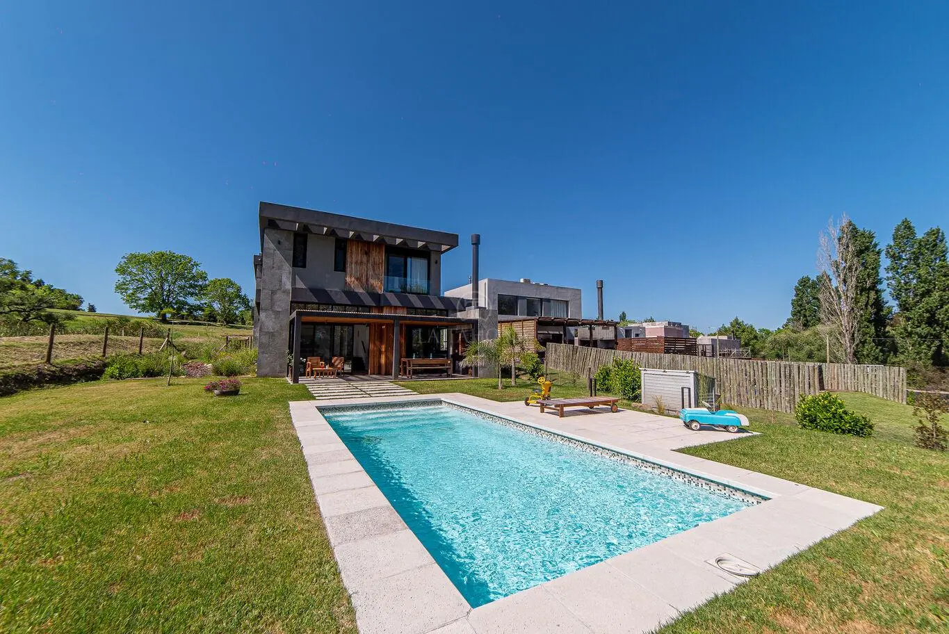 La casa se desarrolla en dos plantas, el área del terreno es de 1280 m² y de construcción es de 314 m².