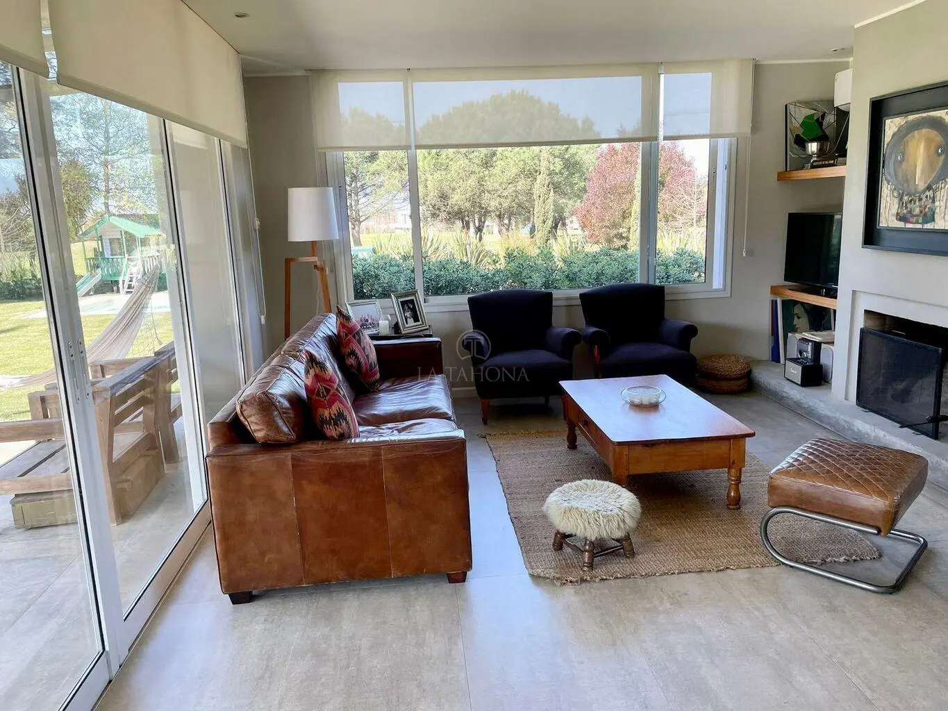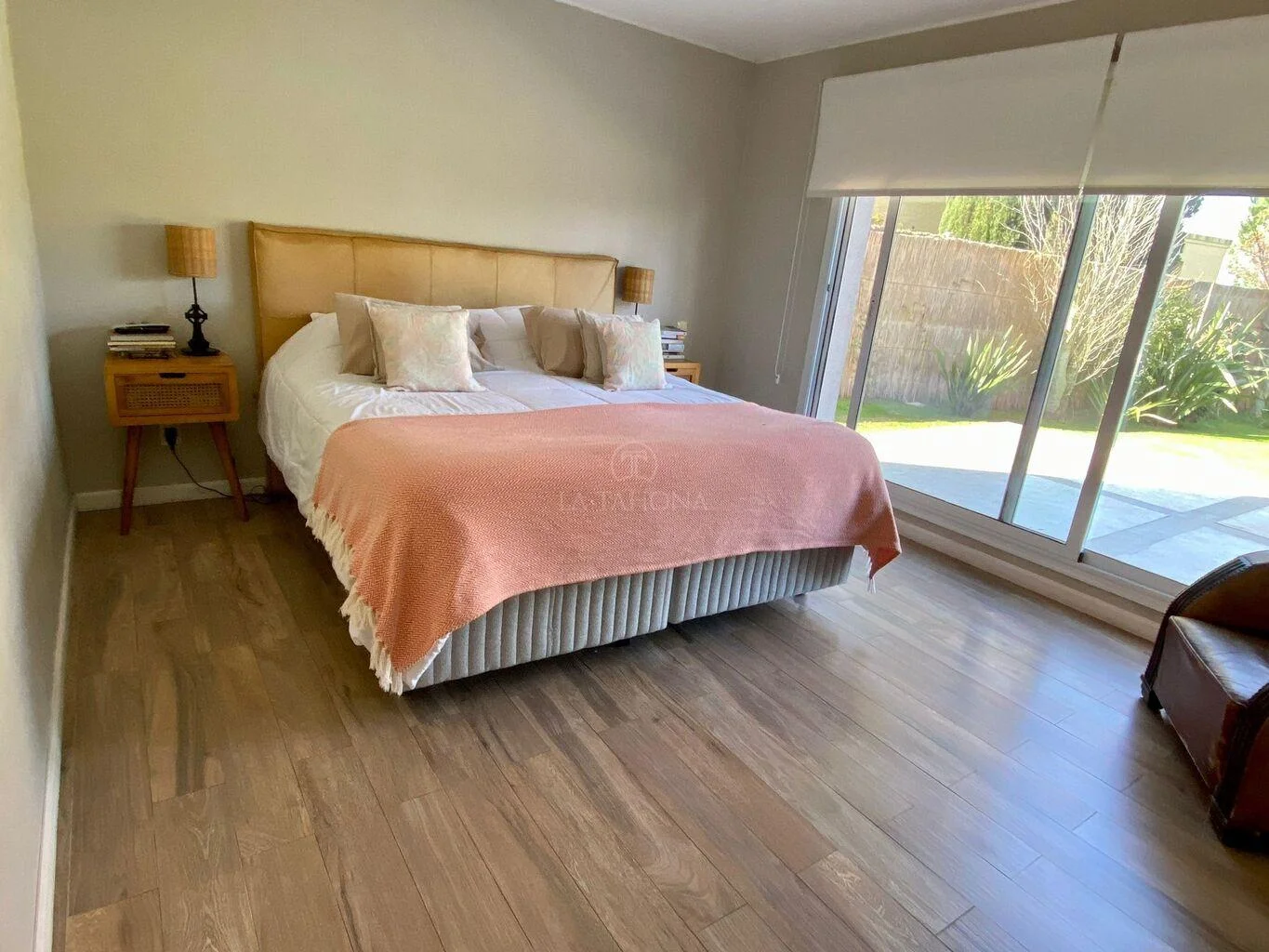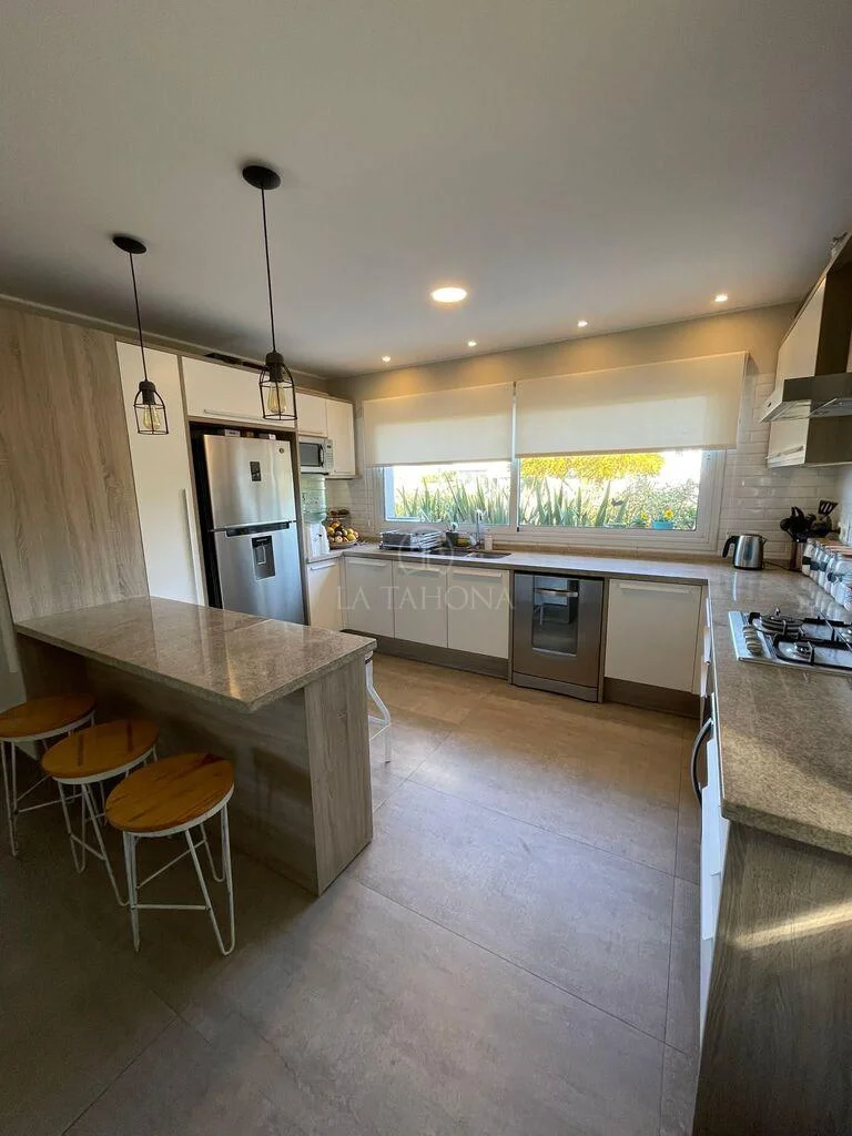 Inmobiliaria La Tahona Oficial - Beneficios exclusivos para nuestros clientes • 3 dormitorios, el principal en suite. • 3 baños en total. • Escritorio con mesada de madera y luces empotradas. • Living/comedor con estufa a leña y salida al fondo. • Sala de estar. • Cocina de gran tamaño con anafe y horno empotrados. • Parrillero con parrilla y leñero. • Calefacción por losa radiante eléctrica y aires acondicionas. • Piscina con bomba. • Lavadero.