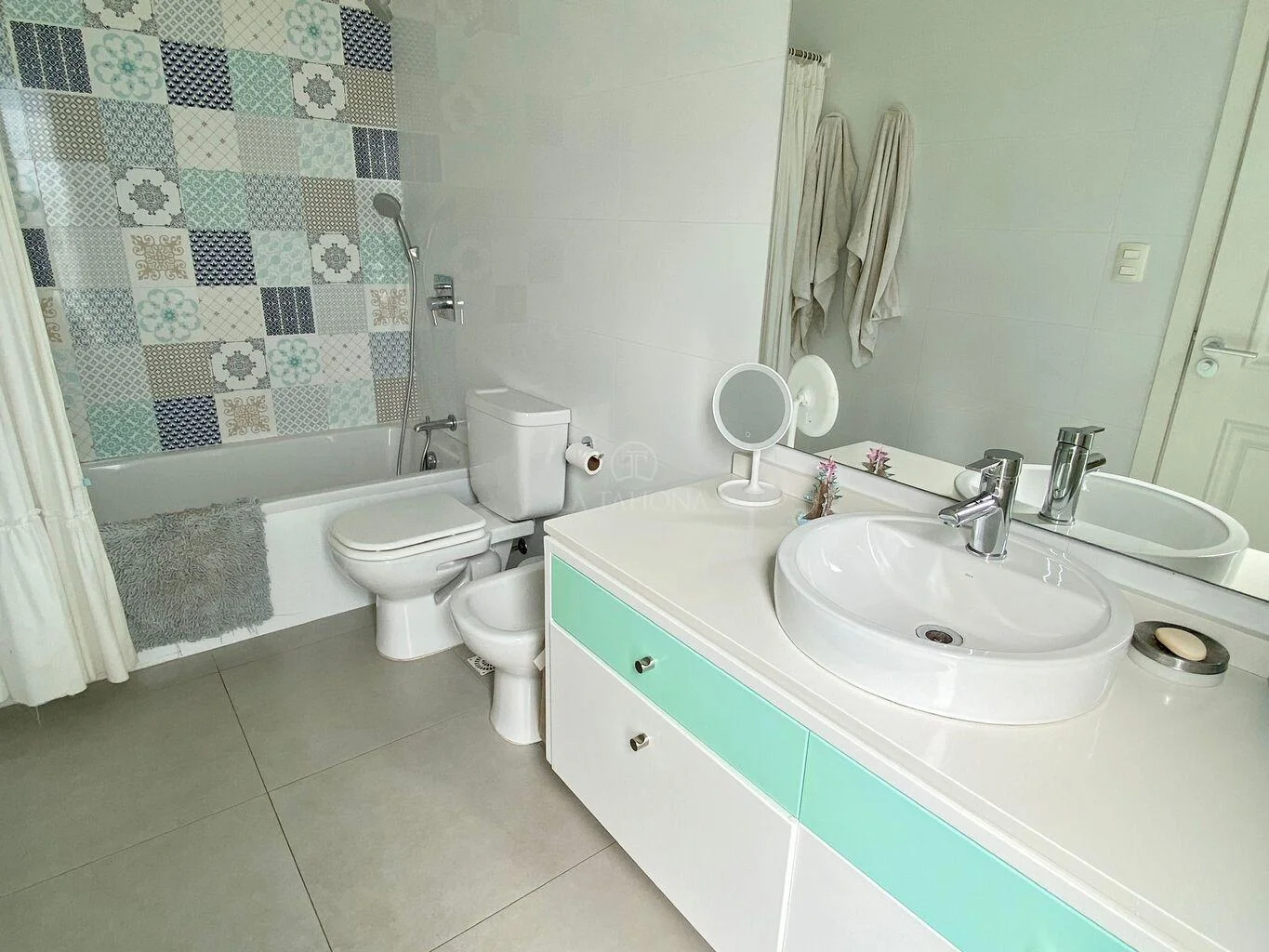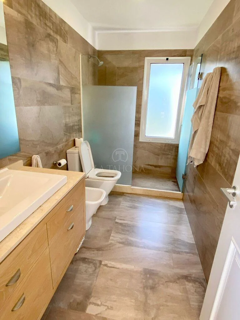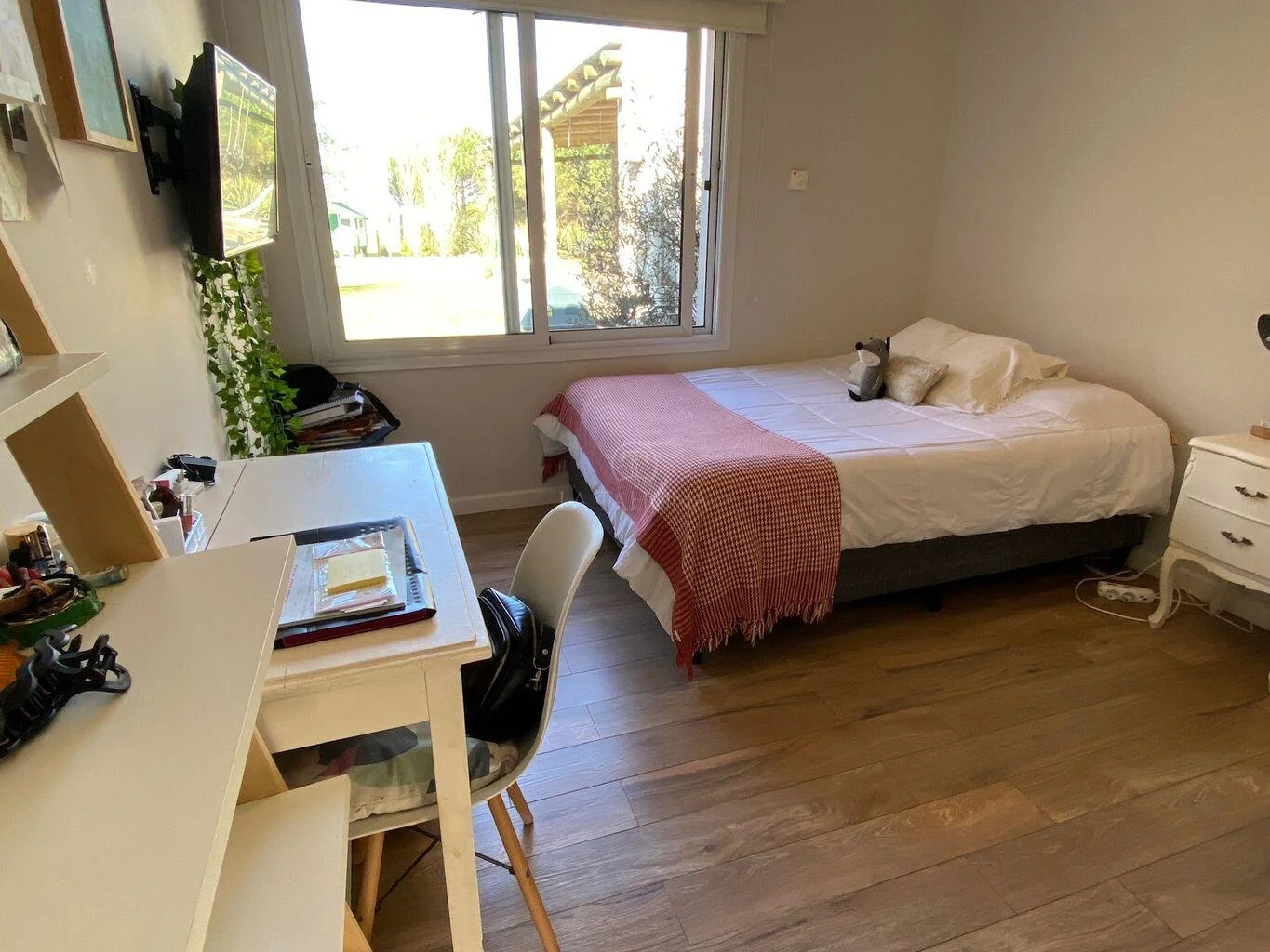 Inmobiliaria La Tahona Oficial - Beneficios exclusivos para nuestros clientes • 3 dormitorios, el principal en suite. • 3 baños en total. • Escritorio con mesada de madera y luces empotradas. • Living/comedor con estufa a leña y salida al fondo. • Sala de estar. • Cocina de gran tamaño con anafe y horno empotrados. • Parrillero con parrilla y leñero. • Calefacción por losa radiante eléctrica y aires acondicionas. • Piscina con bomba. • Lavadero.