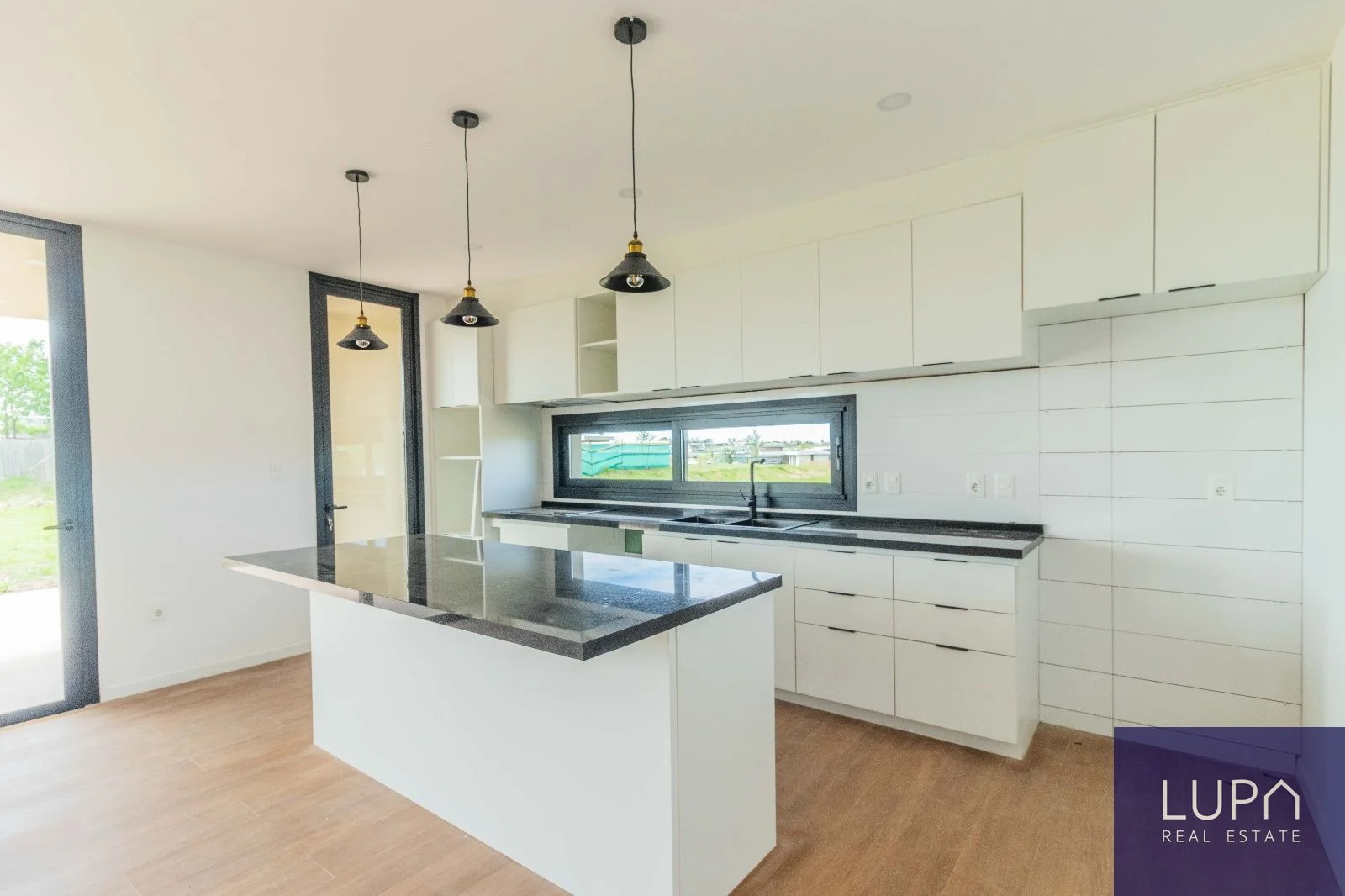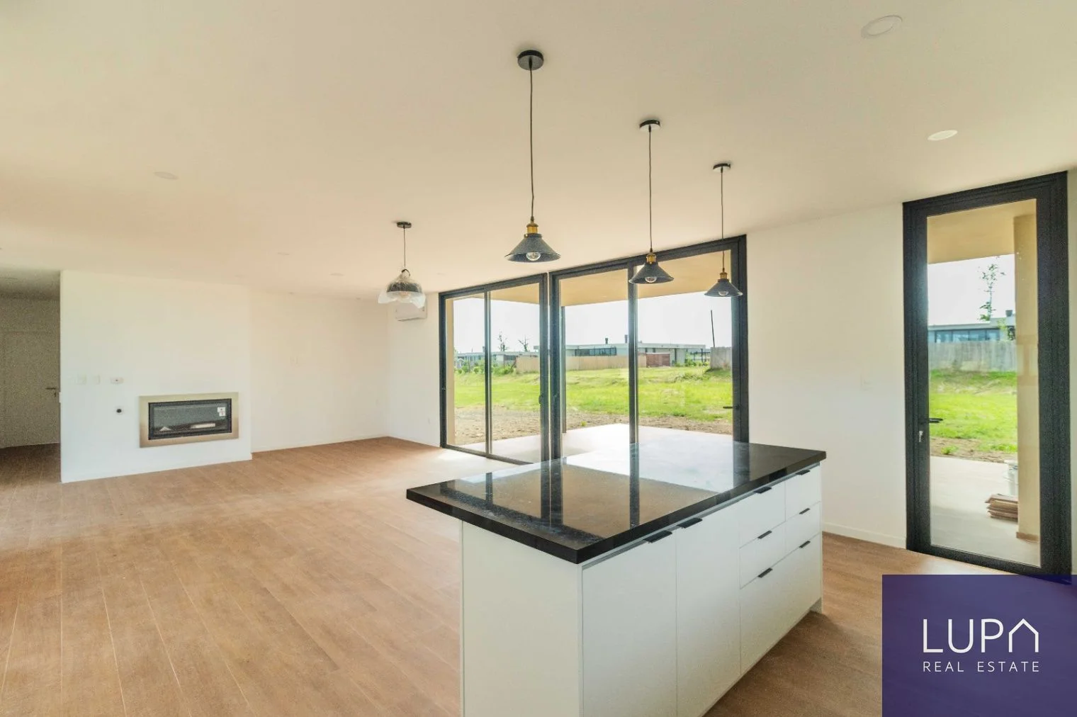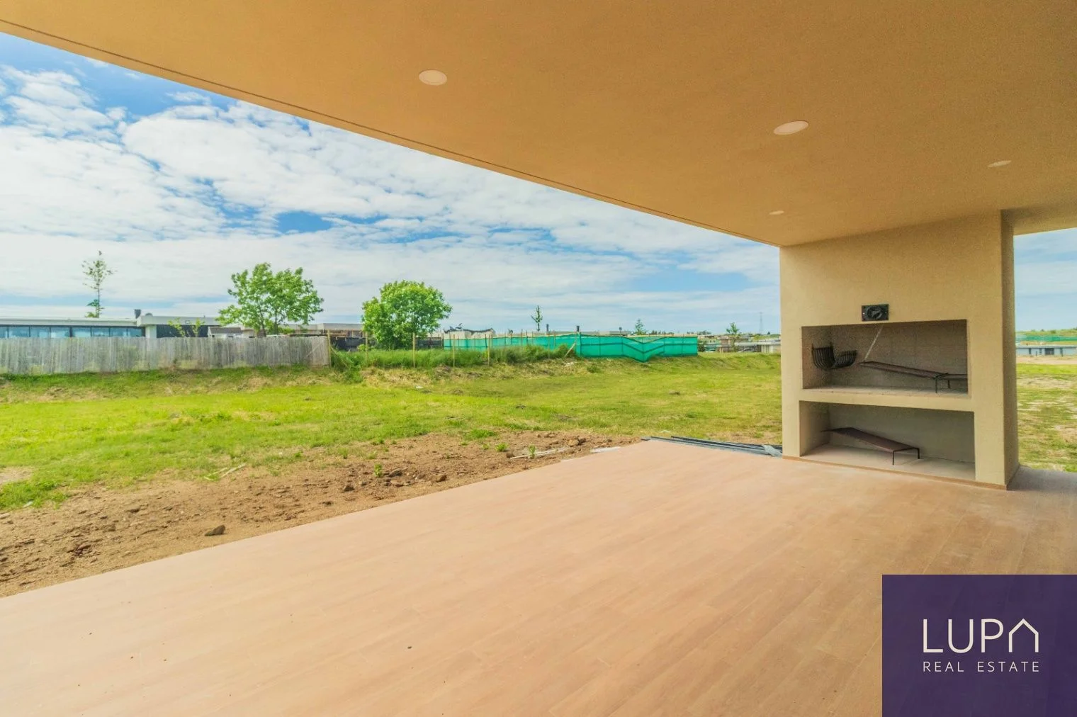 La casa cuenta con un atractivo exterior que incluye una pérgola para dos autos y un parrillero techado y piscina, ideal para disfrutar de reuniones familiares o con amigos. Las ventanas están equipadas con Dvh, ofreciendo un excelente aislamiento térmico y acústico. Con una entrega llave en mano en tan solo dos meses, esta propiedad se encuentra en un terreno que presenta un frente al oeste, en una zona muy consolidada, lo que la convierte en una excelente inversión. Los pisos de porcelanato simil madera aportan un toque de elegancia y calidez a los espacios interiores.