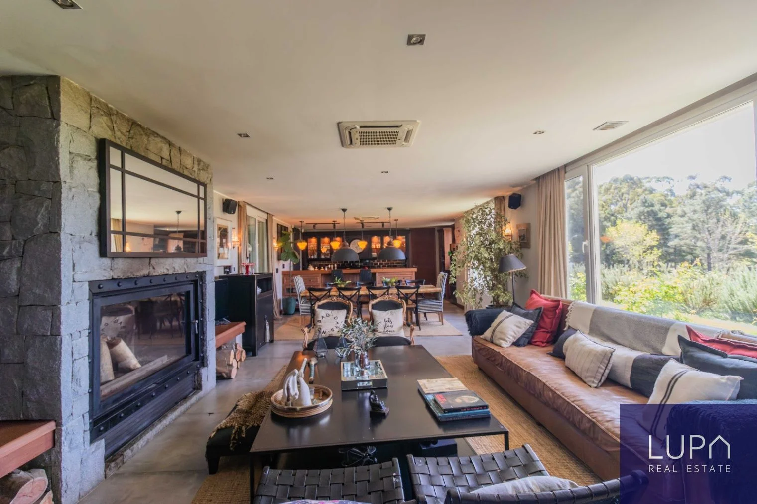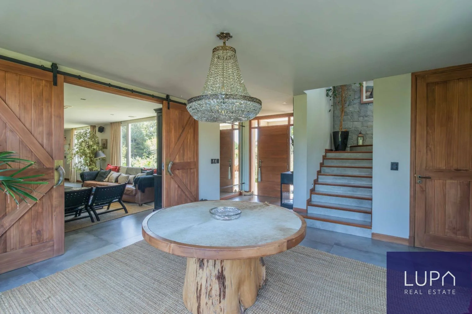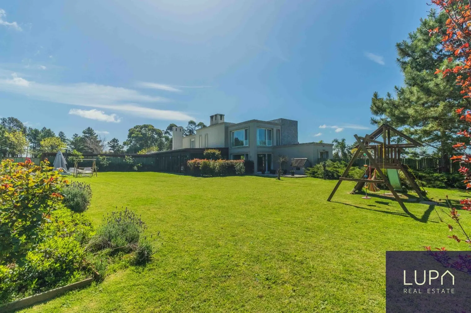 Sólida casa de dos plantas, de construcción tradicional, con una impresionante superficie de 430 m² construidos sobre un extenso terreno de 2,300 m². Esta propiedad se encuentra situada en un terreno elevado en esquina y orientada al norte, lo que permite disfrutar de vistas espectaculares del barrio desde todos sus ambientes. En la planta baja, la cocina se integra al comedor y al living, creando un espacio amplio y luminoso, complementado por una estufa de alto rendimiento. Desde el comedor, se accede a una amplia barbacoa cerrada con una gran estufa a leña. La planta baja también cuenta con un dormitorio en suite, que puede ser utilizado como oficina, y un área de servicio que incluye un dormitorio y baño, lavadero completo y cocheras techadas con capacidad para cinco autos.