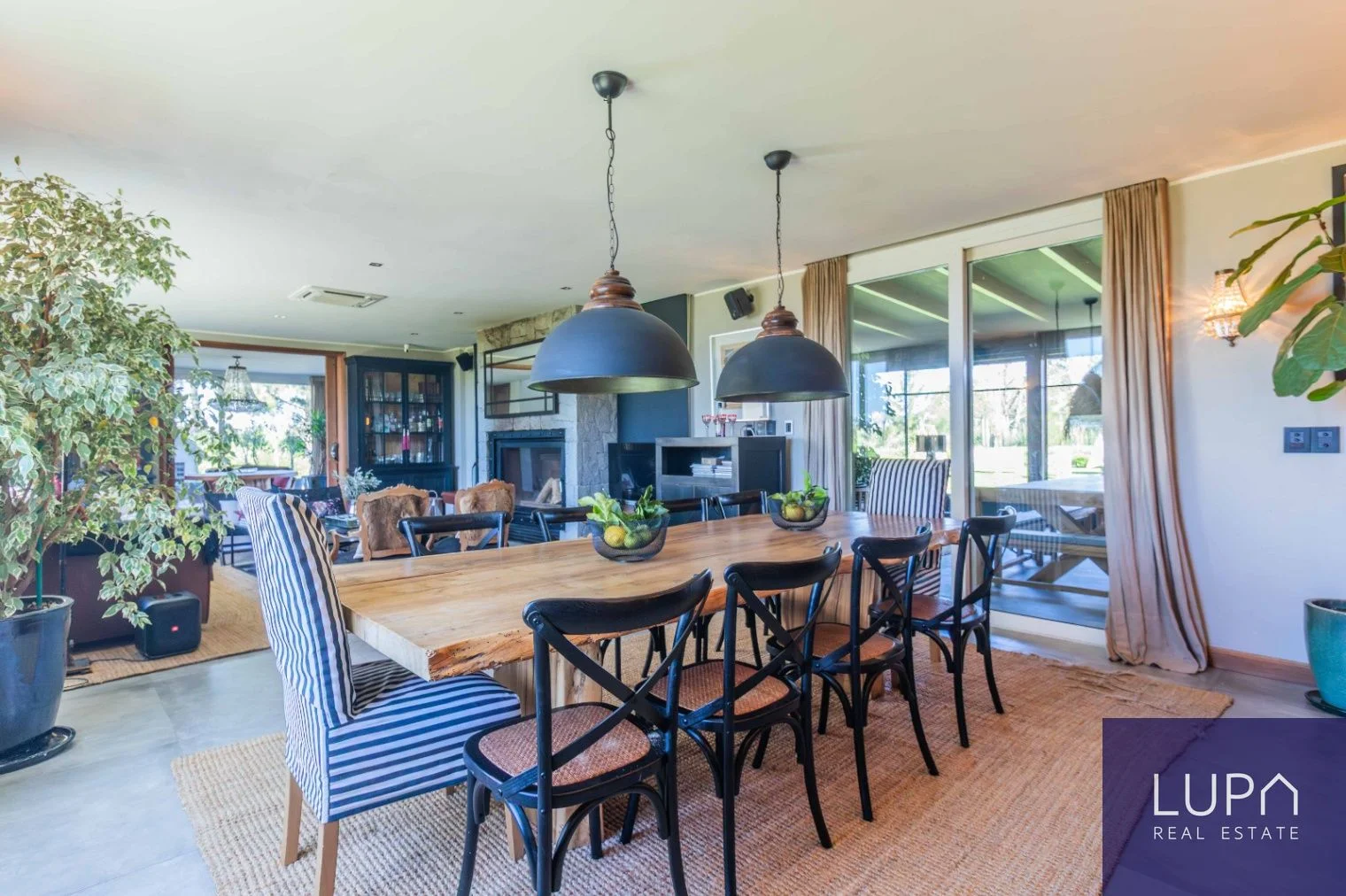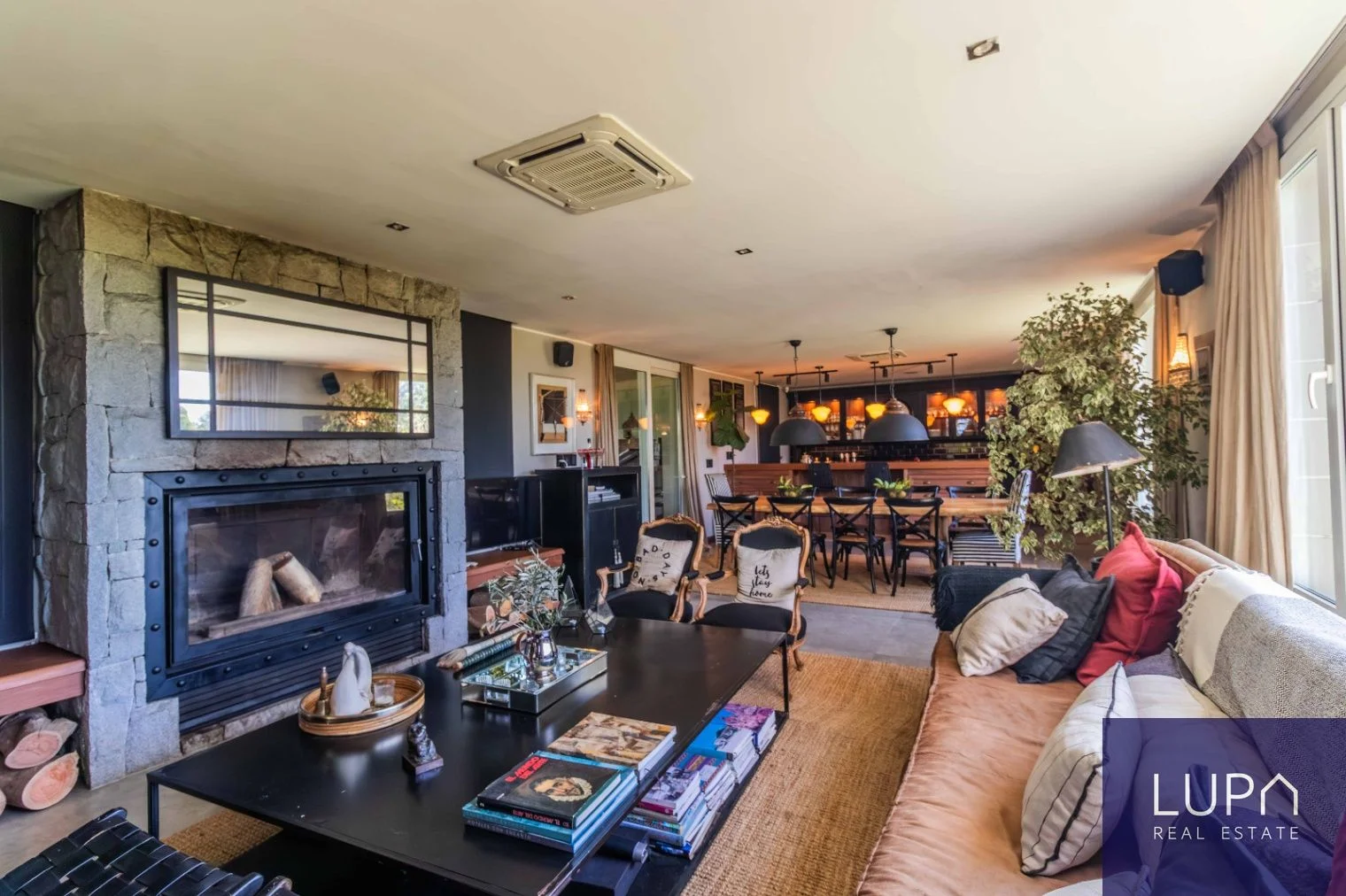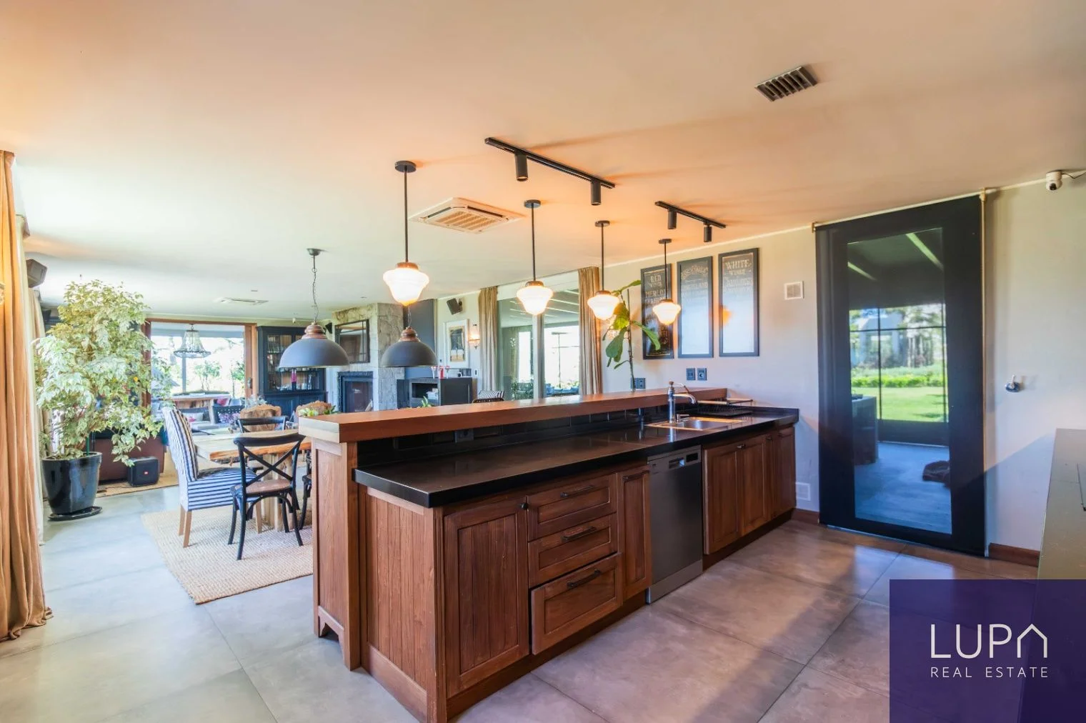 Sólida casa de dos plantas, de construcción tradicional, con una impresionante superficie de 430 m² construidos sobre un extenso terreno de 2,300 m². Esta propiedad se encuentra situada en un terreno elevado en esquina y orientada al norte, lo que permite disfrutar de vistas espectaculares del barrio desde todos sus ambientes. En la planta baja, la cocina se integra al comedor y al living, creando un espacio amplio y luminoso, complementado por una estufa de alto rendimiento. Desde el comedor, se accede a una amplia barbacoa cerrada con una gran estufa a leña. La planta baja también cuenta con un dormitorio en suite, que puede ser utilizado como oficina, y un área de servicio que incluye un dormitorio y baño, lavadero completo y cocheras techadas con capacidad para cinco autos.