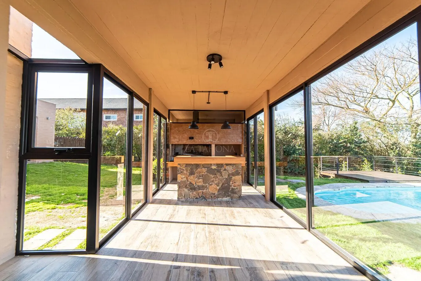 • Living comedor grande y luminoso con estufa a leña. Se conecta al parrillero cerrado.