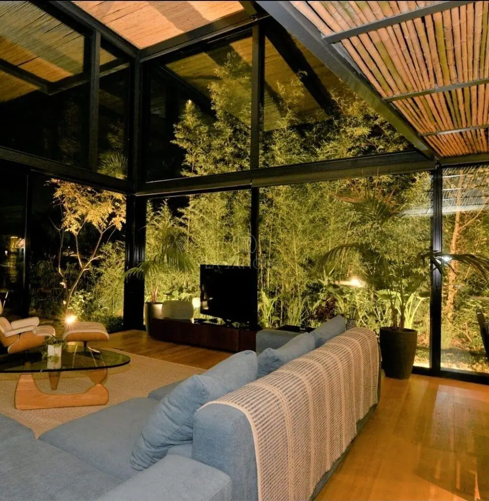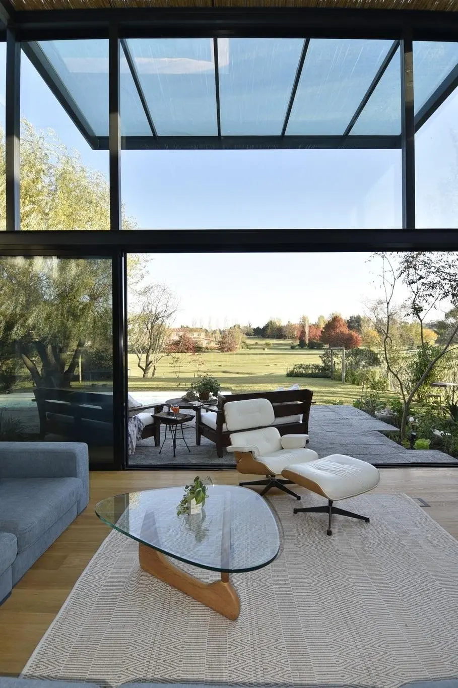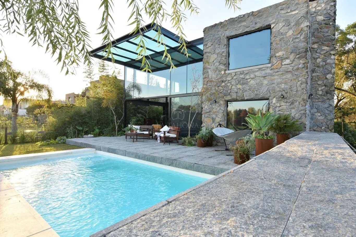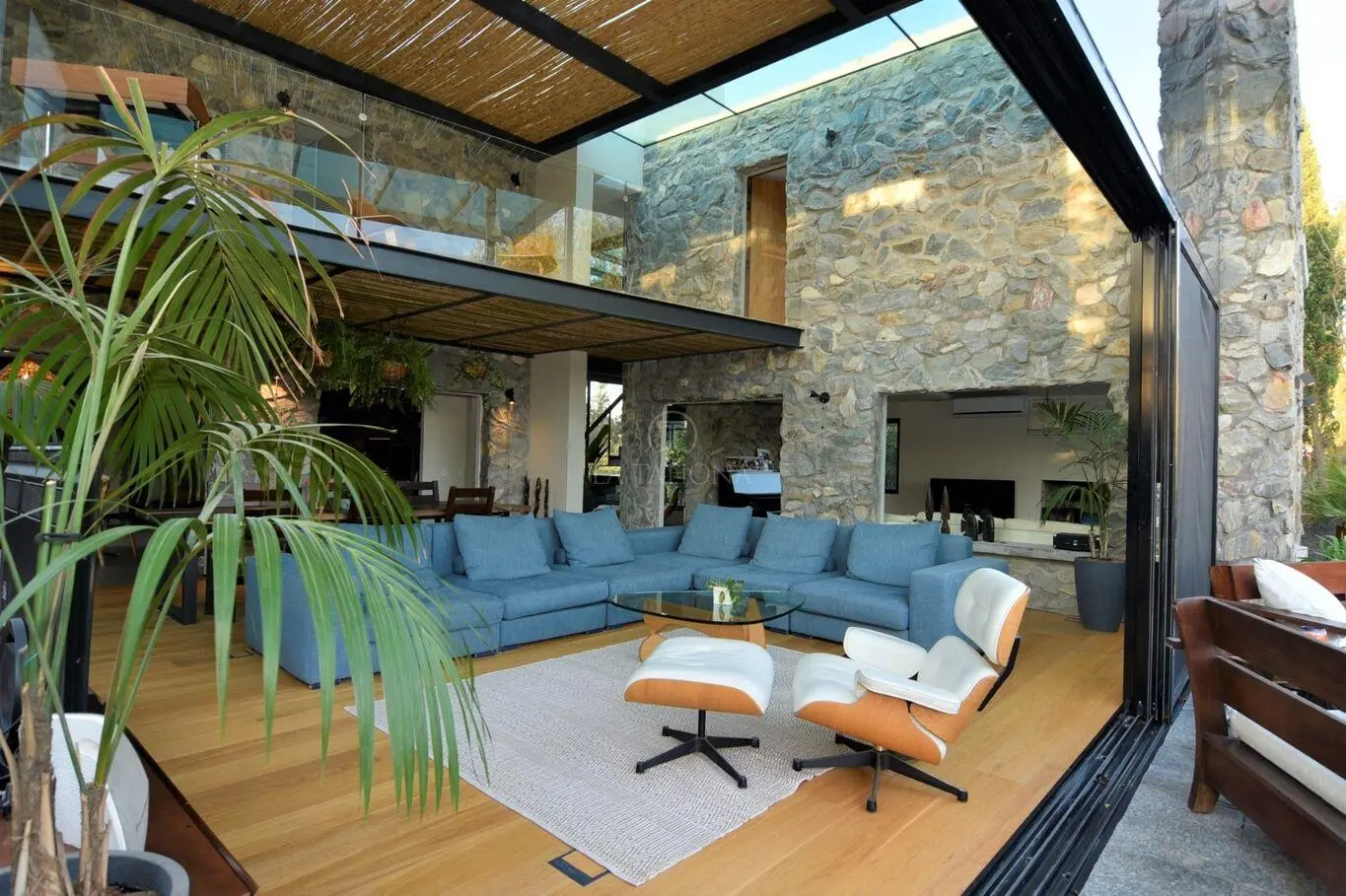 La casa se desarrolla en dos plantas, el área de terreno es de 952 m² y de construcción es de 284 m². • 3 dormitorios en suite con vestidor. • 5 baños en total. • Living/comedor totalmente abierto e integrado al exterior. • Sala de estar con estufa a leña. • Cocina con isla gourmet, unida al comedor diario con parrilla in/out. • Calefacción por losa radiante. • Piscina climatizada. • pisos de roble. • Deck techado de 12 x 4 mts.