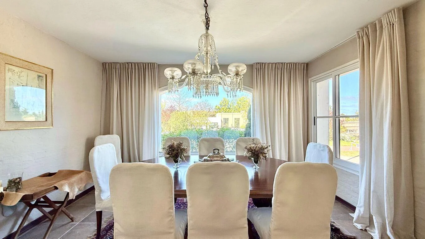Living comedor con estufa de alto rendimiento. Amplios ventanales con salida al jardin y parrillero.
