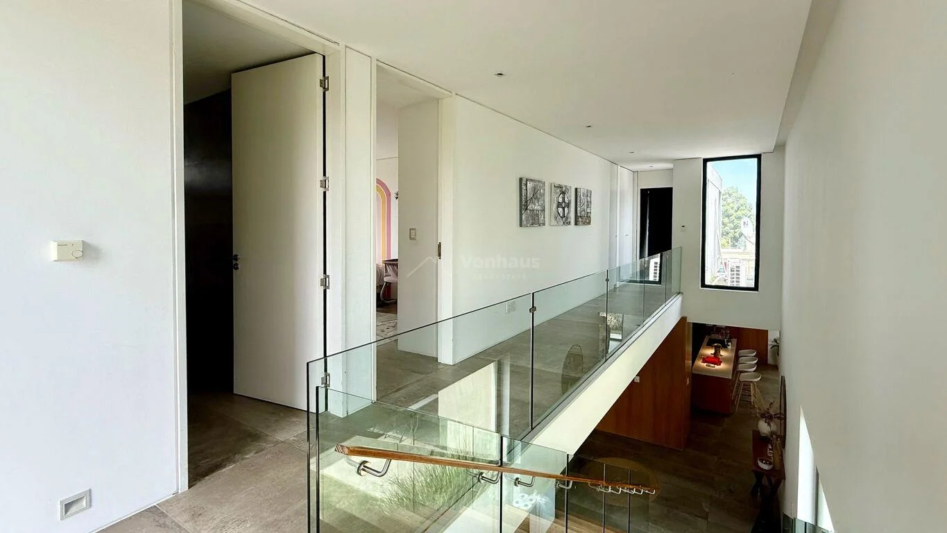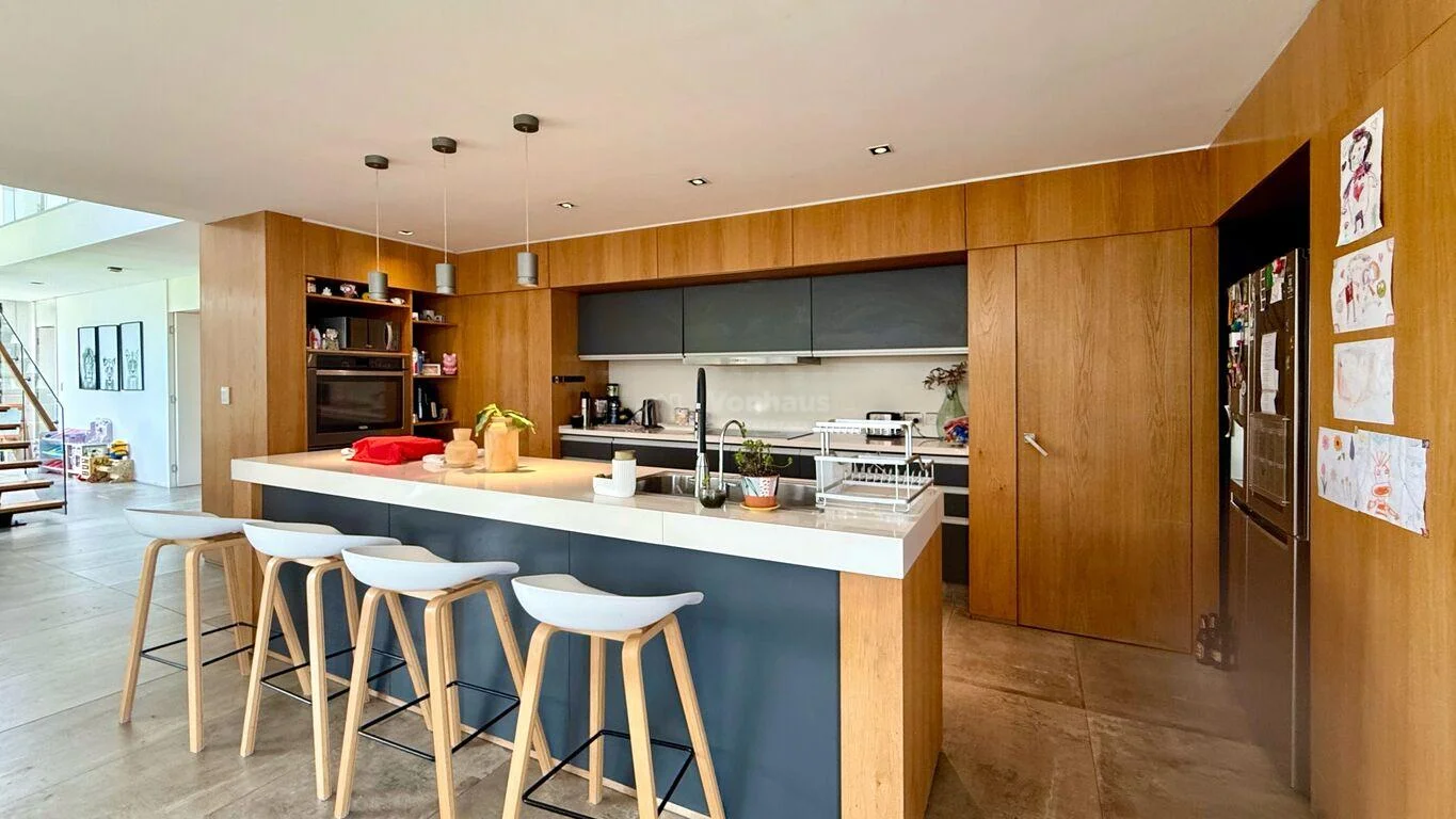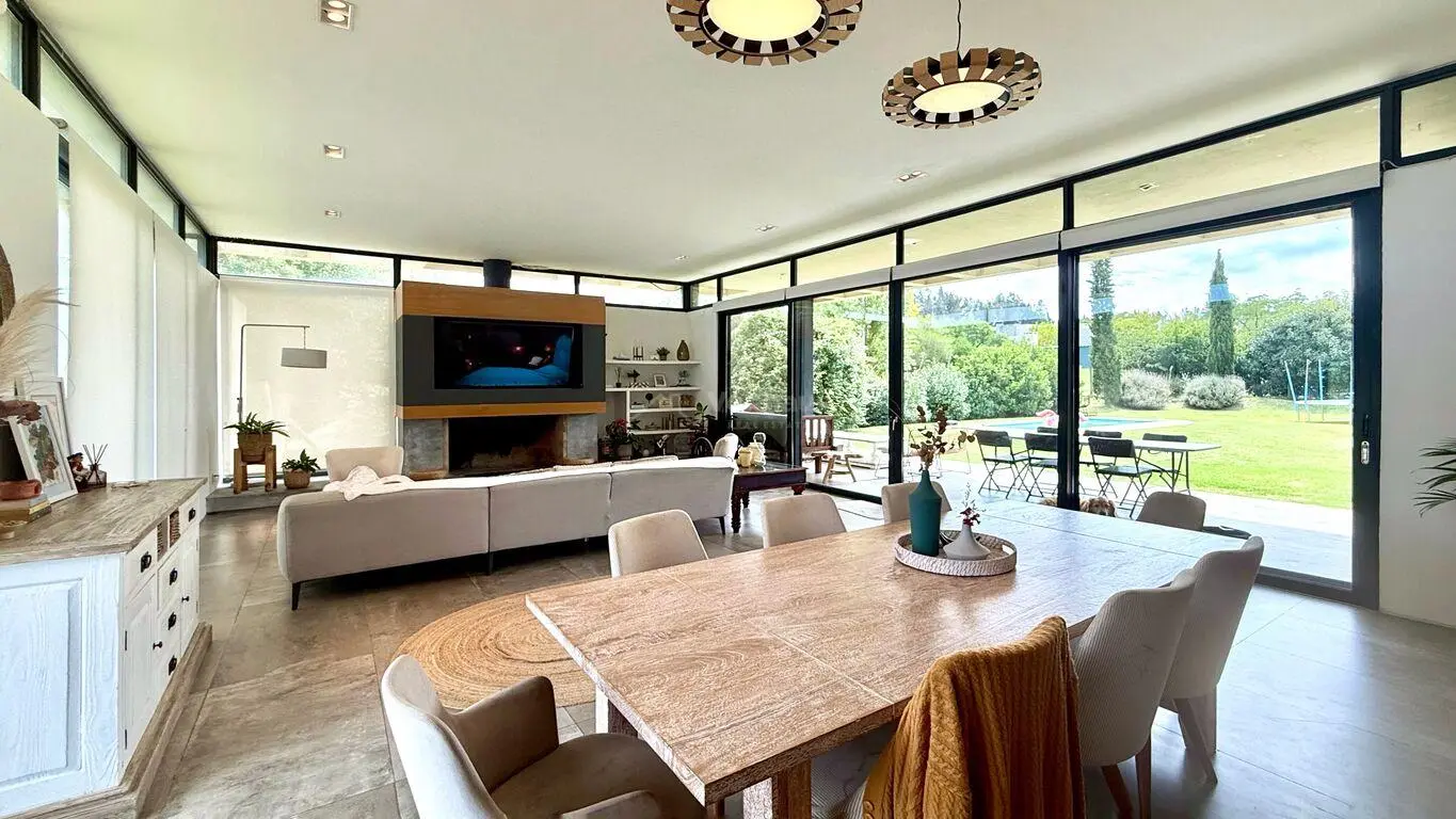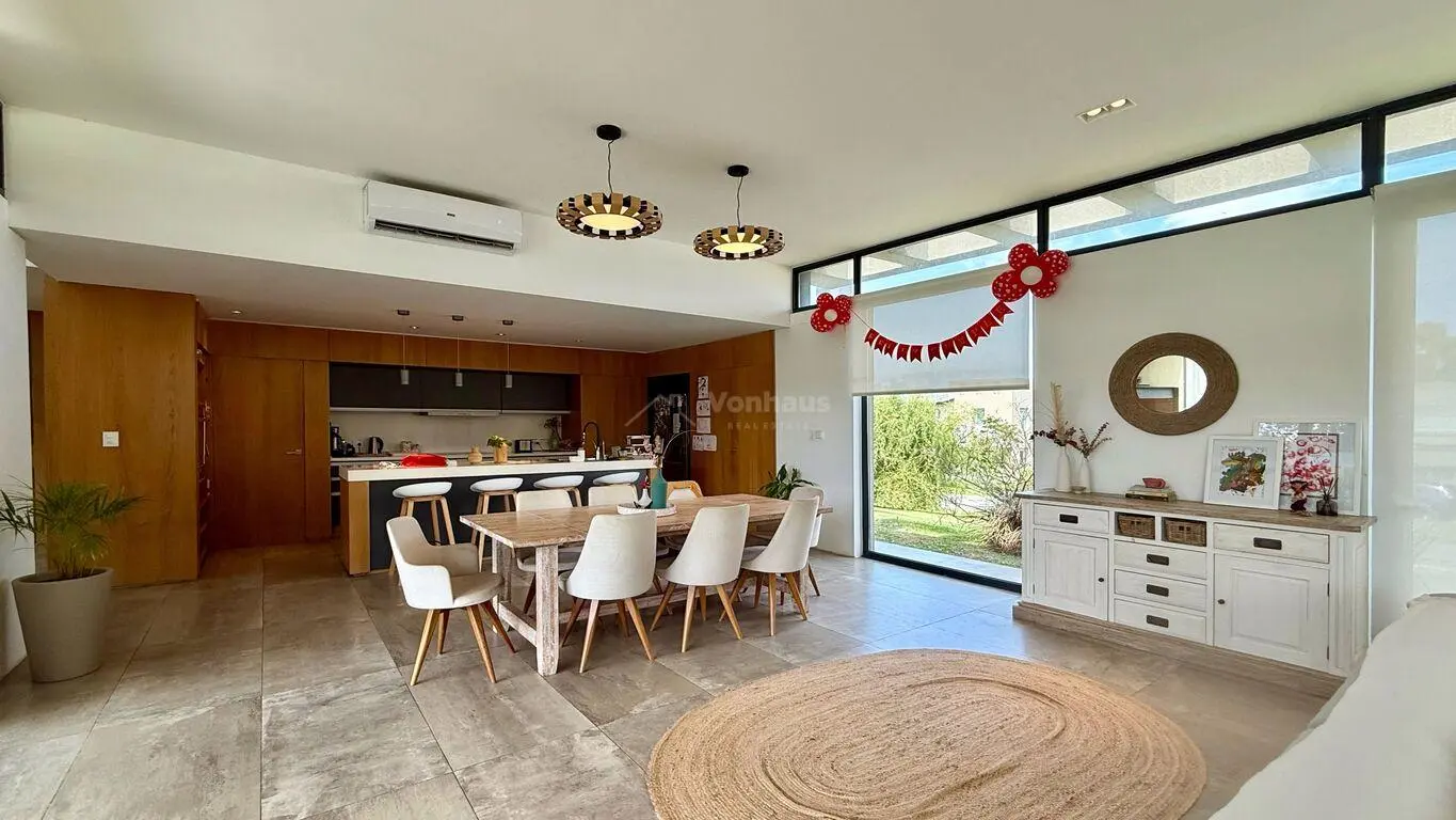 Gran living comedor con doble altura, cocina integrada con isla muy luminoso.