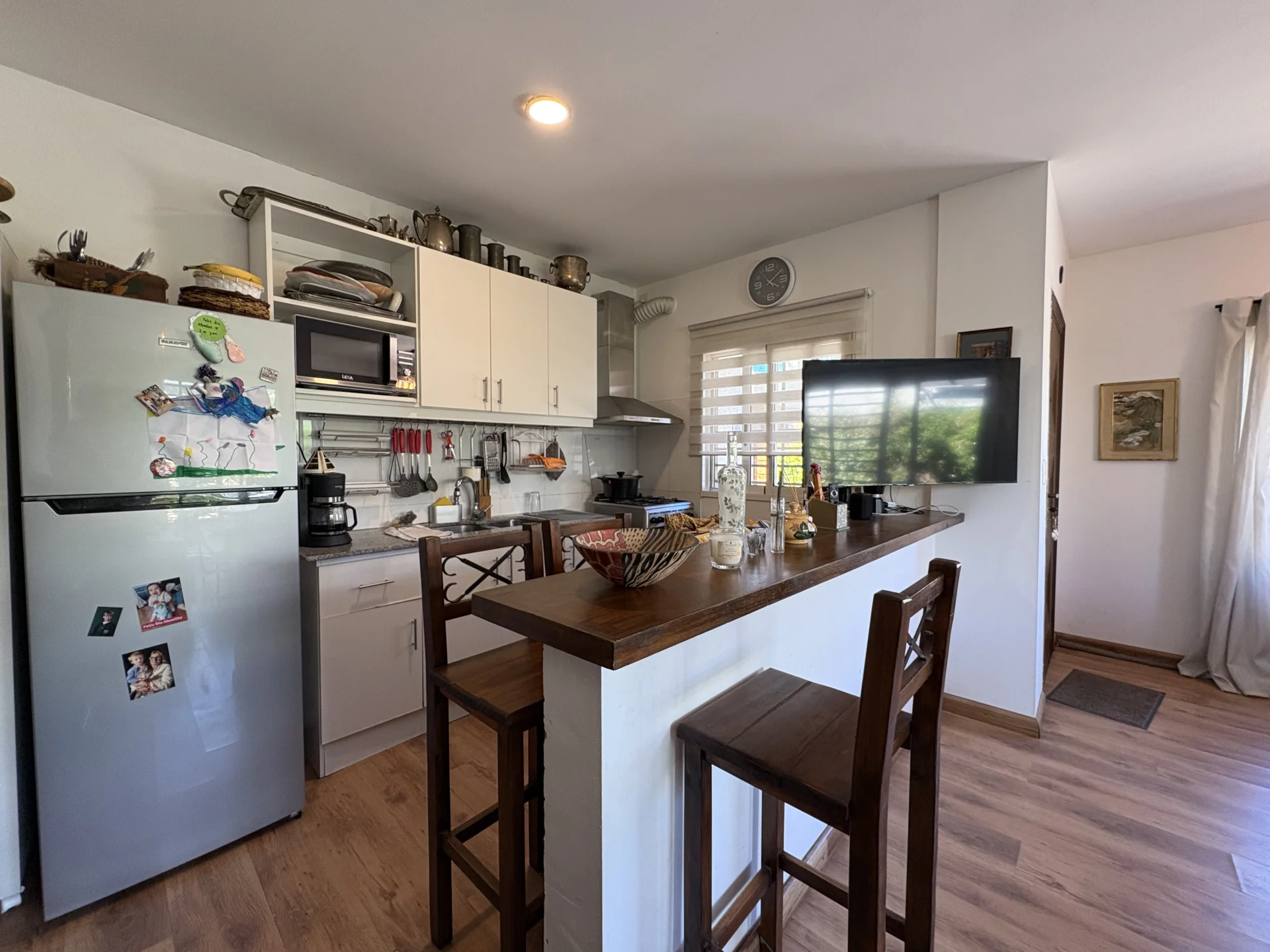 Cocina definida con barra que conecta con el living. Conexion para lavarropas y lavavajillas.
