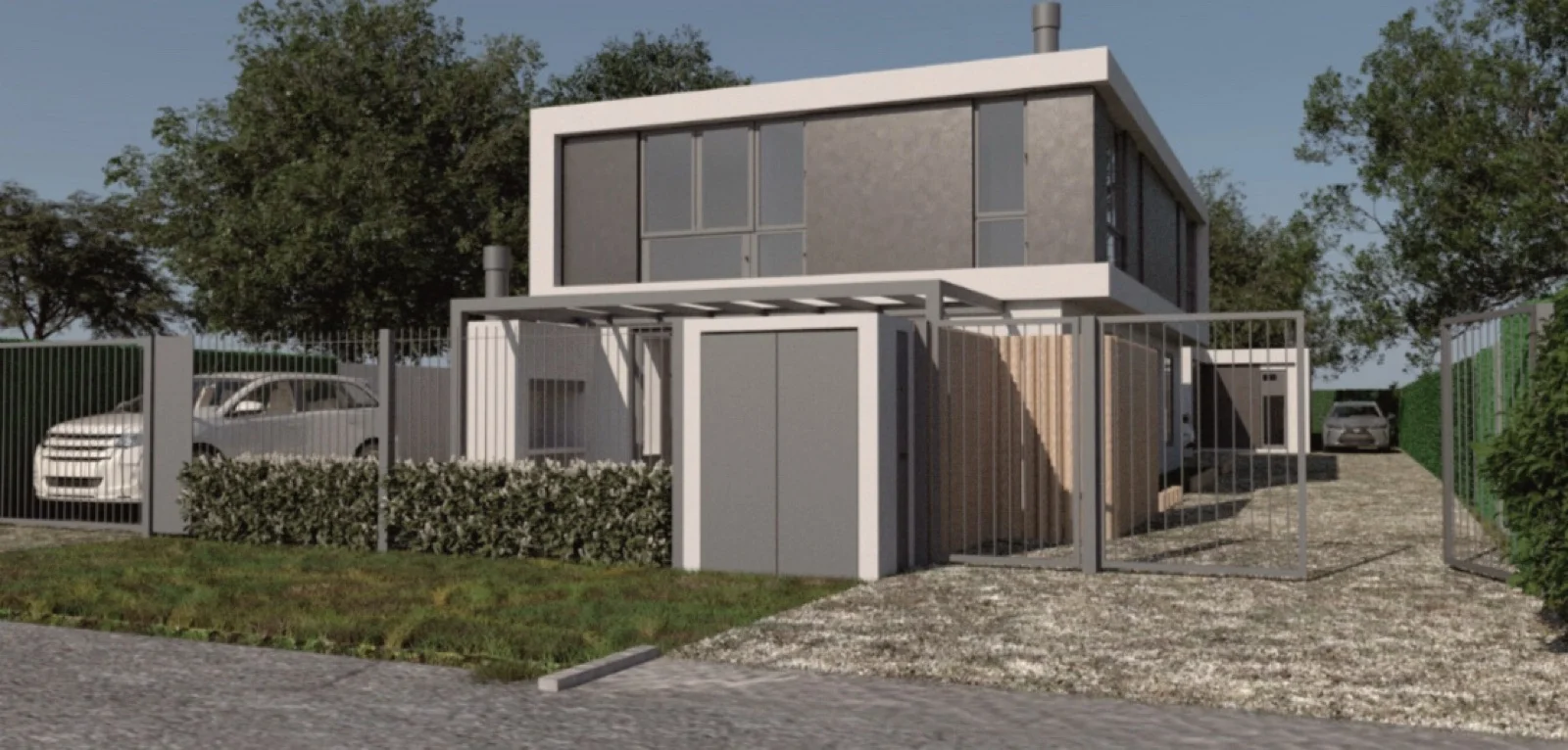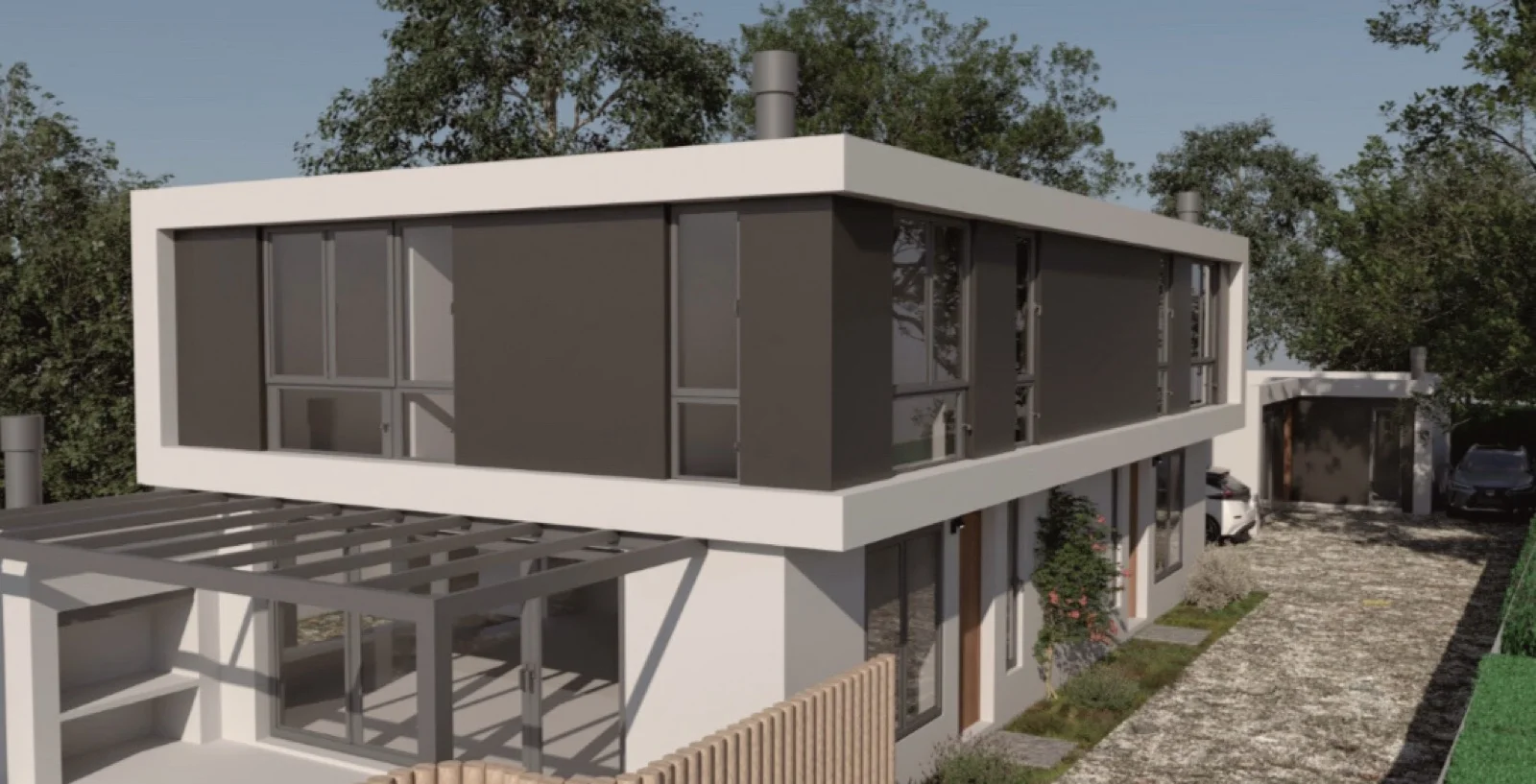 La casa cuenta con calefacción por losa radiante eléctrica con termostatos independientes por ambiente. Aberturas en aluminio con DVH.