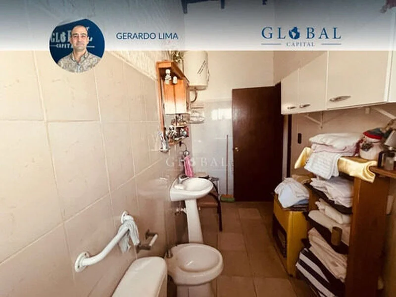 Al entrar a la casa, desarrollada en dos plantas; nos recibe un amplio living con un baño social completo con ventilación natural y conexión para lavarropas.