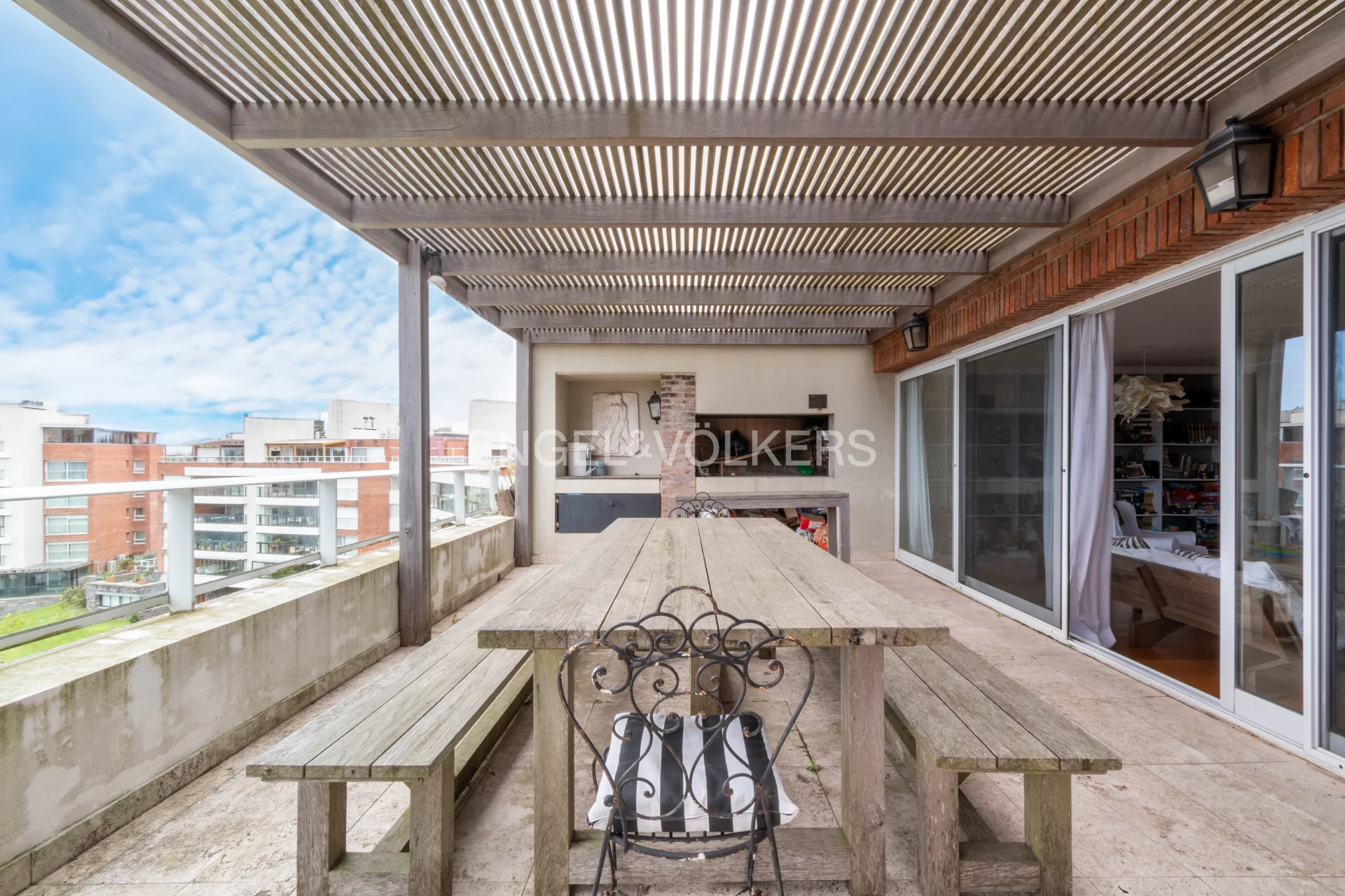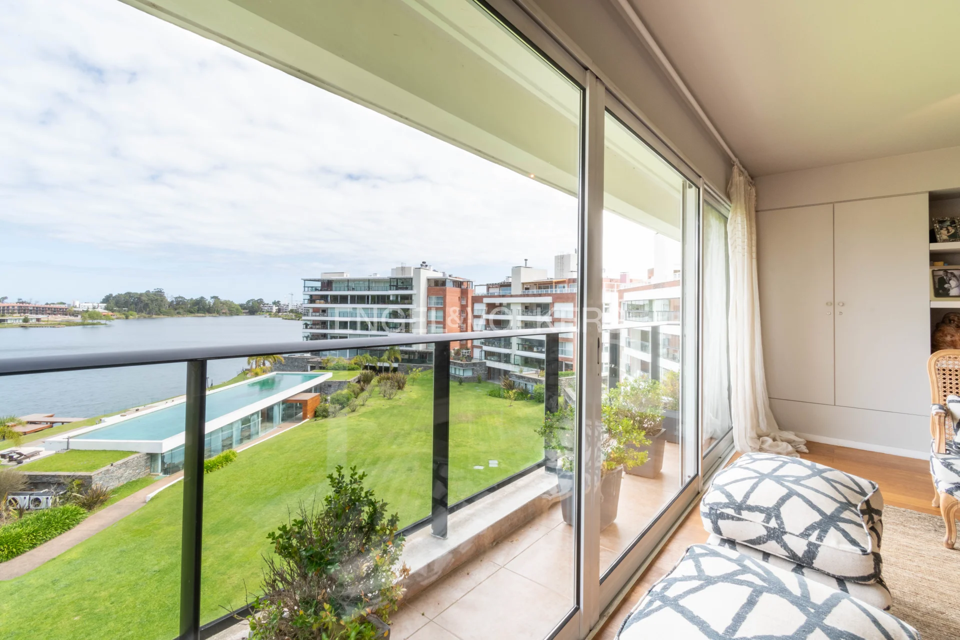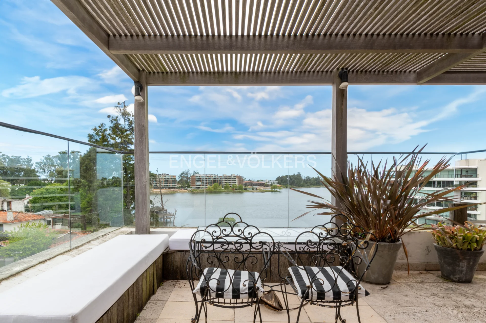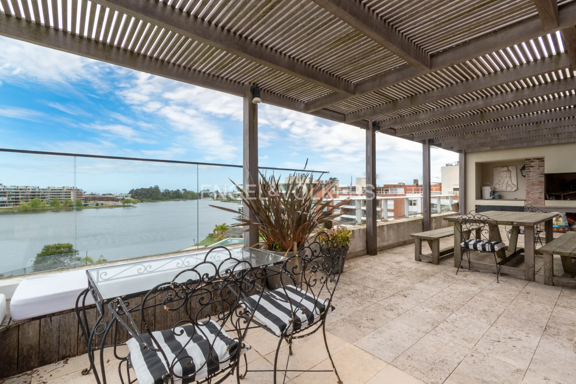 Espectacular penthouse duplex con 266 m2 desarrollados en 2 plantas, y unos 135 m2 de terrazas, en complejo de primera categoría en Parque Miramar. En el primer nivel dispone de fantástico living comedor con estufa a leña con espectacular vista al lago, baño social, y amplia cocina. 4 dormitorios en suite: el principal con vista al lago, y 4to dormitorio en suite o servicio. Una escalera lleva al 2do nivel que ofrece un gran playroom o 2do estar con estufa a leña con vista al lago, lavadero, y una disfrutable terraza con parrillero. Calefacción por losa radiante eléctrica. Garaje para 3 autos.